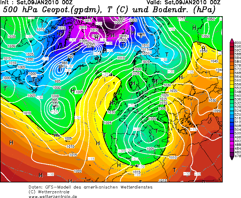 Przeglądając sobie sytuacje baryczną z zimy 2009/10 zauważyłem, że po 10.01 pojawiło się ryzyko napierania atlantyckich niżów tuż po dłuższym okresie panowania bardzo silnej blokady nad całą północną Europą i Atlantykiem. Blokada jednak sobie doskonale poradziła, zatrzymała napływ niżu i umocniła ruski wyż, w konsekwencji po 20.01 prowdząc do silnych mrozów.