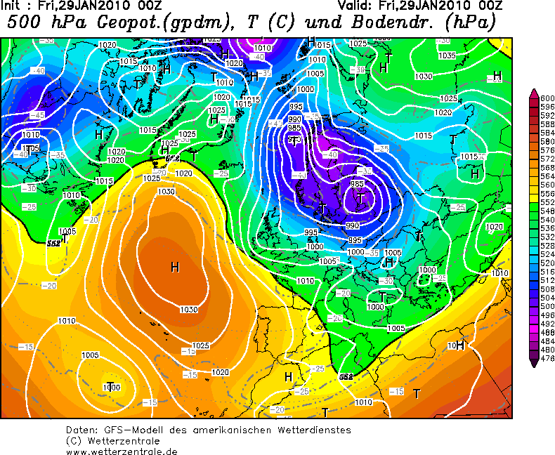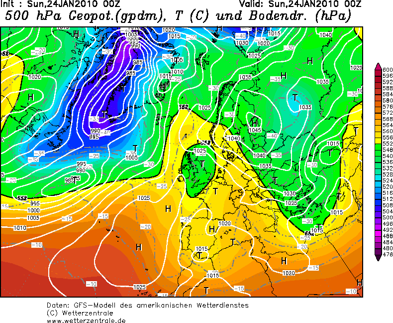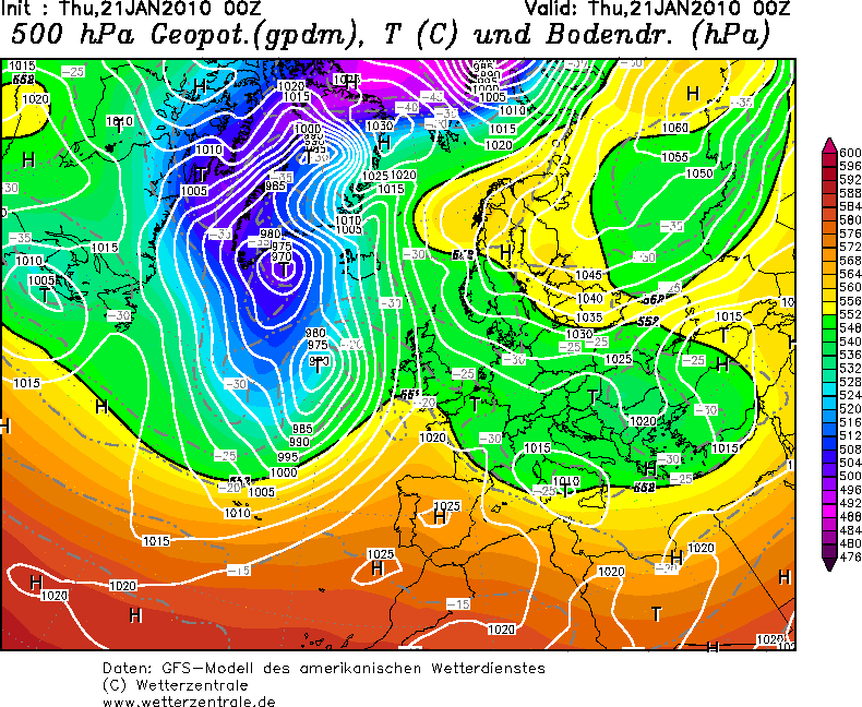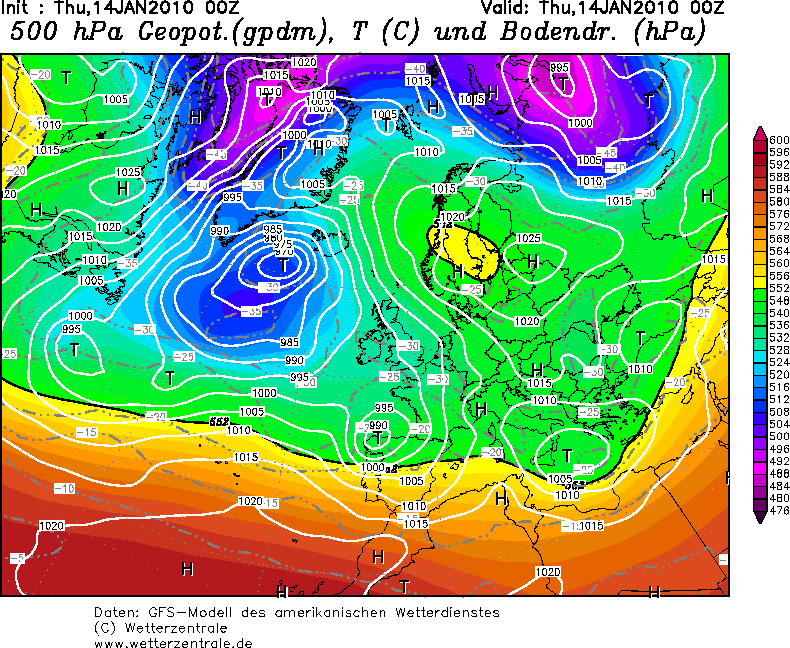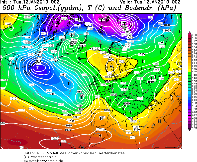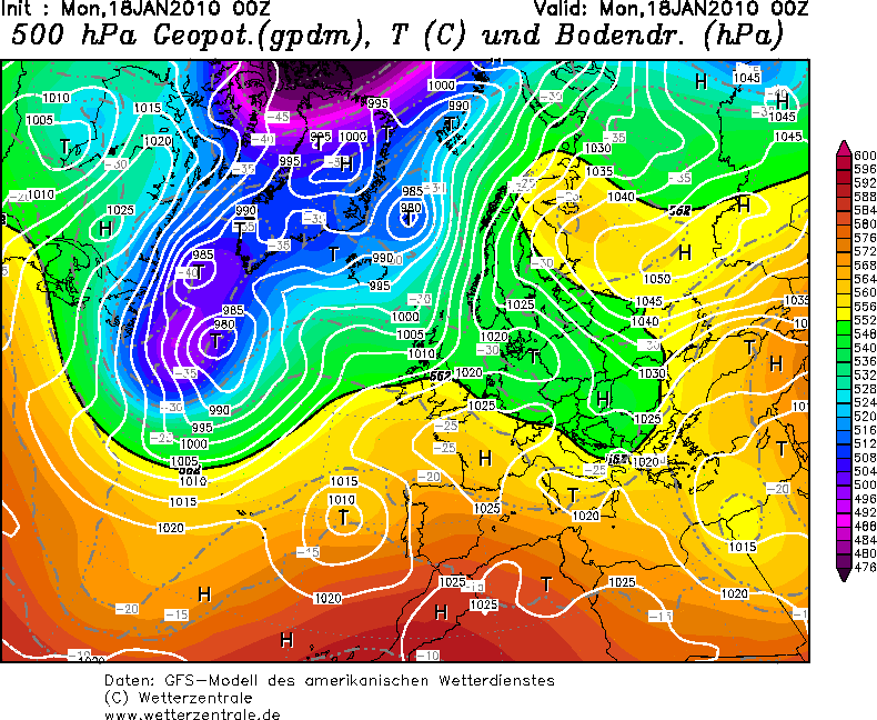 Kluczowy w tej zabawie jednak był zanik frontu polarnego nad południową Europą. Wprawdzie to niby się stało również tego 16.01.2010, ale zostało szybko skorygowane. Tu już tak pięknie nie było...