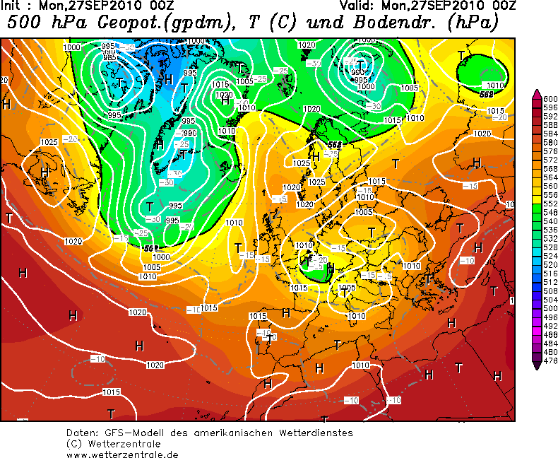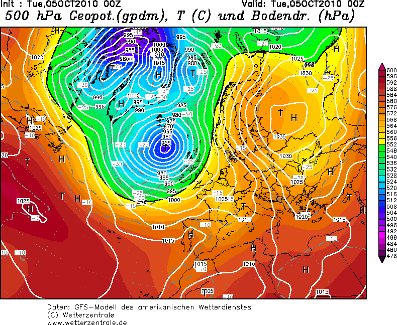 Być może, jakby znowu front polarny by się spróbował podnieść, to by się wyż przełamał i zaczął łączyć z tym z Afryki, jednak zamiast tego zaczął się przesuwać na zachód, tym samym spychając niż islandzki na południe, tym samym z blokady kontynentalnej zrobiła się blokada oceaniczna. Ale też było to ułatwione z uwagi na obecność tegoż mało aktywnego frontu polarnego nad południową Europą, a ten z kolei powstał dzięki temu, że już w końcówce września skrajne zimno dotarło daleko na południe...