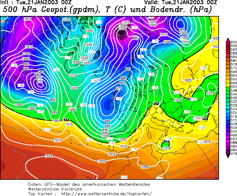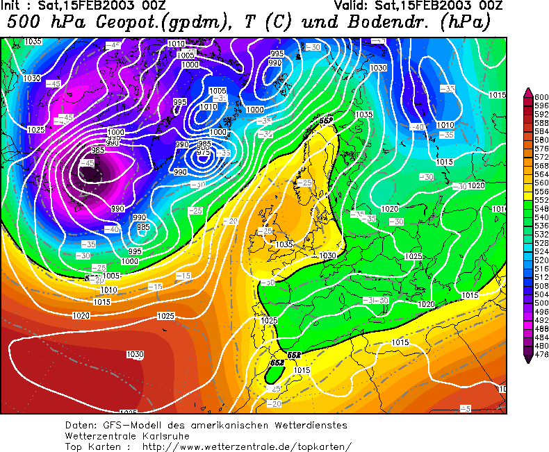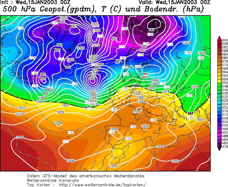 Pierwsza połowa zimy 2002/2003 była naprawdę magiczna, lecz cała magia zniknęła, gdy po 10.01 odbudowało się strefowe łajno. Oto stan baryczny z 15.01.2003, nie oszkujmy się, nie napawało to optymizmem....