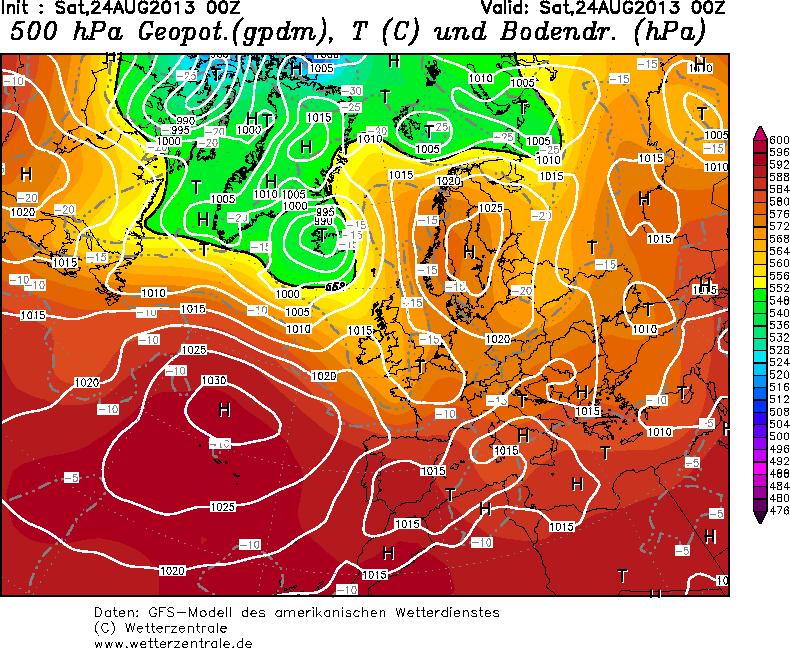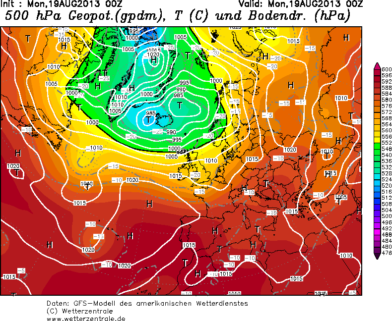 Jednak patrząc na sytuację 19.08, widać było wyraźnie zbliżający się napływ kolejnego polarnomorskiego powietrza, dający nadzieje najpierw na burze i deszcze, a potem na kolejne duże ochłodzenie.