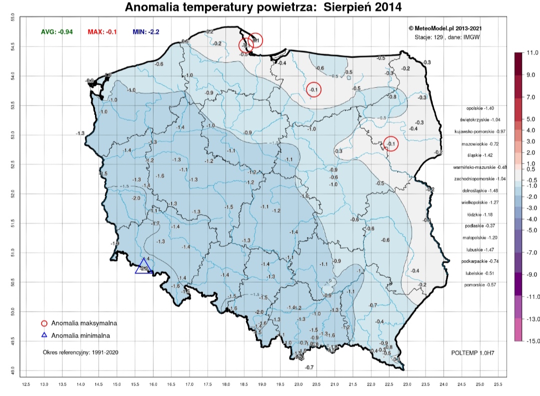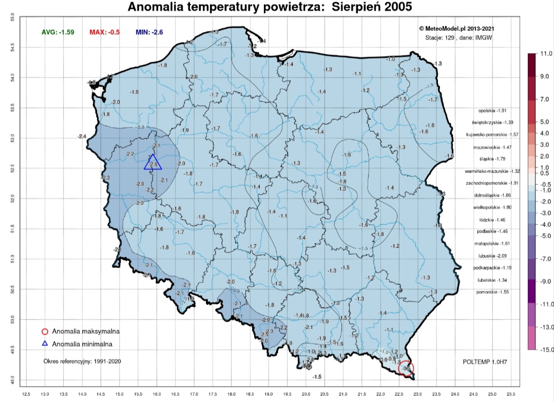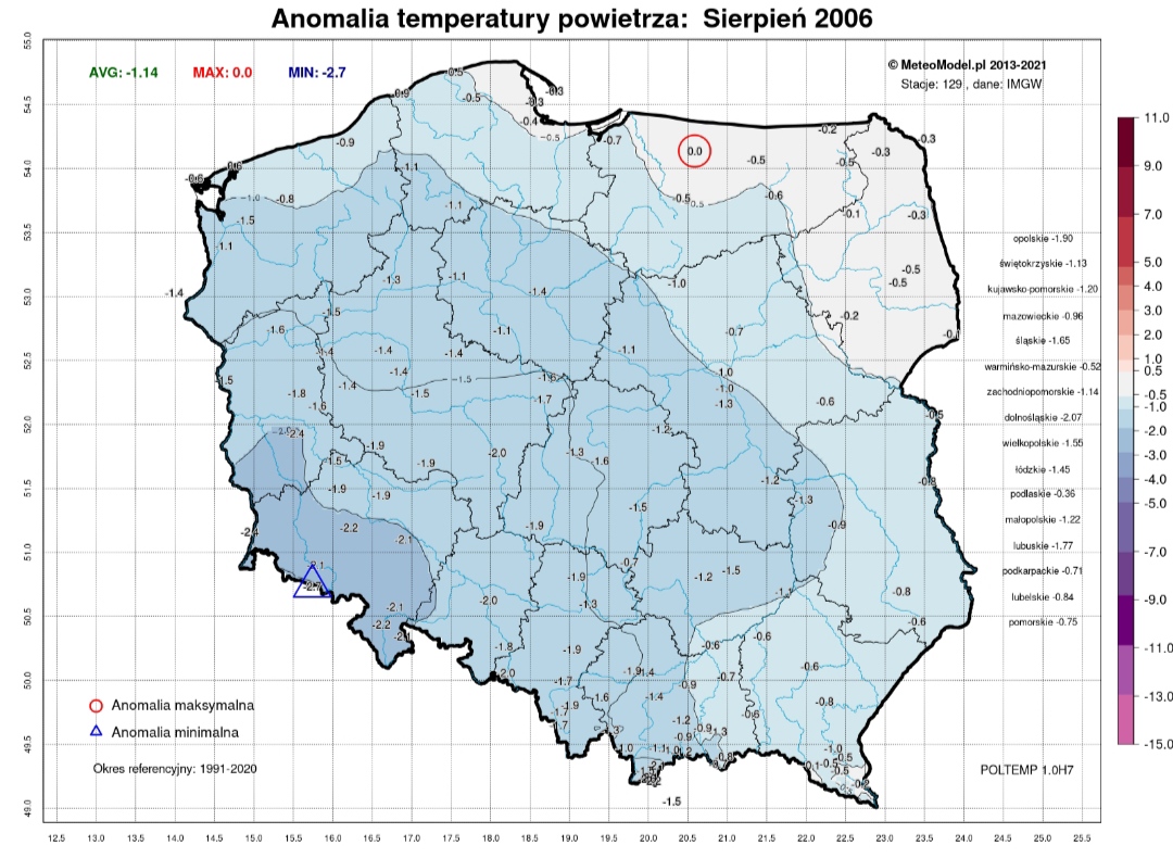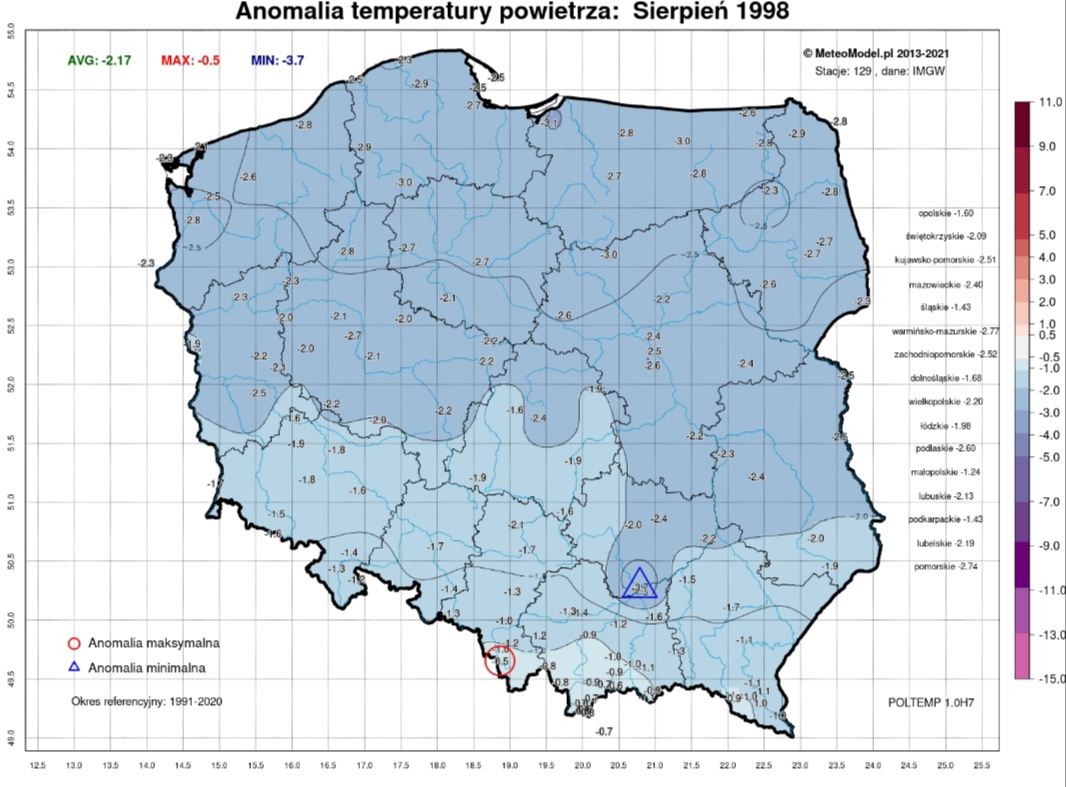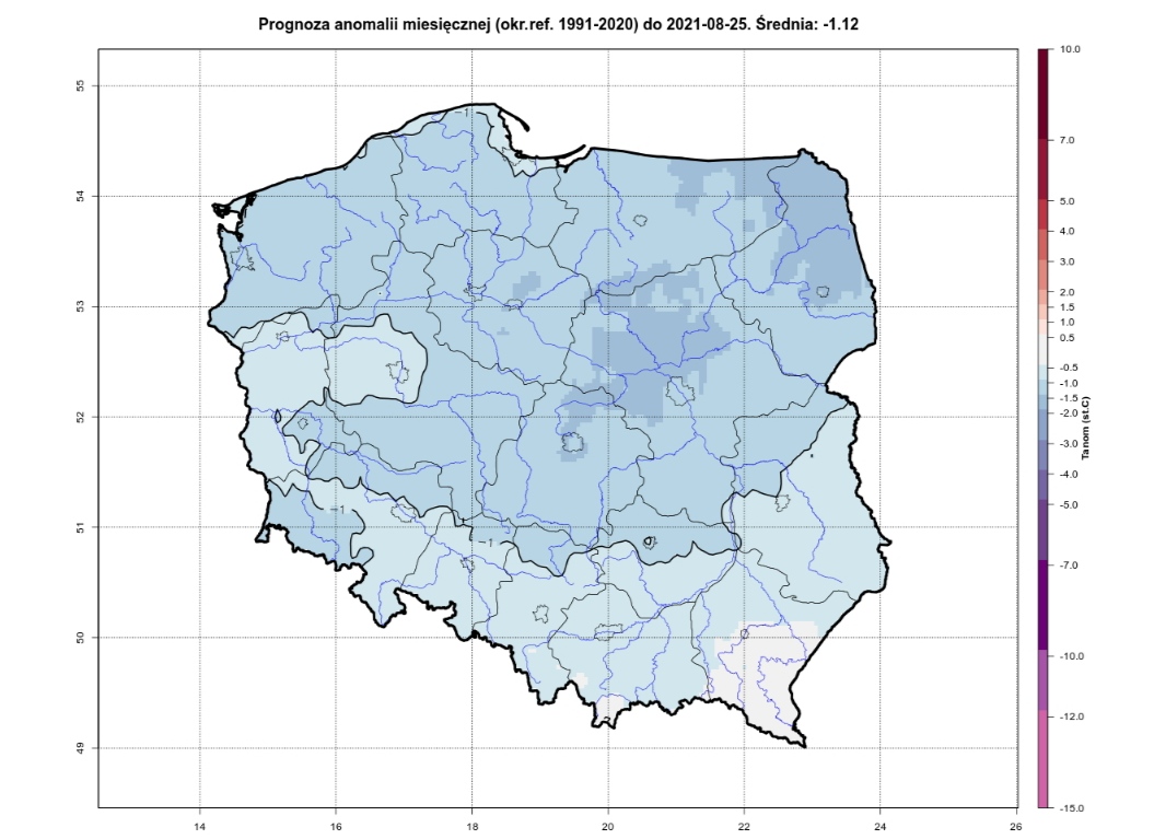 Jak coś to pytanie dotyczy skali kraju, a nie lokalnie . Najzimniejsze sierpnie XXI w. do tej pory miały podobny rozkład anomalii i były głównie przede wszystkim na zachodzie, w tym roku zanosi się na zbliżony rozkład do sierpnia 1998, czyli najzimniej na północy.