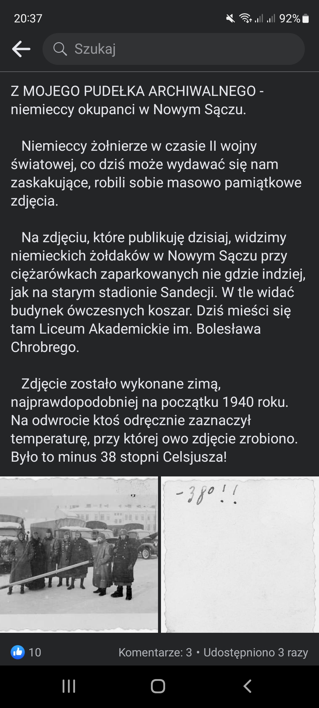 Na tym zdjęciu udostępnionym przez nowosądeckiego miłośnika historii widać, że i w moim mieście temperatura była niesamowita i nawet w tych czasach uznano ją za tak wyjątkową, że została zanotowana z tyłu fotografii. To prawdopodobnie 10-14 stycznia 1940.