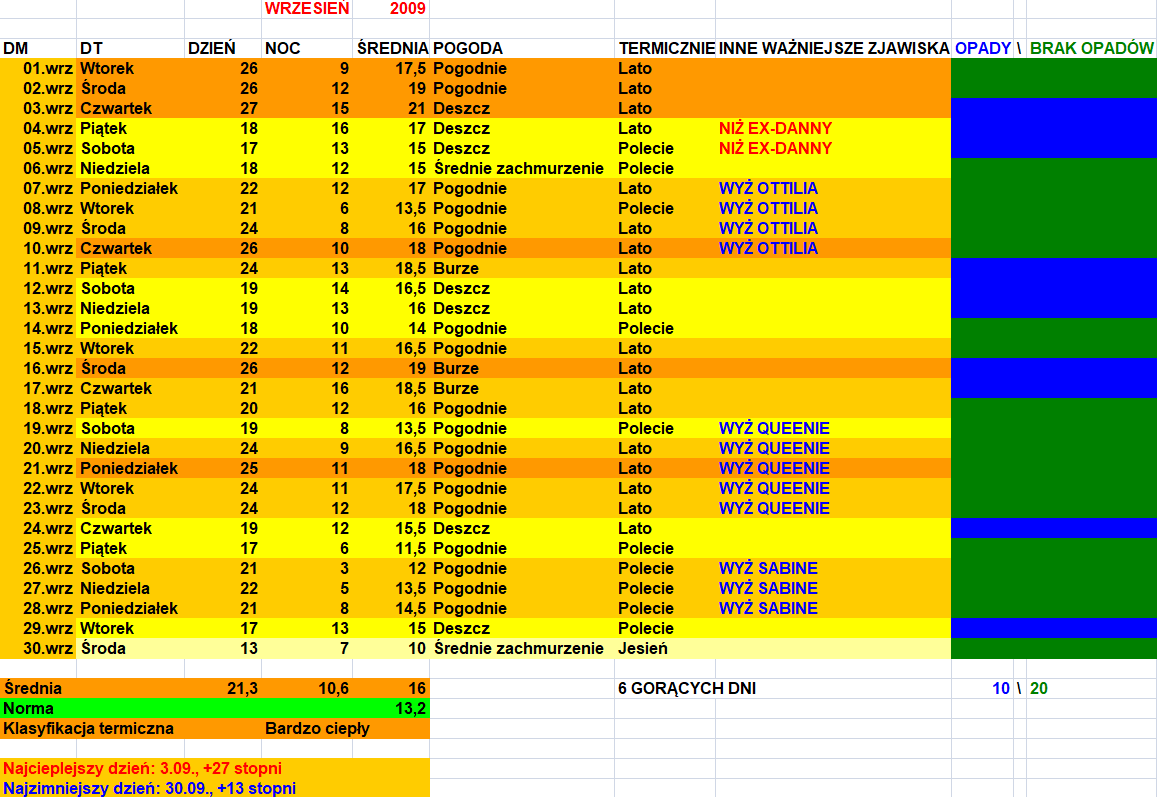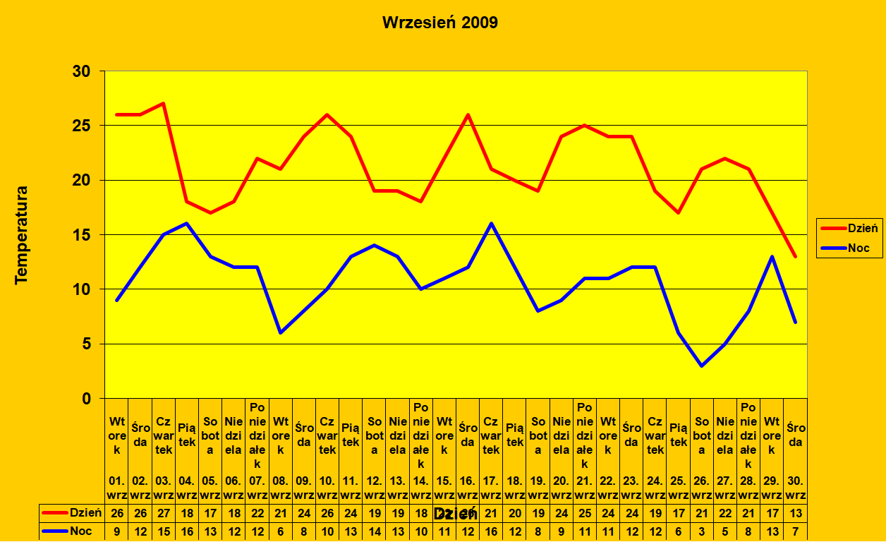 Po pierwszym gorącym dniu przyszło 6 pochmurnych dni, co sprawiło, że teoretycznie był pochmurniejszy od września 2011. Jednak jak od 8.09 się zaczęło, to przez 3 tygodnie był tylko 1 dzień z niewielkim opadem (szczęśliwa niedziela 13-ego), potem to już tylko lampa głównie bardzo amplitudowa. Pod koniec dopadało jeszcze 10 mm, ale i tak był okropnie zimny. Cieszę się, że w tym roku nie musimy przeżywać tego co sierpień i wrzesień 2009 nam zgotowały :cry: . Od tej amplitudowej lampy przez 2 miesiące bym pier*olca dostał :lol: (chociaż sierpień jeszcze miał sensowne przerywniki)