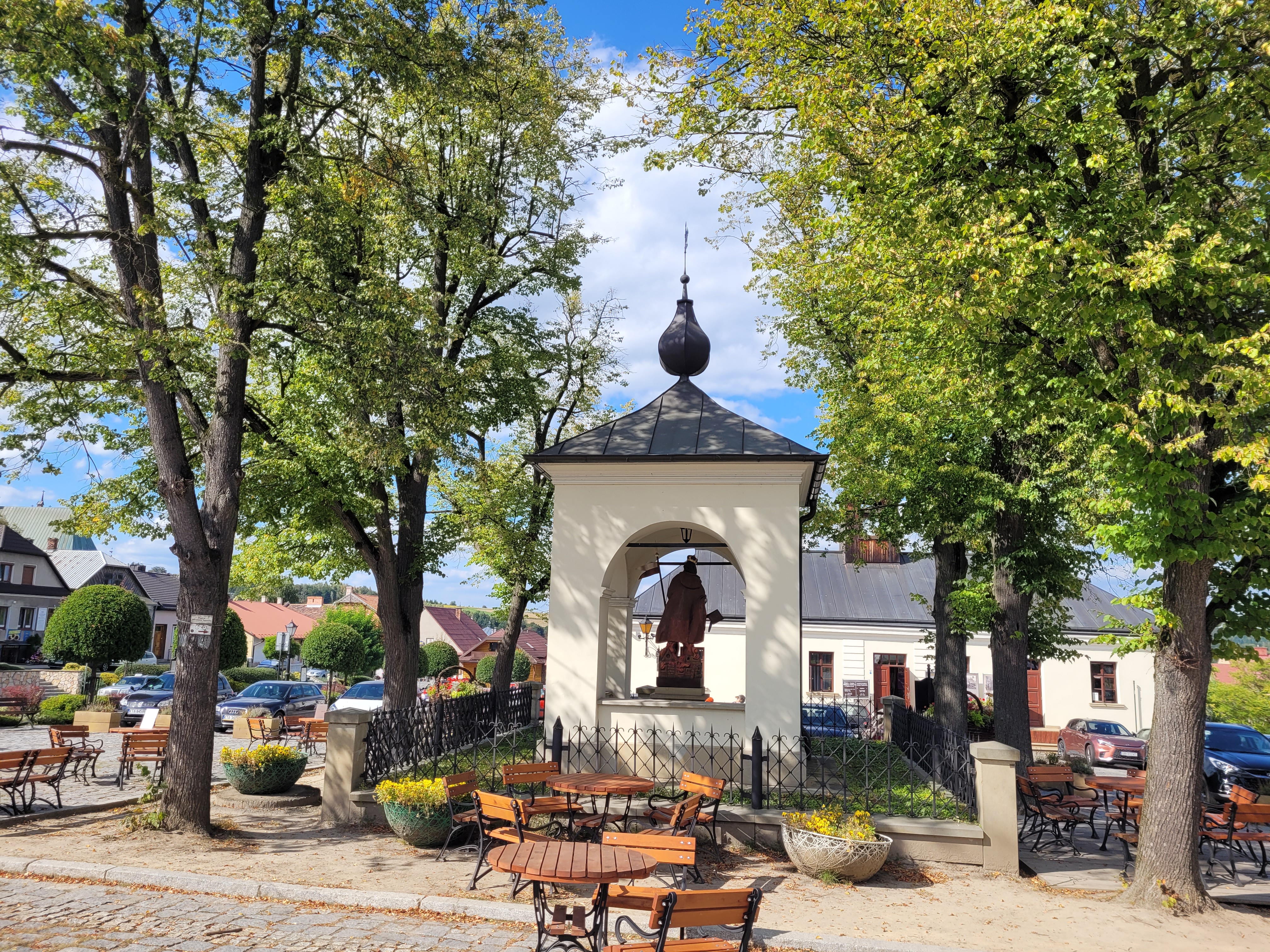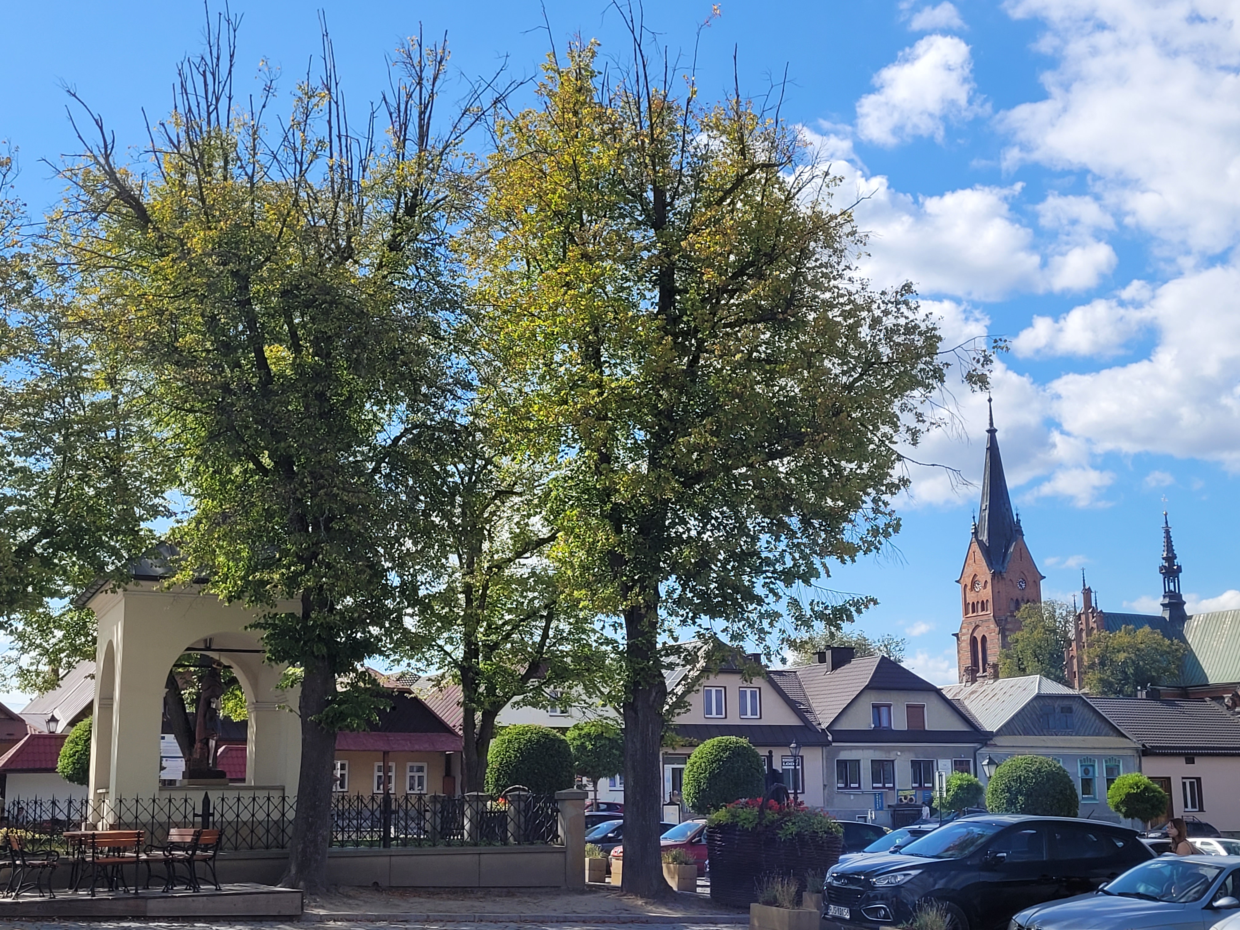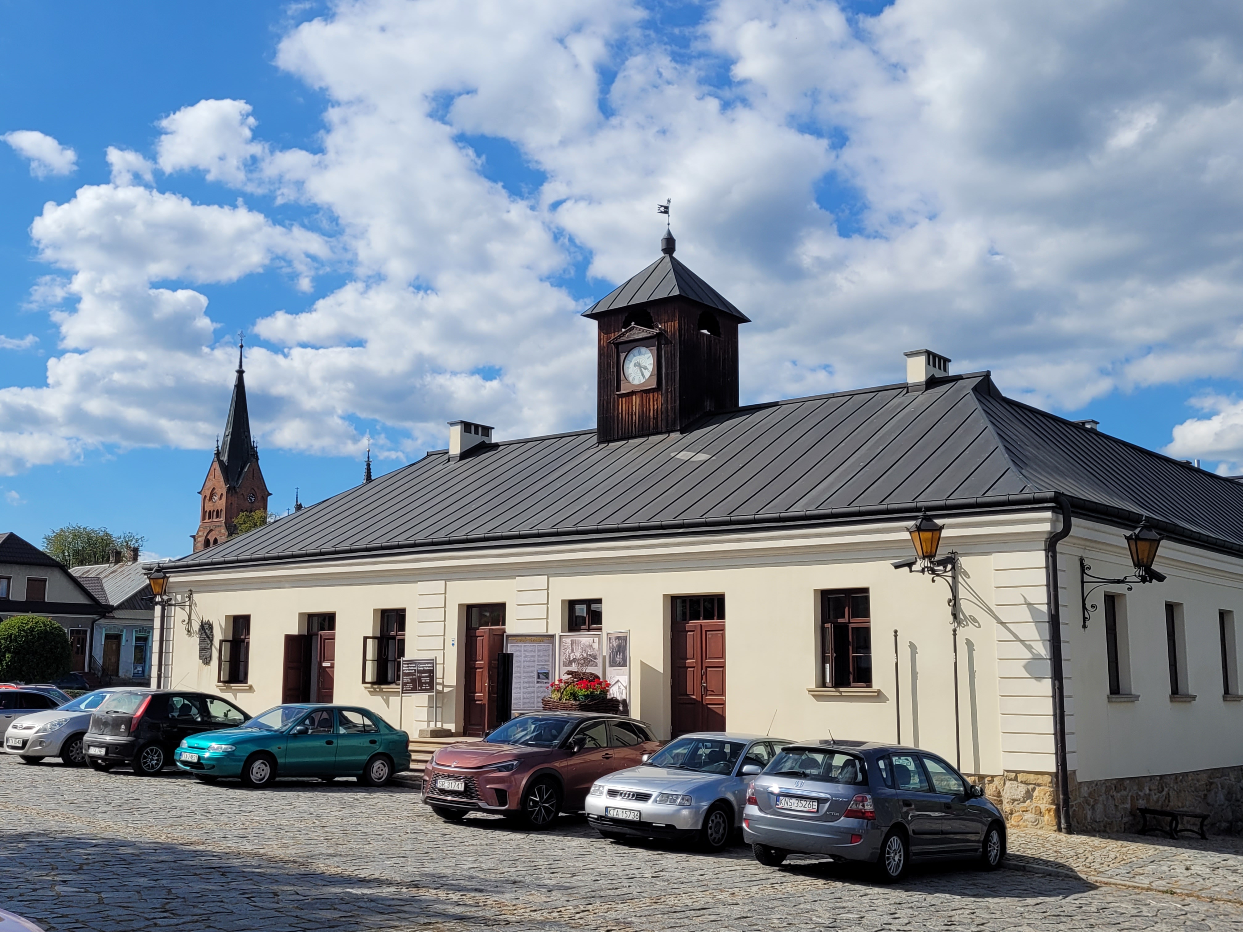 Przedstawia zdjęcia z mojej dzisiejszej rowerowej wyprawy do bardzo urokliwego, założonego w XIV wieku miasteczka słynącego zwłaszcza z położonego w jego granicach rezerwatu - Skamieniałego Miasta. Bardzo ładnie jest jednak także w centrum, zwłaszcza na niedużym rynku mieszczącym miejski ratusz, otoczonym domkami z podcieniami. W pobliżu znajduje się piękny kościół - sanktuarium, a także park zdrojowy. Pomimo położenia blisko ruchliwej drogi, w miasteczku jest bardzo spokojnie. Na pewno porównując Ciężkowice do innego odwiedzonego kiedyś na rowerze miasteczka powiatu tarnowskiego - Zakliczyna - tu podobało mi się bardziej, z uwagi na większą ilość zieleni.