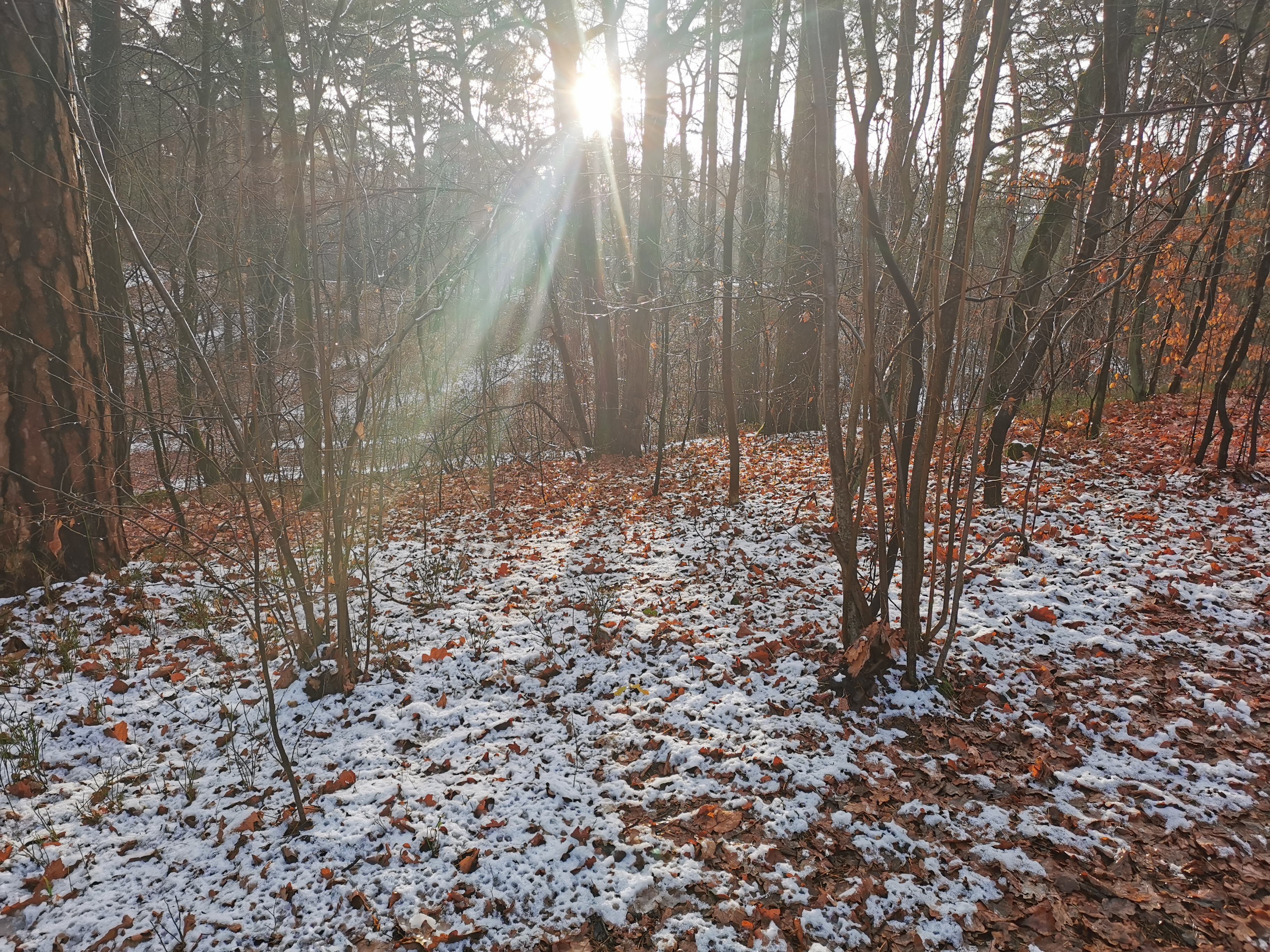 Czy się zawiodłem... ciężko powiedzieć, za dużo tej bieli to tam nie było... Ale w porównaniu do Pruszkowa, gdzie nie zostało już praktycznie nic, było i tak nieźle... Cyknąłem fotę na tle świecącego słonka, które postanowiło wyjśc zza chmur. Tym razem PRAWDZIWEGO