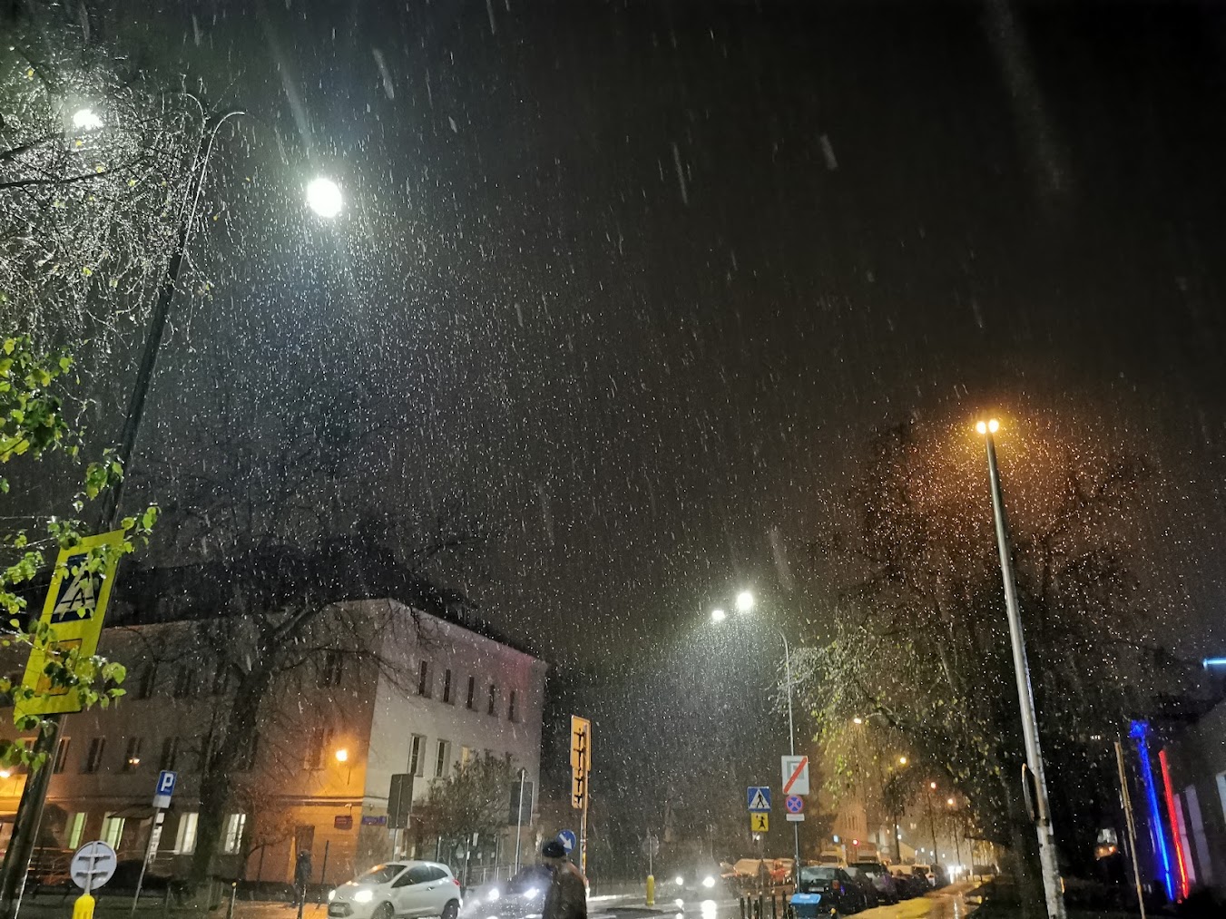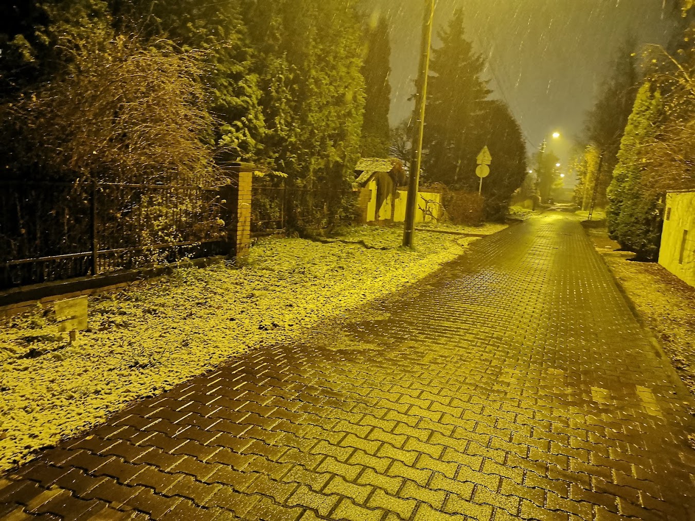 Wszystko zaczęło się wczoraj, jeszcze koło 17:00, kiedy to, będąc jeszcze w Wawie zobaczyłem pięknie sypiący pierwszy śnieg. Niestety, na mokrym betonie nie utrzymywało się dosłownie nic.