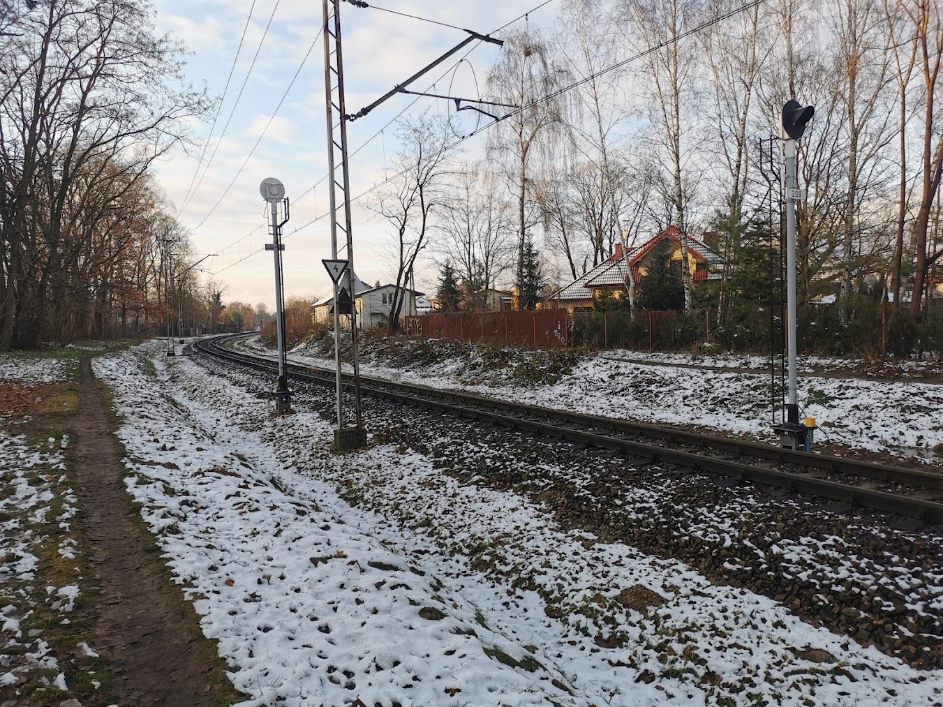 Po 13:00 zakończyłem swoje zajęcia w Pruszkowie i czekała mnie wyprawa do Grodziska. Z uwagi na rzadkie kursowanie pociągów WKD do tego miasta, podjechałem po drodze jeszcze do Podkowy Leśnej, licząc, że już tam zobaczę nieco lepsze widoki. W końcu wg tamtejszej stacji, podczas gdy u mnie lało przy +1 w nocy, to w Podkowie sypało przy +0.5.