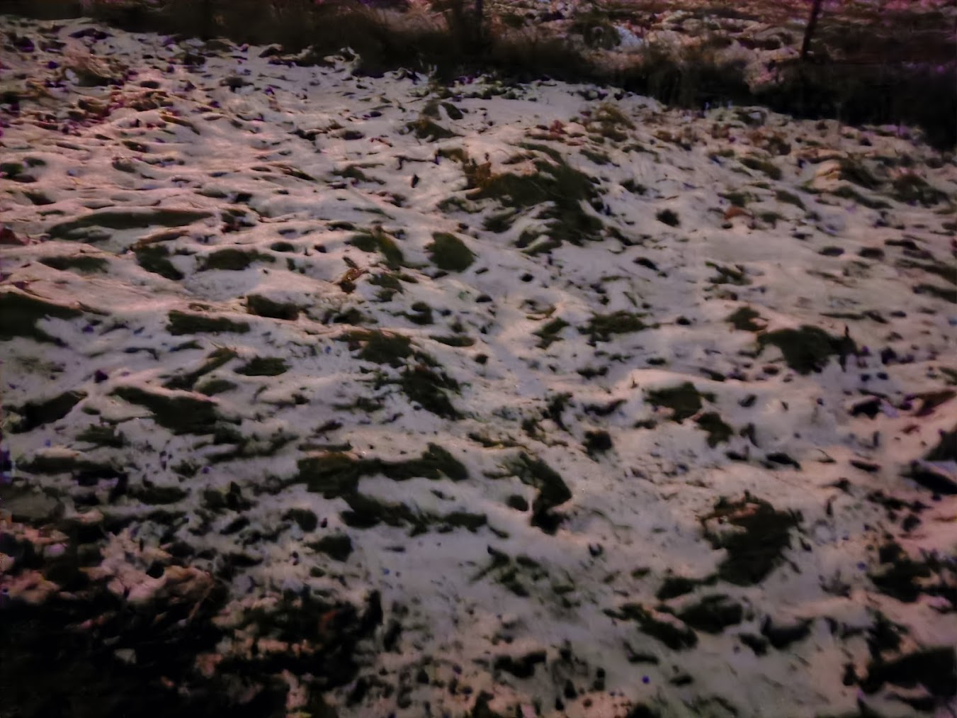 W mieście śnieg utrzymał się tylko śladowo (+1 stopień). Ale na działce (tam była temperatura zerowa), jednak się utrzymał. Zdjęcie robione dzisiaj o godz. 14-tej.