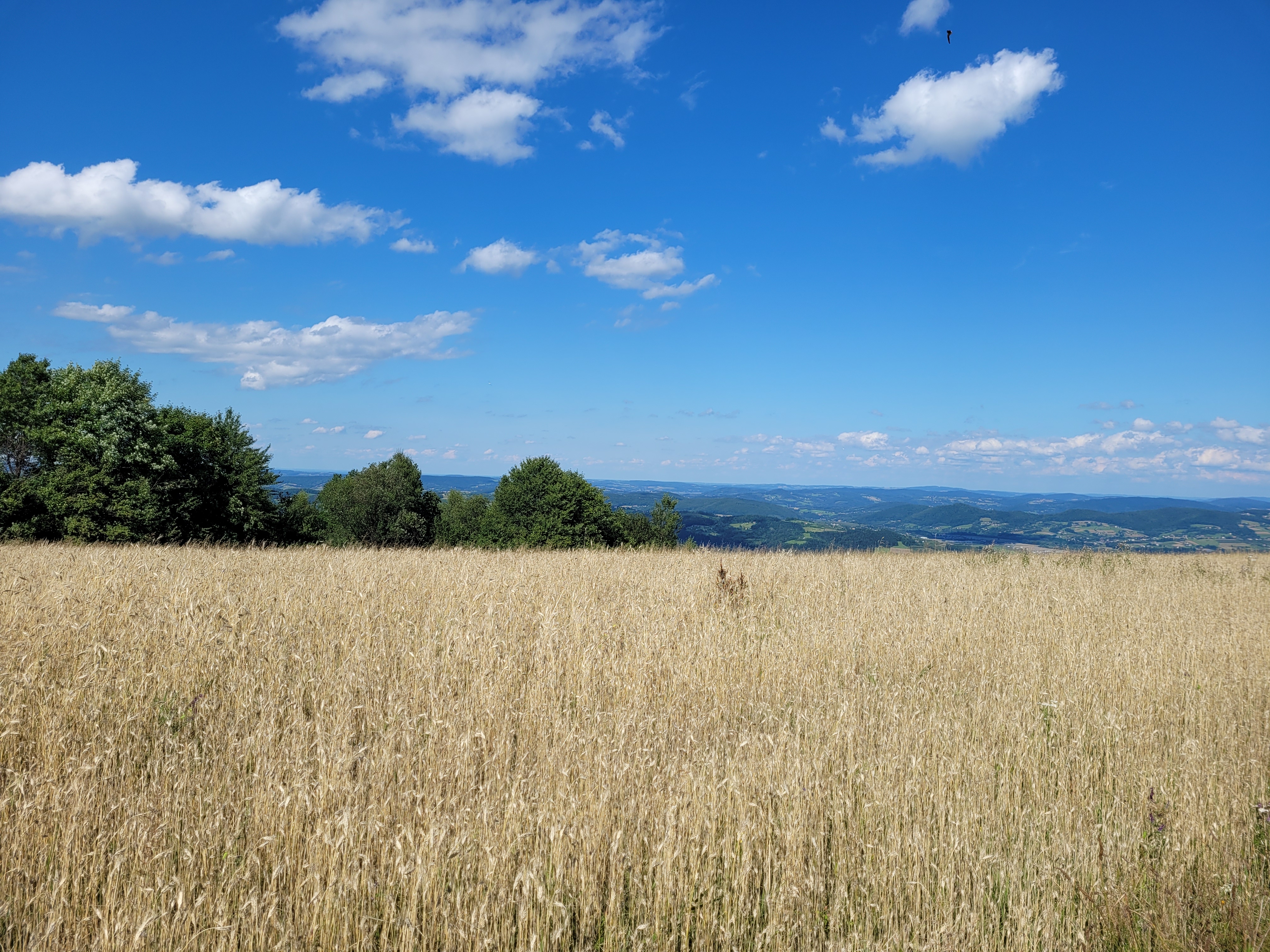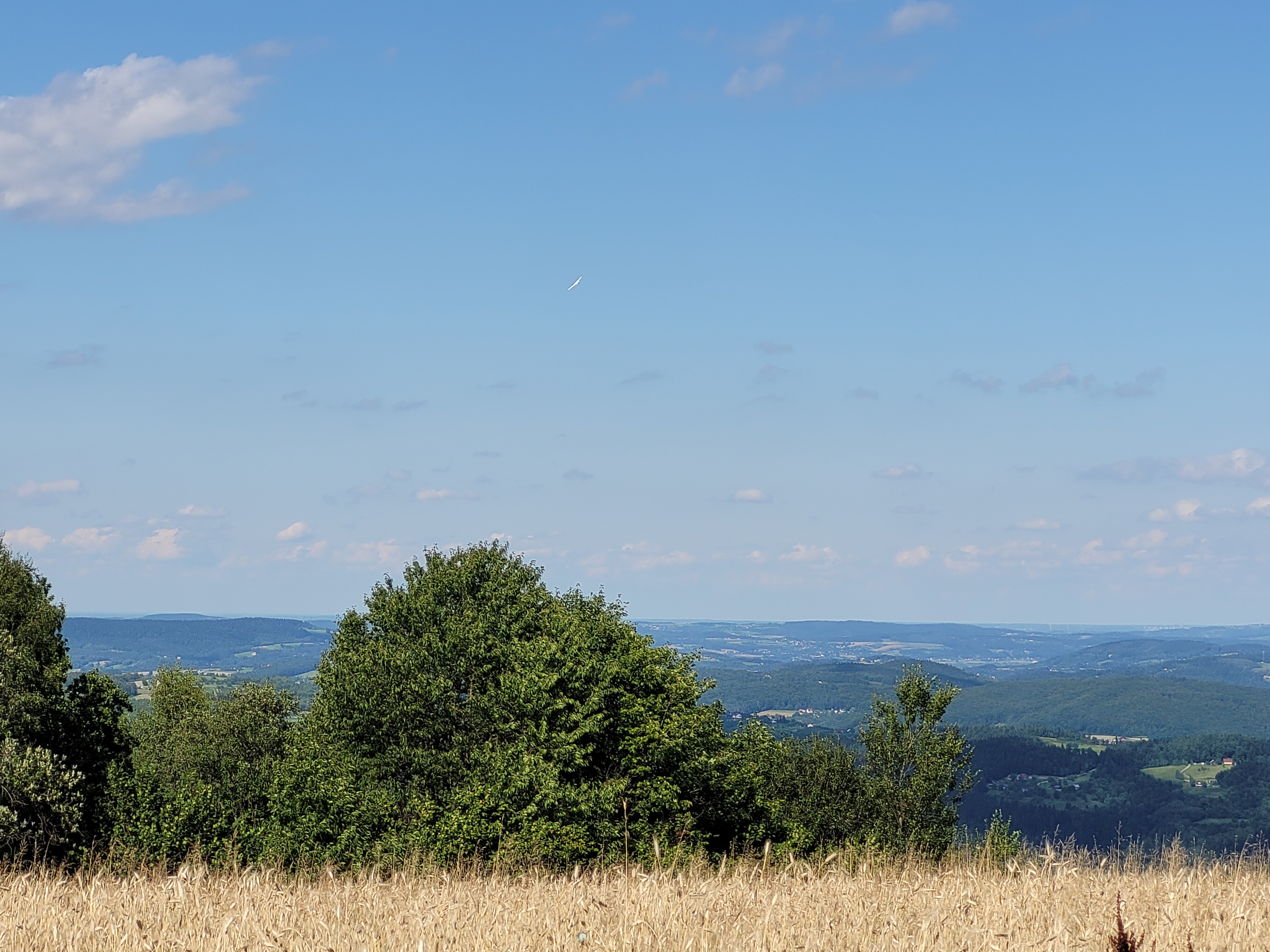 A to dalsza droga po Beskidzie Wyspowym w kierunku domu. Na początku moje ulubione zdjęcia letniej, cumulusowo-lazurowej sielanki w połączeniu z dojrzałym zbożem. Na jednym ze zdjęć zapewne dostrzeżecie szybowiec z pobliskiego aeroklubu