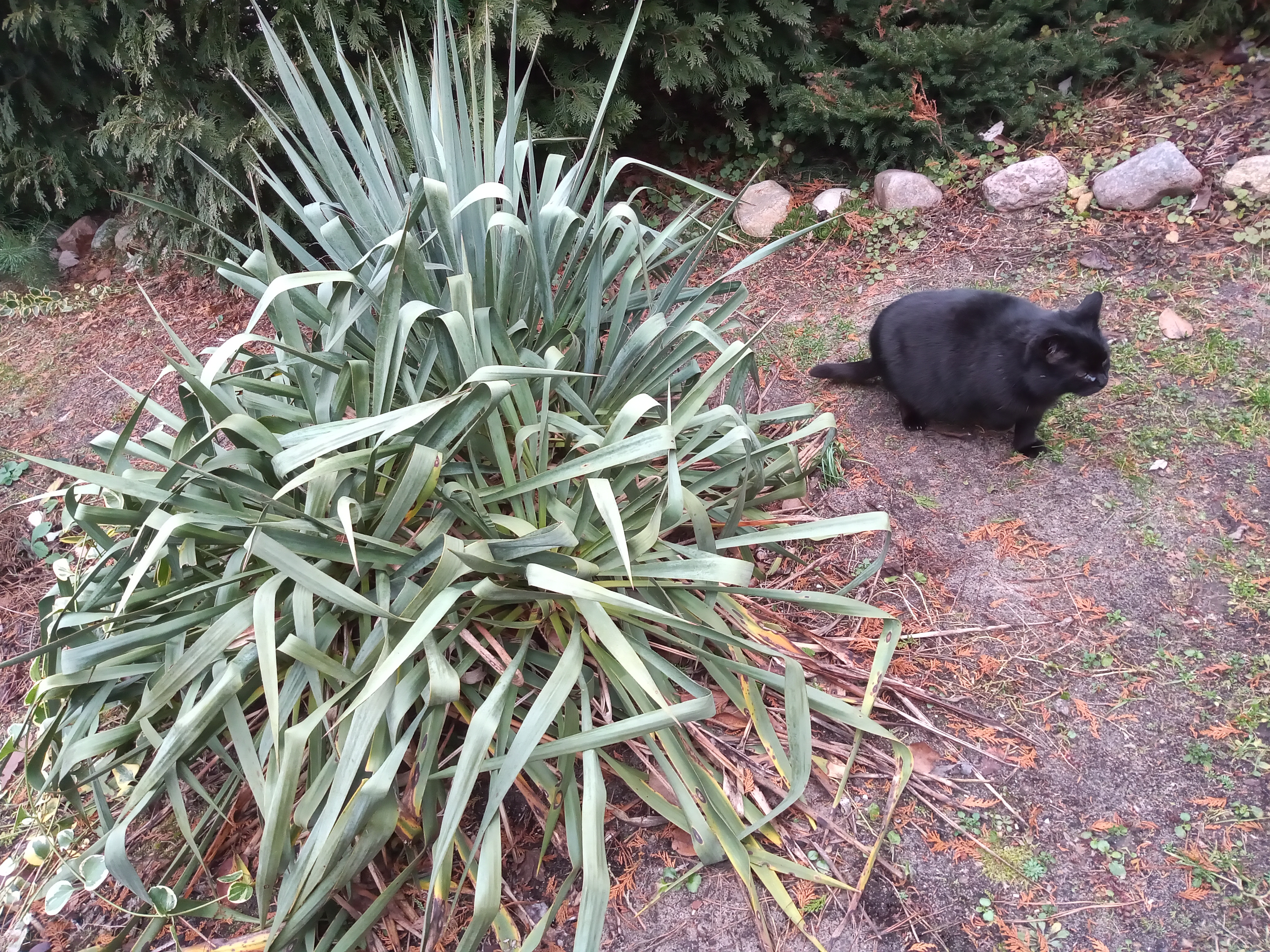 "Sylwester" 2024 r. Zimozielona juka i kocica Czarnulka.