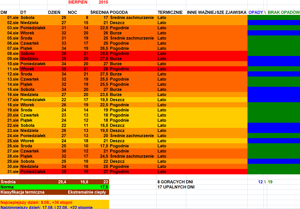 Na pewno był to miesiąc budzący skrajne emocje. 1 i 2 dekada nie przypadły mi zbytnio. 3 już dla mnie była lepsza, bo nocami dało się odczuć przyjemne powietrze (z wyjątkiem końcówki) i też nie grzmiało. Najlepszy 1 września w historii nadchodził. ;-)