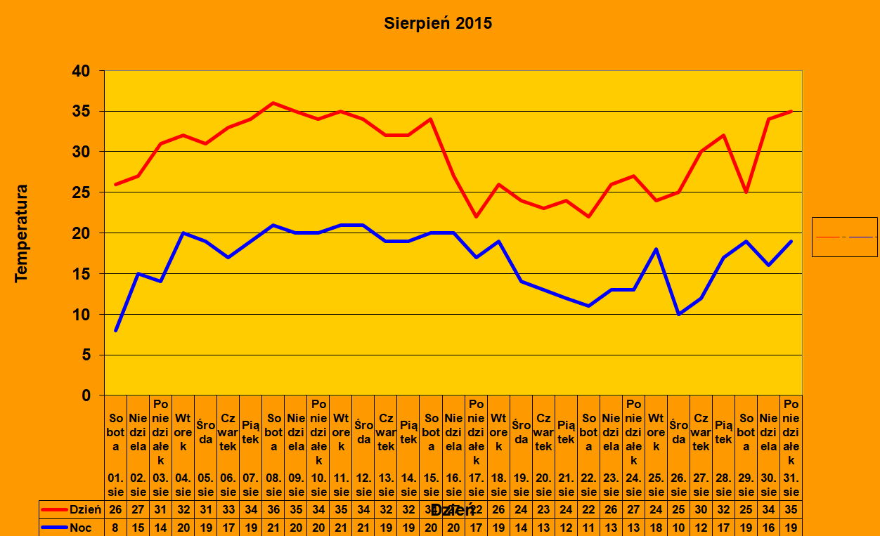 Sięgnąłem do swoich notatek i przypomniałem sobie ten dzień. 31 lipca niebo było u mnie trochę przymglone, a wieczorem szybko robiło się dosyć chłodno, kiedy się rozpogodziło. 1 sierpnia to z kolei piękny dzień, w którym nawet specjalnie nie myślałem o nadchodzącym skwarze, ale pamiętam że kiedy wieczorem wyszedłem na spacer z psem, to trochę zmarzłem, bo przez lipiec zdążyłem odzwyczaić się od takich temperatur ;) Dni od 2 do 5 sierpnia 2015, to u mnie niekiedy taki trochę loszek, choć 4 sierpnia około południa w górach prawie zemdlałem na rowerze od temperatury - w pełni otrzeźwiałem, kiedy trzeba było spierniczać przed pseudoburzą 15 km :lol: Jazda zaczęła się 6-go, to były niezapomniane dni...