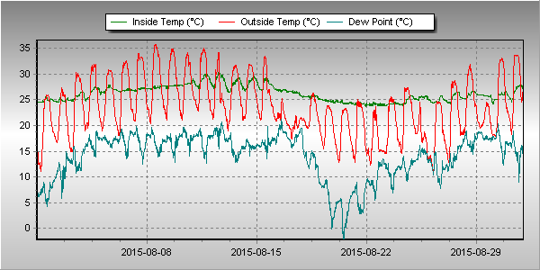 choć sierpień 2015 dzierży rekord pod względem temperatury minimalnej.