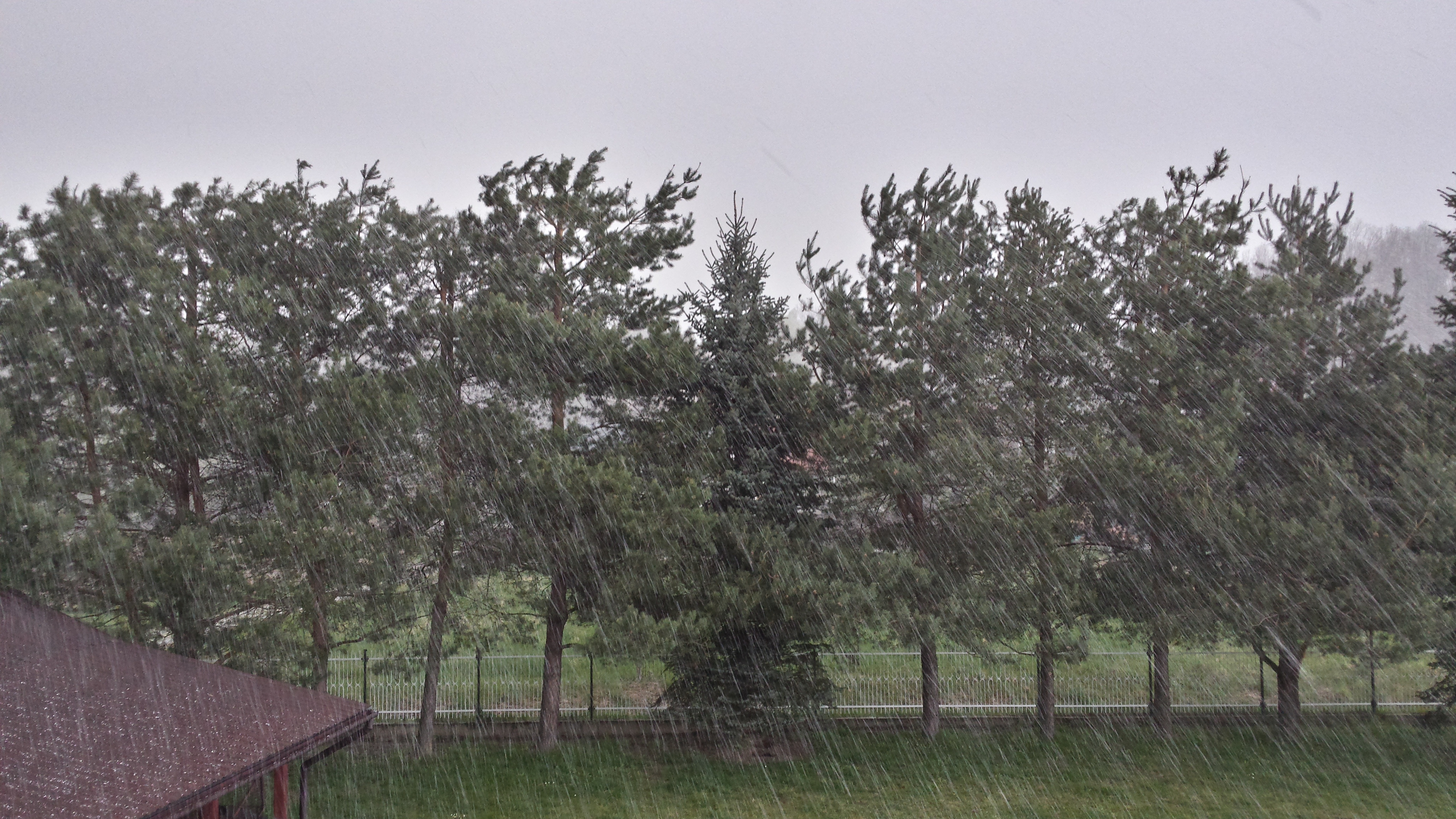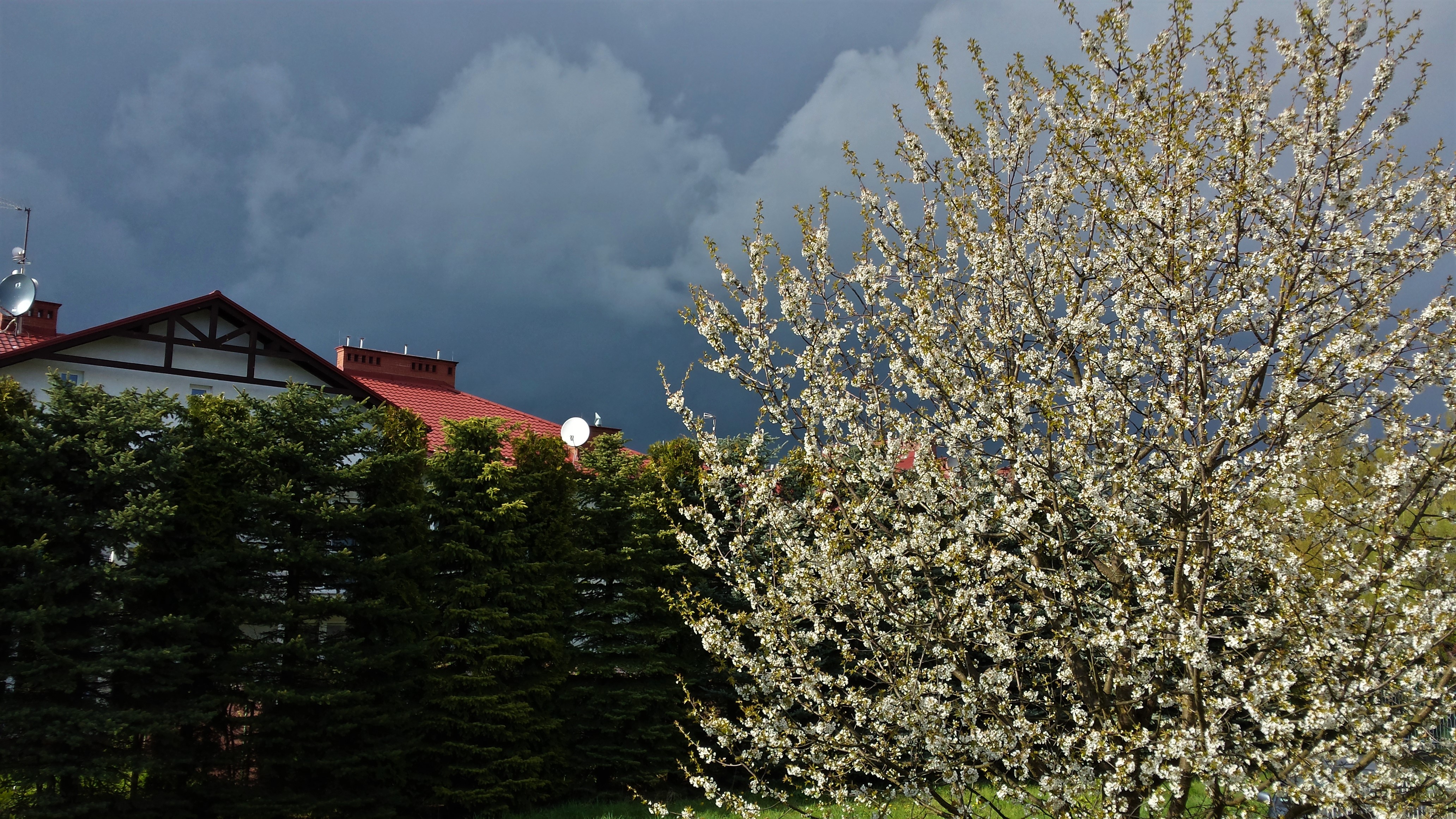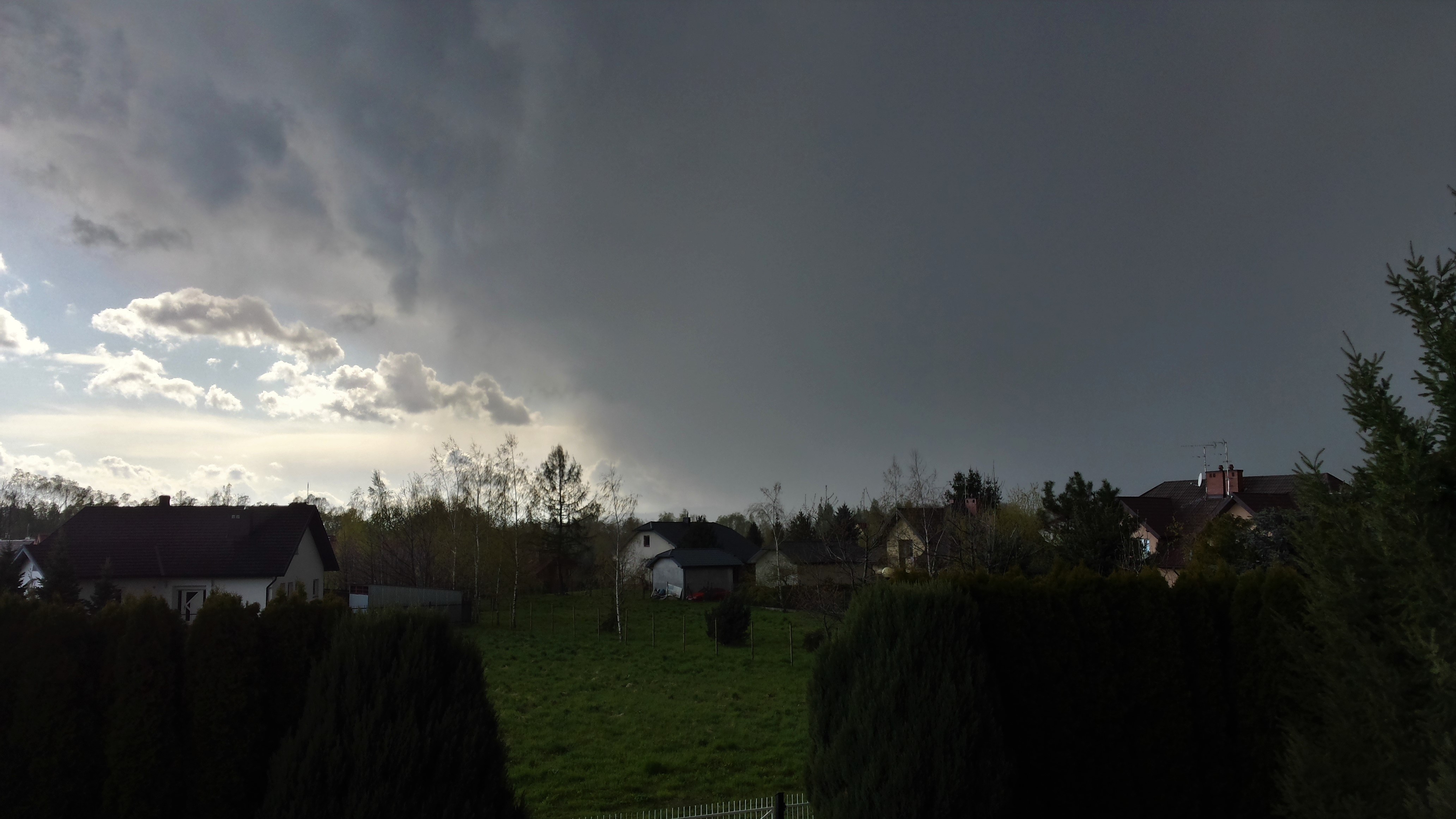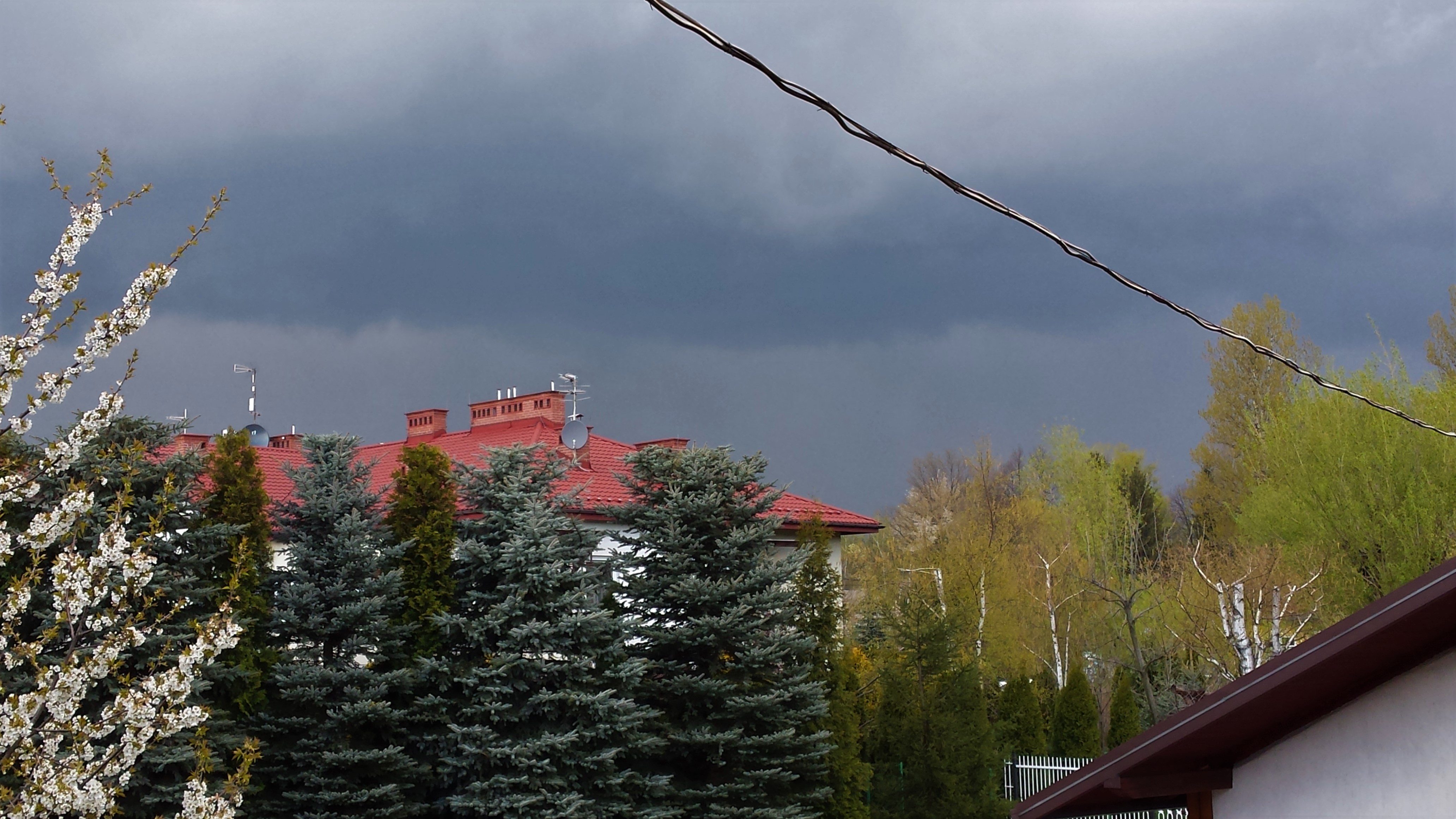 W niedzielę 23 kwietnia, trzy dni po ostatniej pokrywie śnieżnej, było po trochę wszystkiego. W ten zimny dzień z maksymalną temperaturą na poziomie zaledwie 7 stopni, po krótkim pojawieniu się słońca niebo nagle gwałtowne pociemniało, po czym runęła ulewa deszczu ze śniegiem. Wszystko działo się około godziny 16:30 i naprawdę robiło wrażenie. Myślałem że nadciąga burza