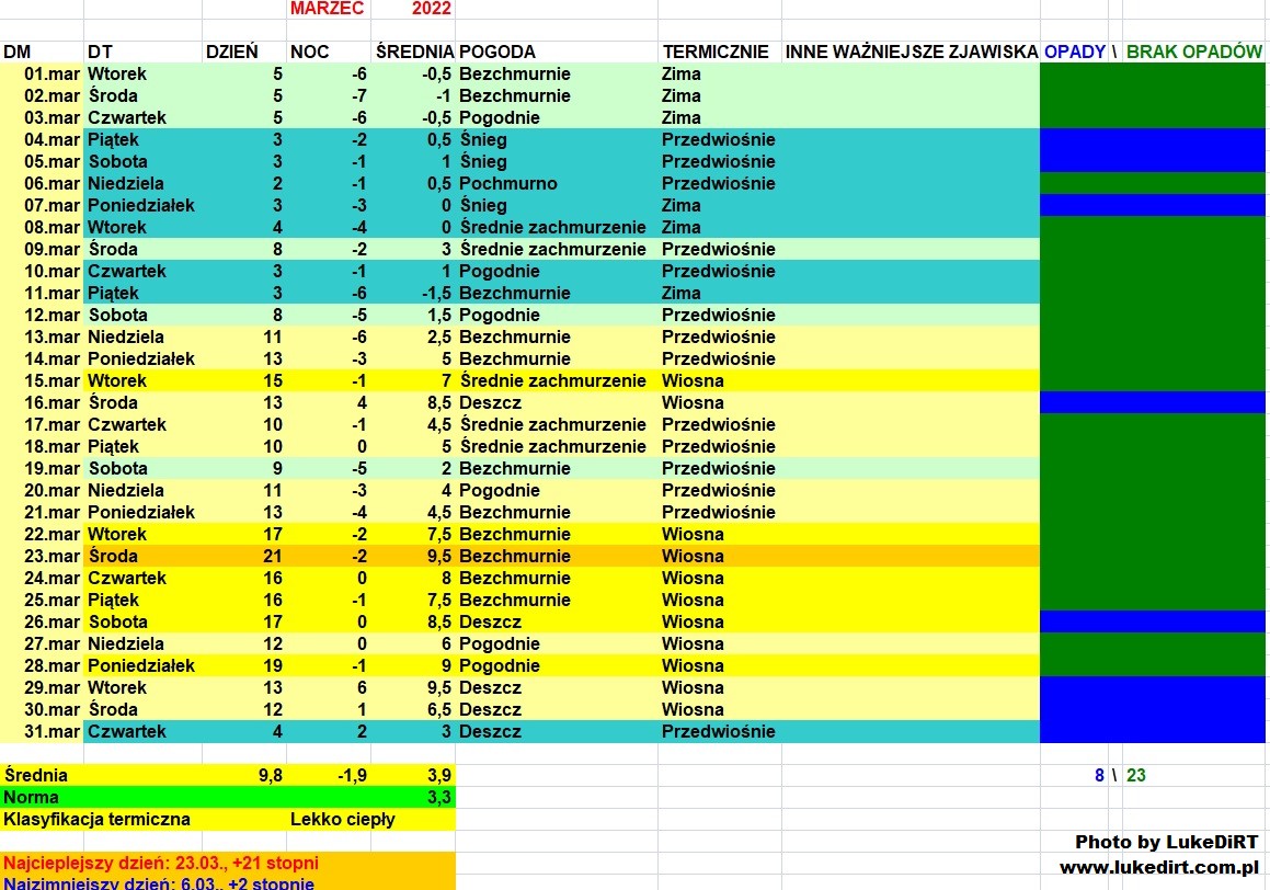 A odpowiadając na Twoje pytanie - dni z opadami, nawet jak uwzględniać opady śladowe, było znacznie mniej niż u Ciebie. 4.03, 7.03, 9.03 i od biedy 31.03. I to wsio.