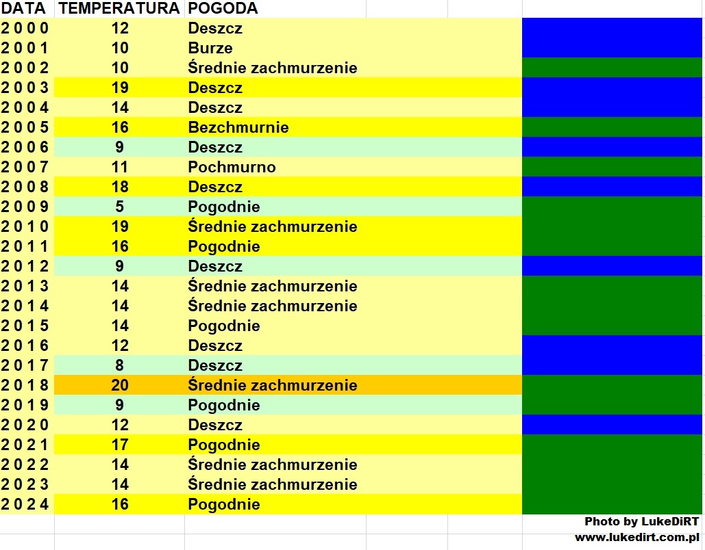 I tak to u mnie wyglądało najcieplej było 2024 roku a najzimniej w 2006 roku i wiem ,że po południu padał śnieg a 2 dni później pokrywa miała 25 cm. Pamiętam dobrze bo wtedy mój ojciec zmarł.