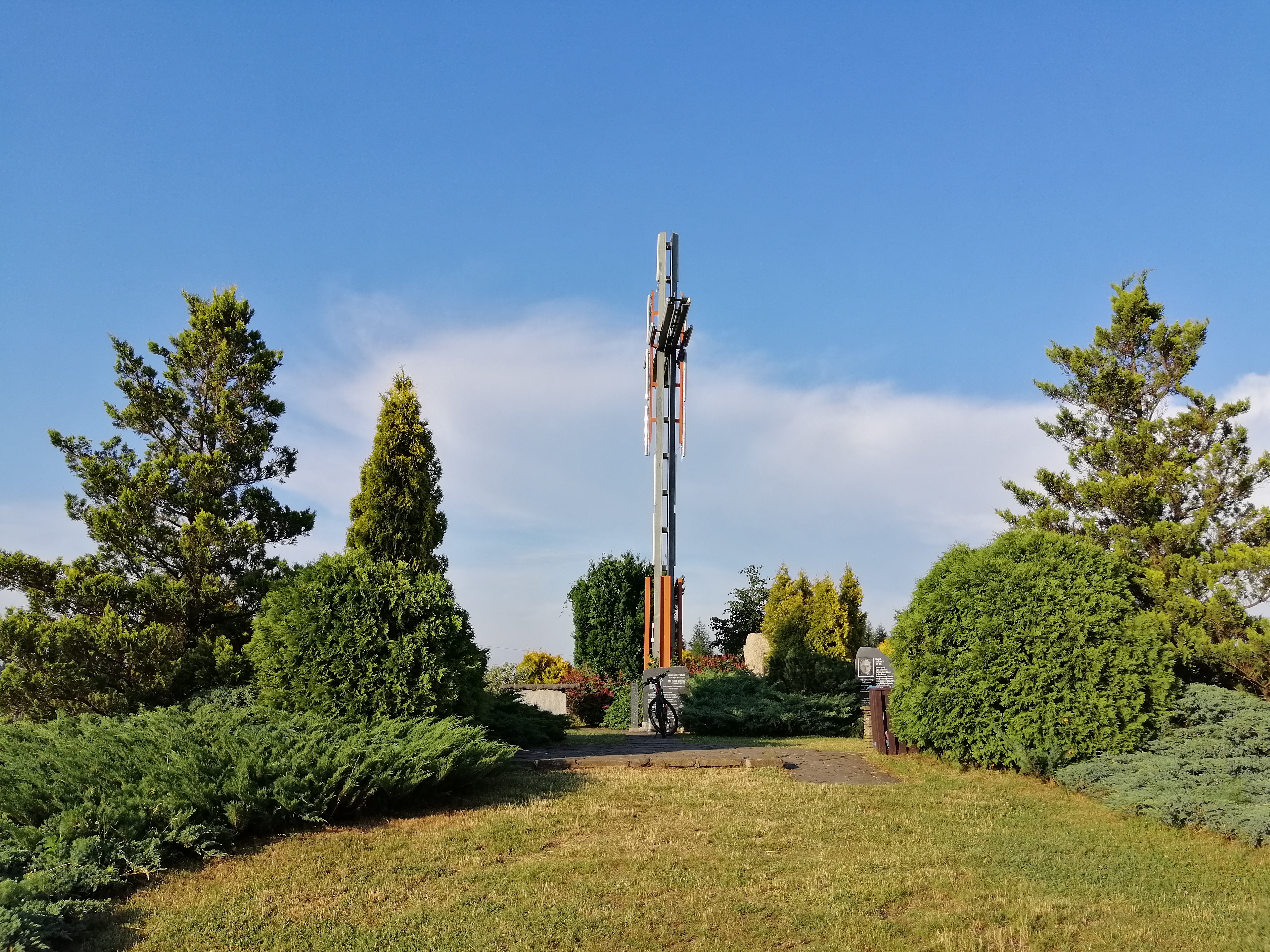 Wzgórze św. Krzyża liczy sobie 527 m.n.p.m. Na jego szczycie postawiono podświetlany krzyż upamiętniający Jubileusz roku 2000 i pielgrzymkę papieża Jana Pawła II na Ziemię Sądecką w czerwcu 1999 roku. Krzyż i tablica pamiątkowa zostały poświęcone 2 kwietnia 2006 roku, o godzinie 21:37, w pierwszą rocznicę śmierci Jana Pawła II. Od tej pory odbywają się tu drogi krzyżowe.