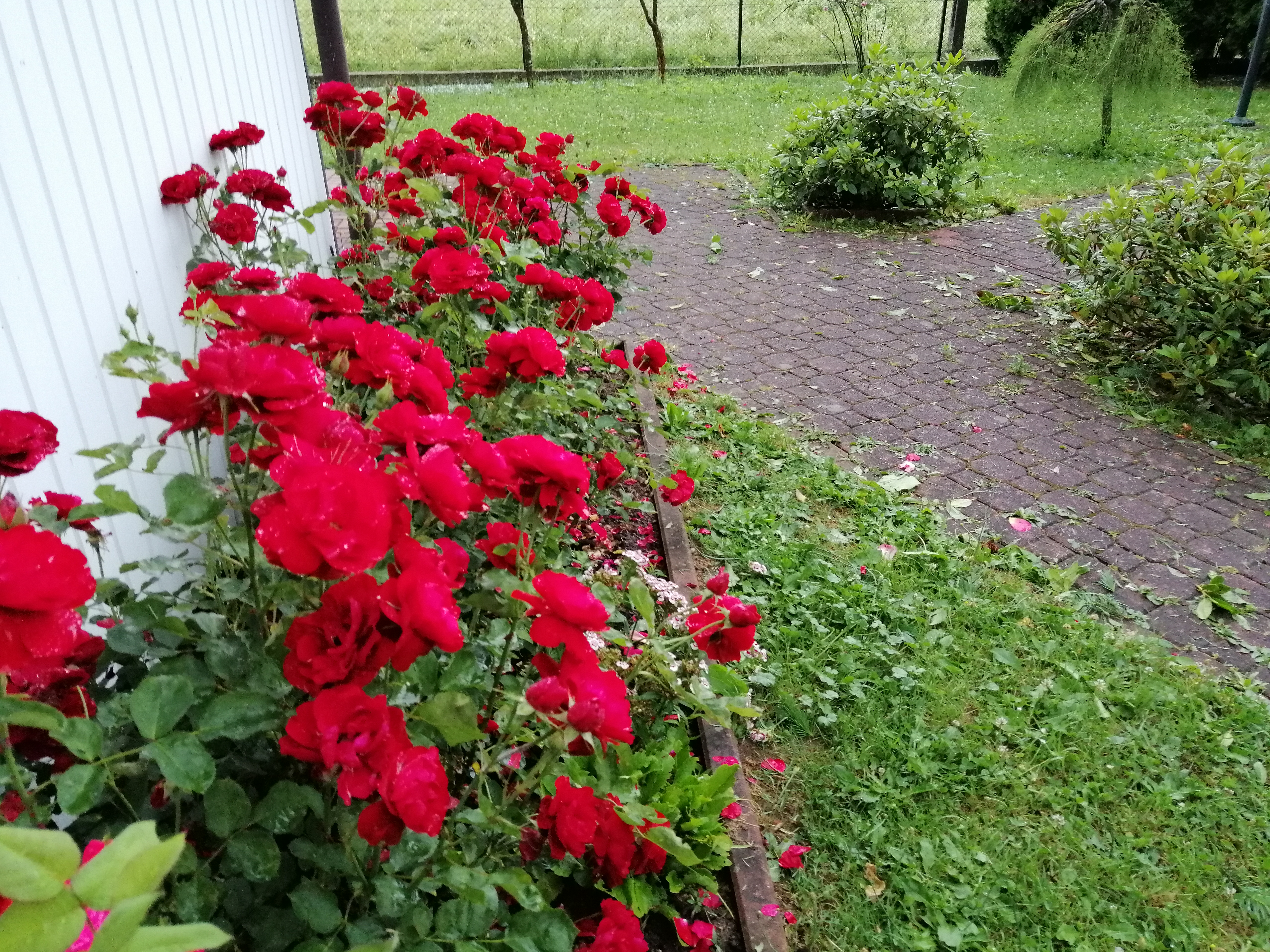 To było straszne. Zniszczeniu uległo wiele roślin, większość czereśni, wszystkie borówki, hortensja, większość juk, mała magnolia (prawdopodobnie, grad ściał jej kawałek), częściowo rododendrony, kilka gałęzi sosen i daglezji, wiele drzew w okolicy. Ale jest dobry akcent. Moja ulubiona róża przetrwała. Tak dzielnie :!: