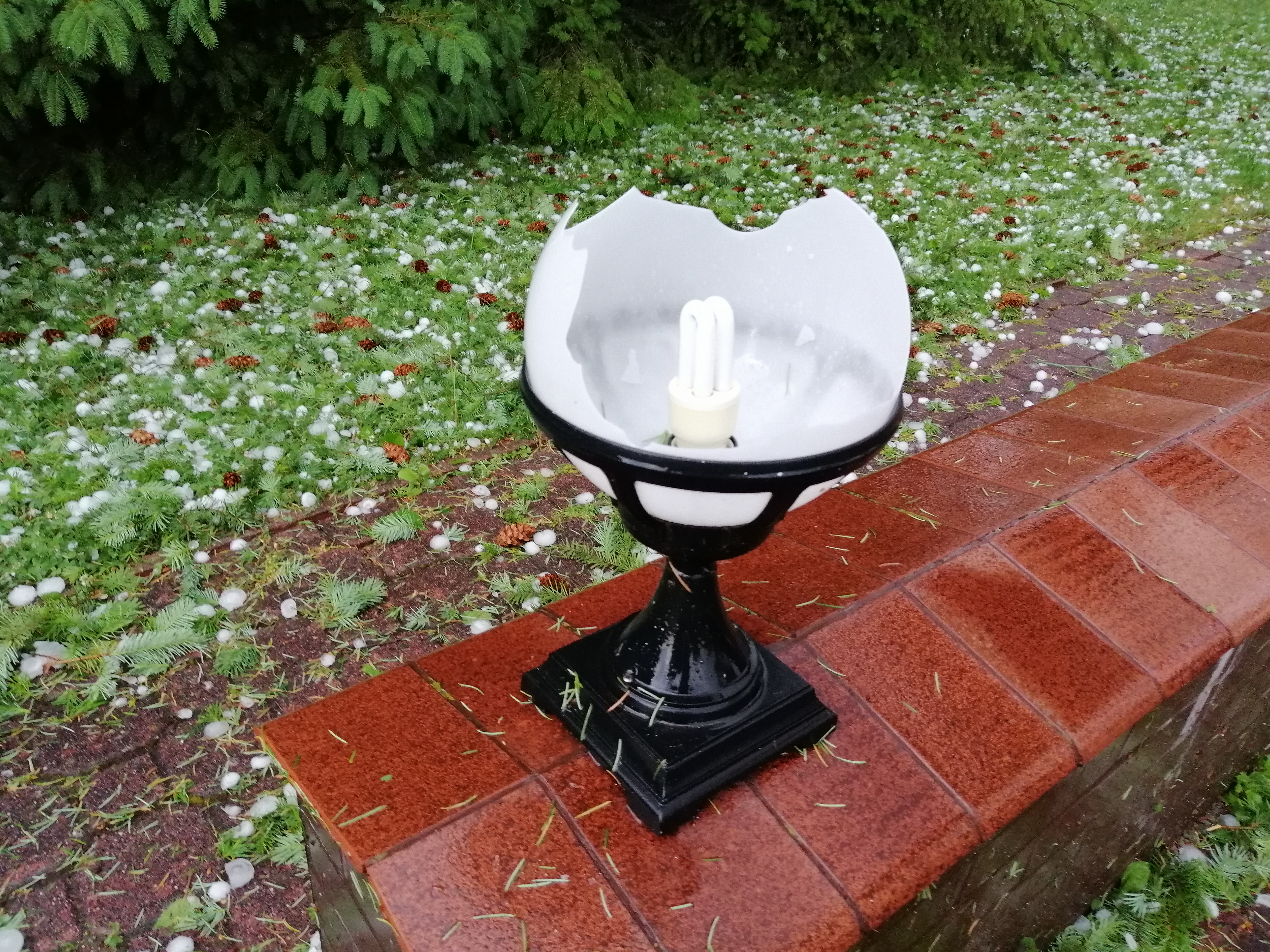 Zobaczyłem jak w okolicy łamie się drzewo. Downburst nie odpuszczał, ciągle wiatr dmuchał jak szalony, a pociski gradu latały poziomo, ładując w ściany domu jak w tarczę. Cały ogród usiany był kawałkami drzew, ale zobaczyłem jeszcze coś dziwnego. I wtedy zauważyłem, że grad rozbił nasze lampy ogrodowe.