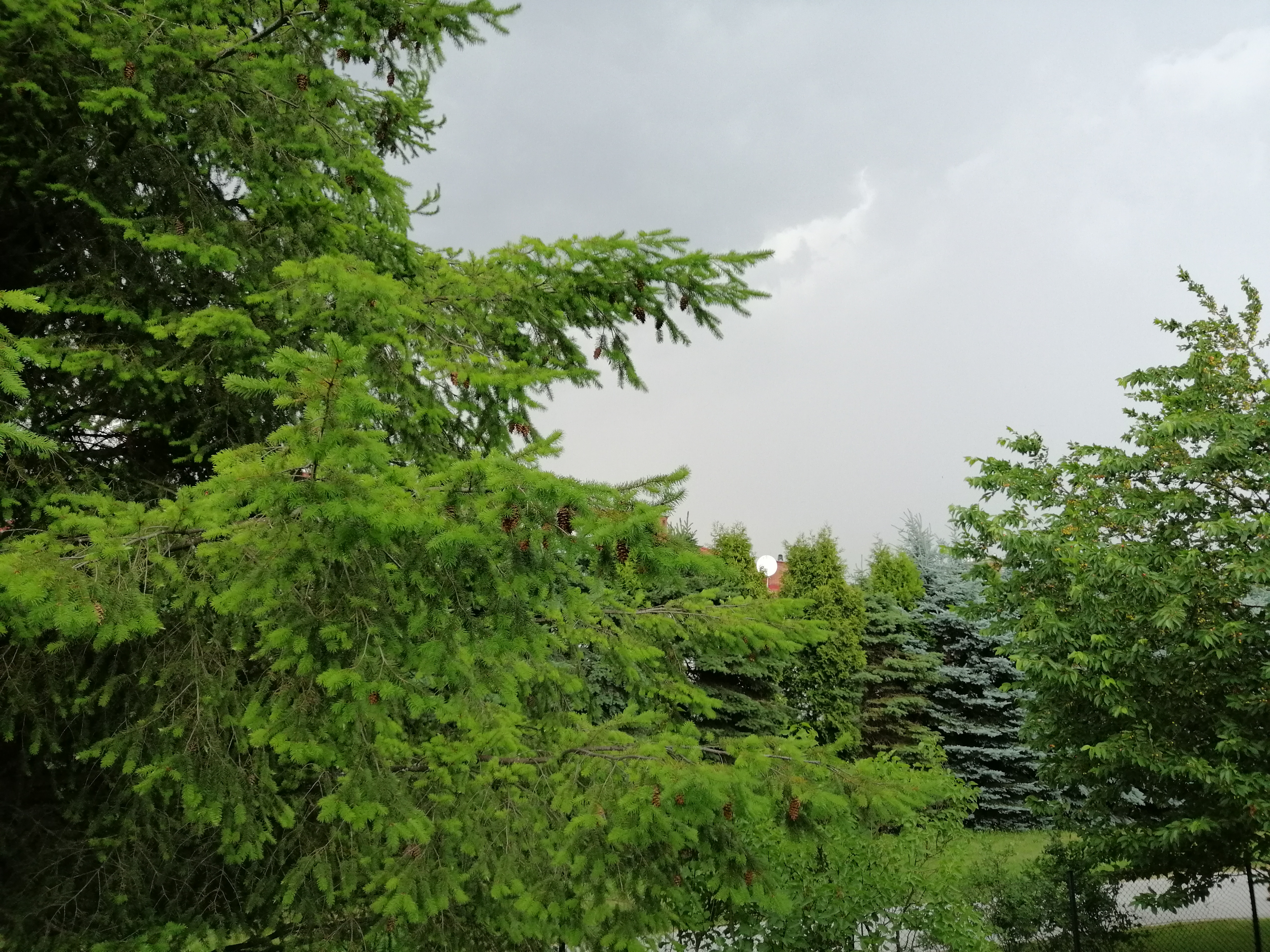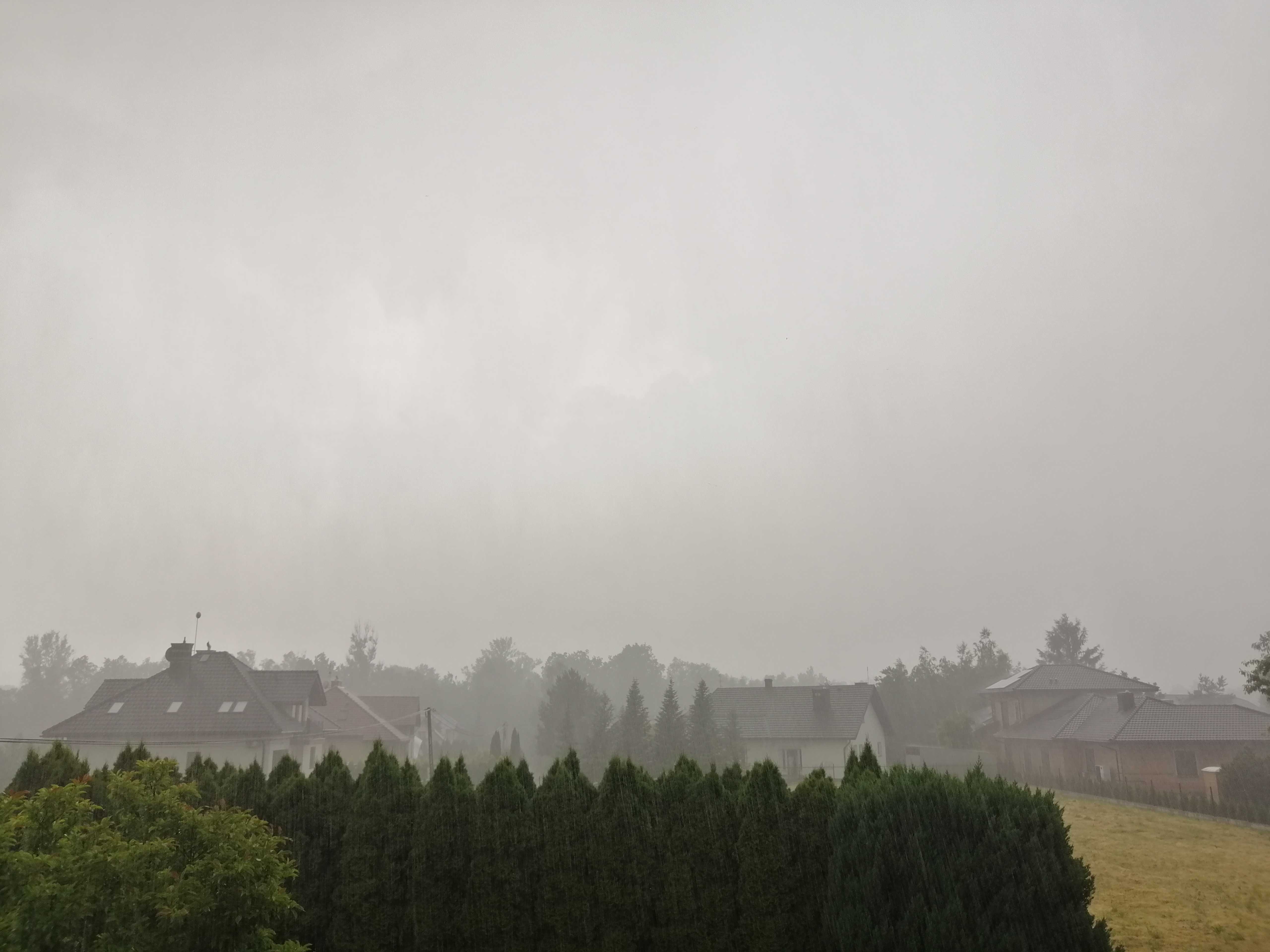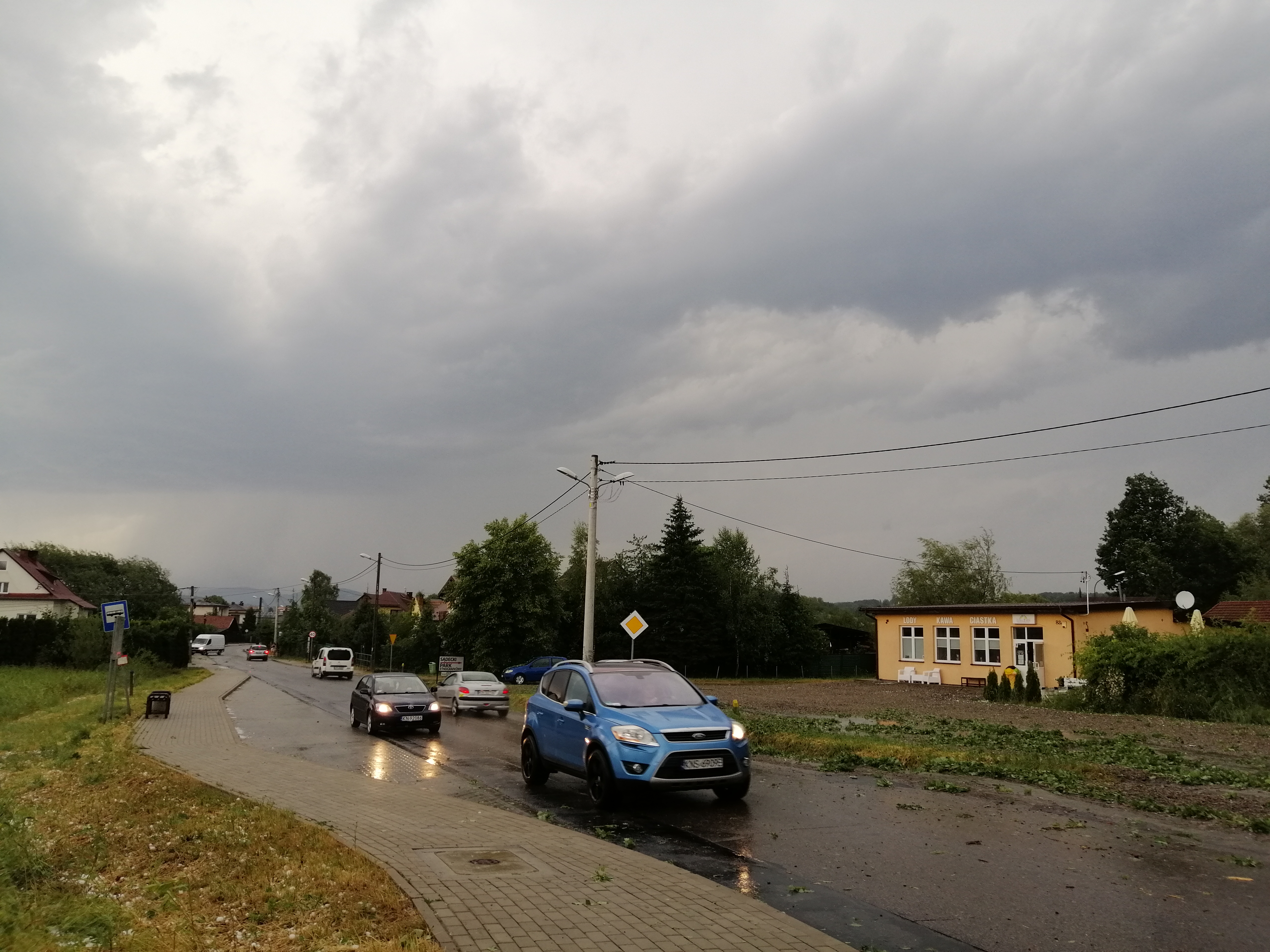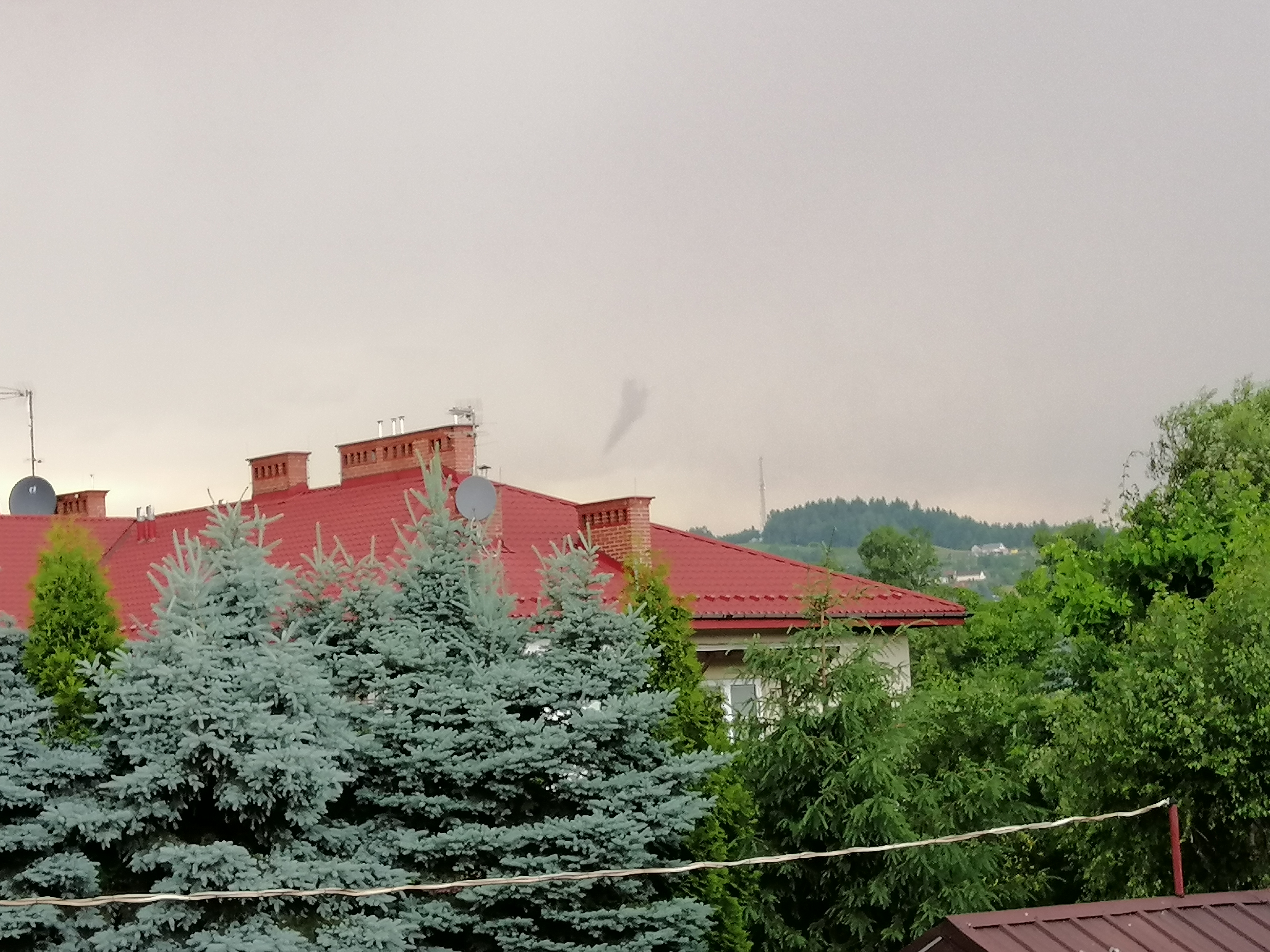 Tymczasem zaczęło mocniej padać i grzmieć. Przez smugi opadowe widziałem jednak tylko rozbłyski, bez kształtów wyładowań. Mój przyjaciel, do którego napisałem o trąbie powietrznej, napisał mi o tym, że dowiedział się o zniszczeniach w Librantowej, że w centrum Nowego Sącza pada grad. Tutaj też się zaczynało.