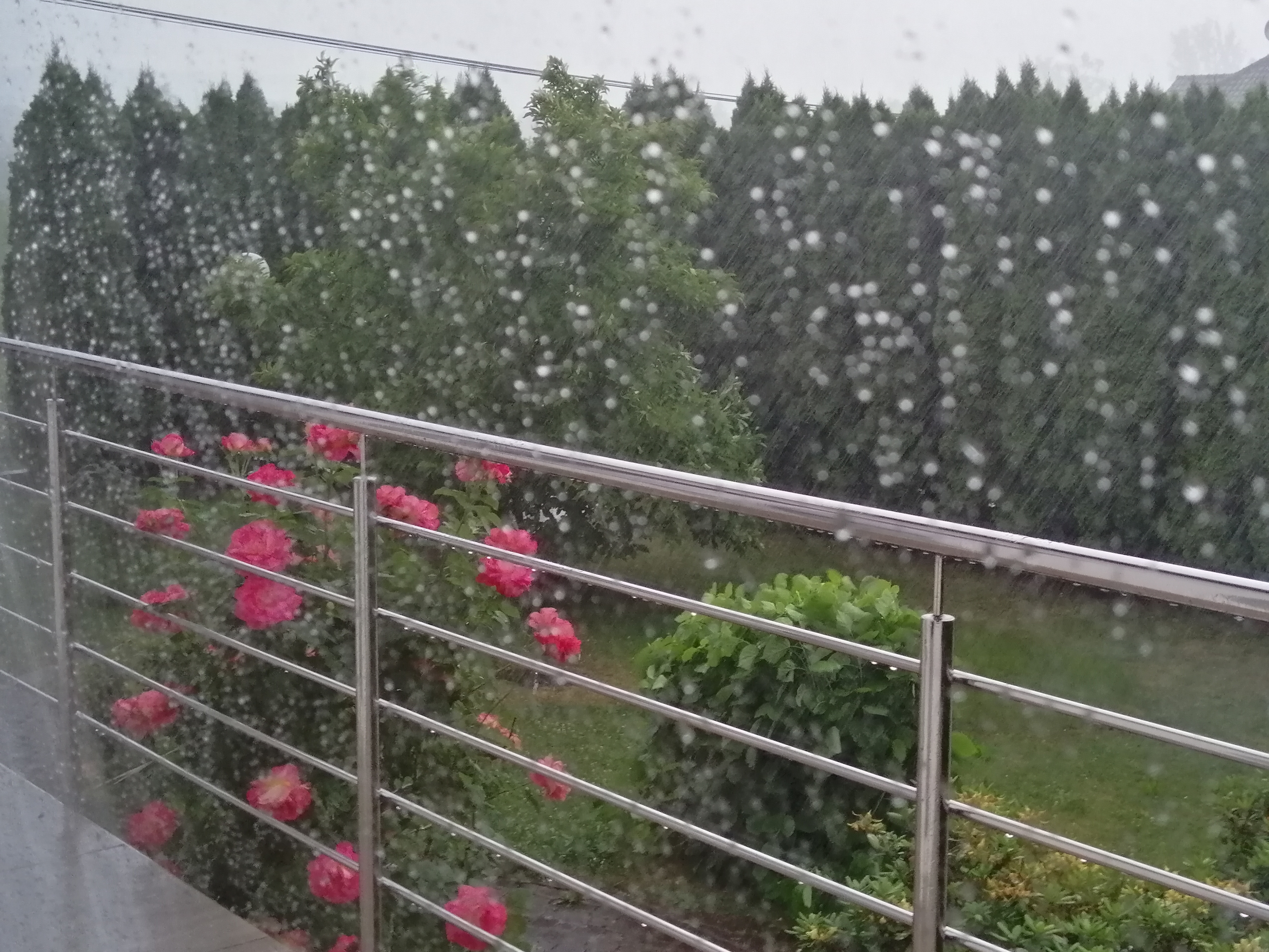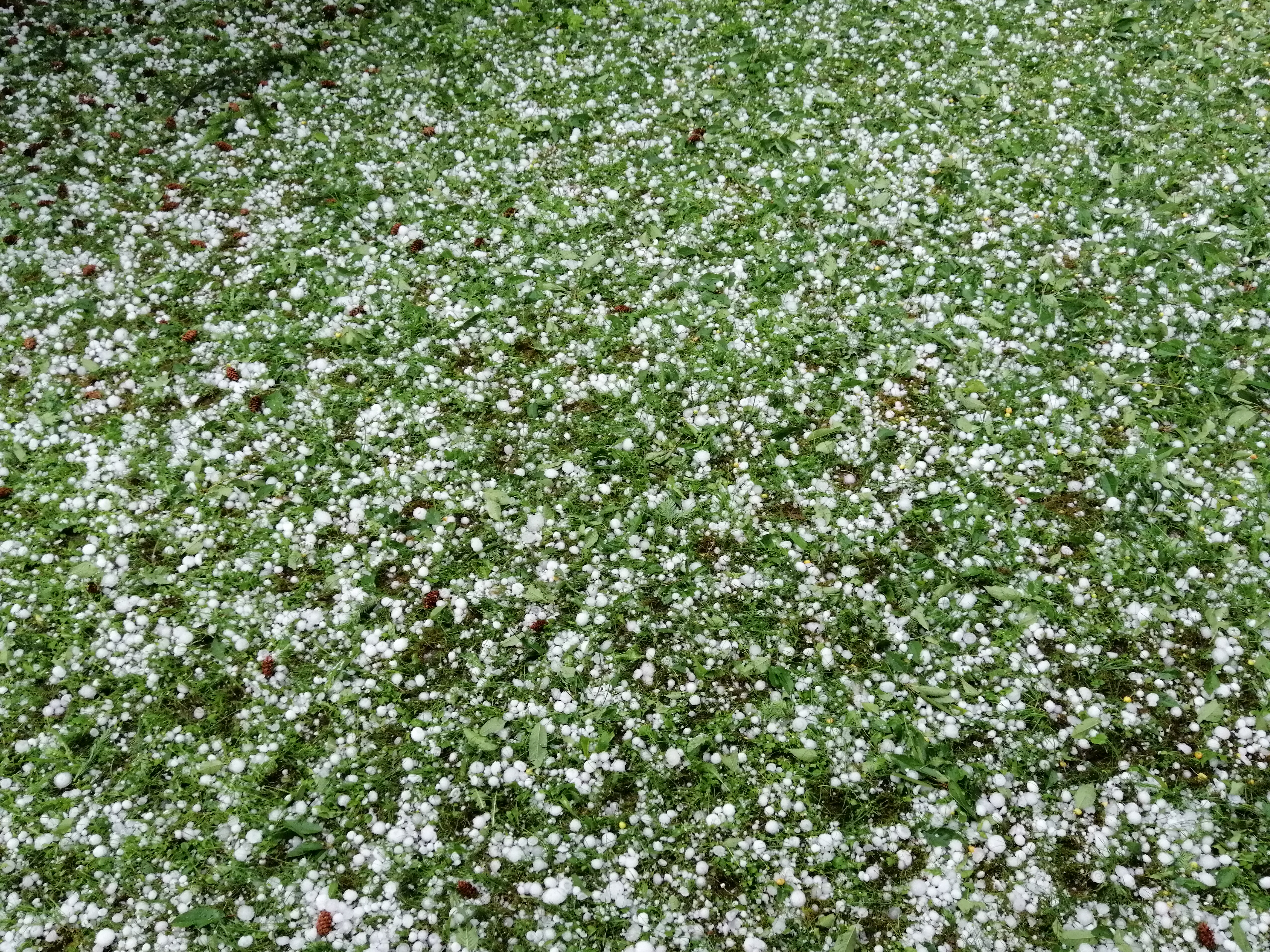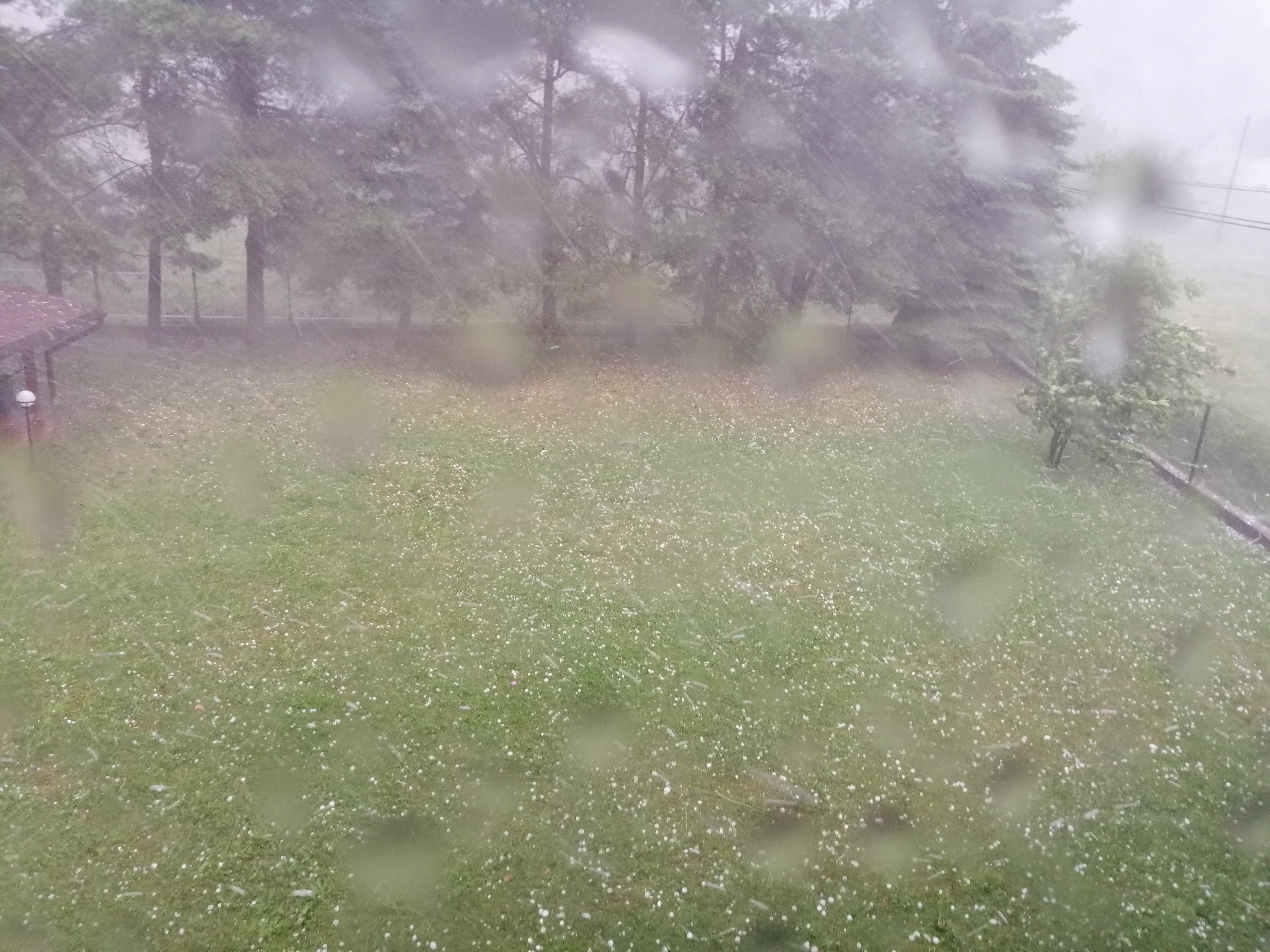 O 17:14 deszcz uspokoił się na tyle, że wyszedłem na zewnątrz. Wysoka trawa na polu obok została jakby skoszona. Słychać było tylko alarmy pobitych samochodów.