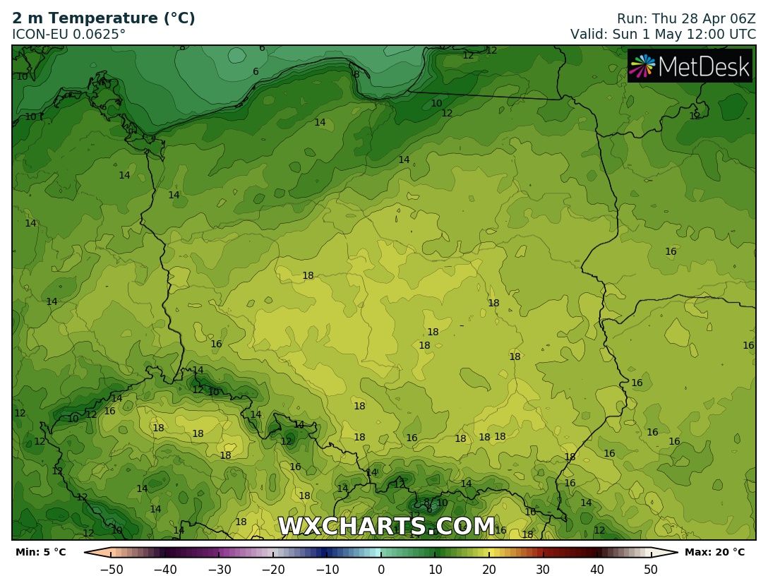 Przepiękna prognoza modelu ICON na niedzielę 1.05 😍🌤️📈