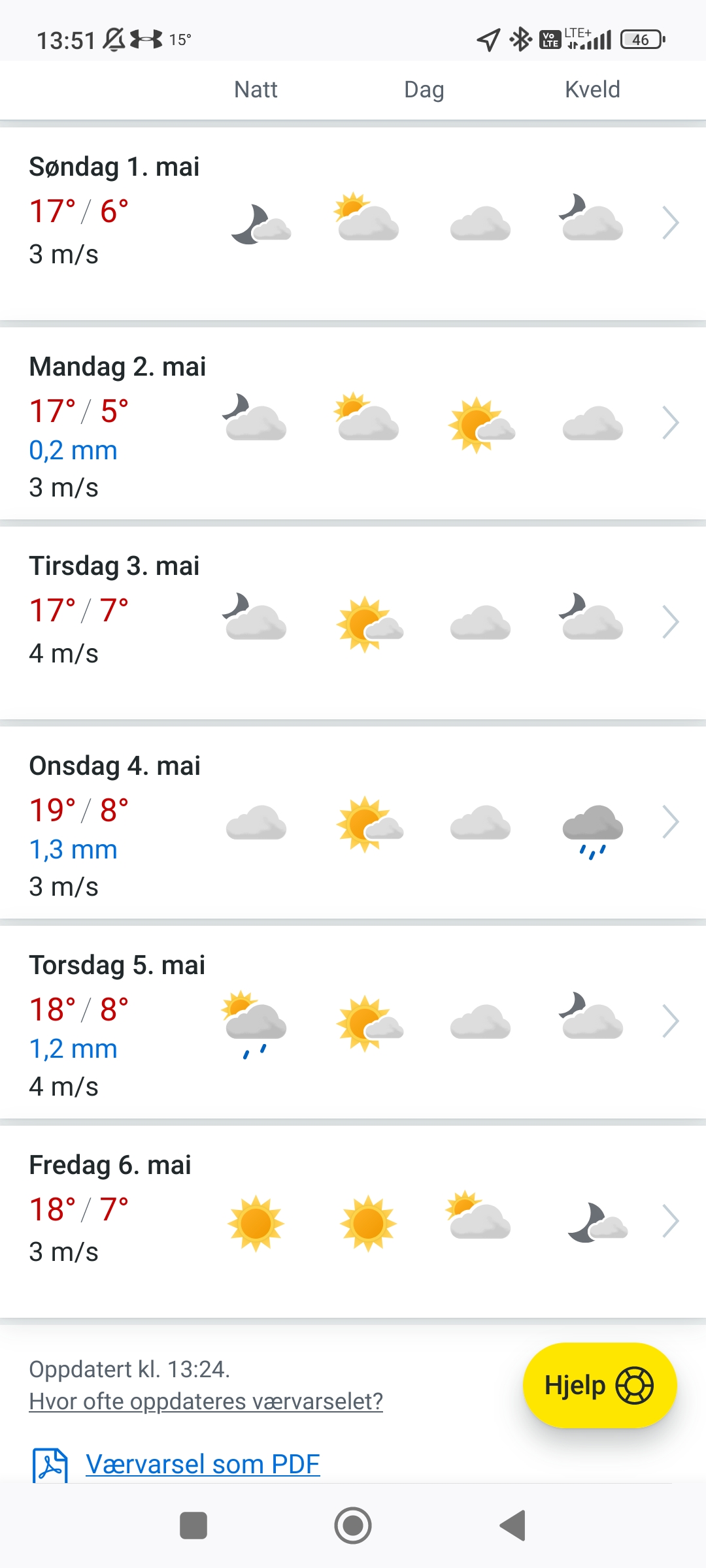 13.05.2022 (piątek): +15 C/+9 C, zachmurzenie umiarkowane