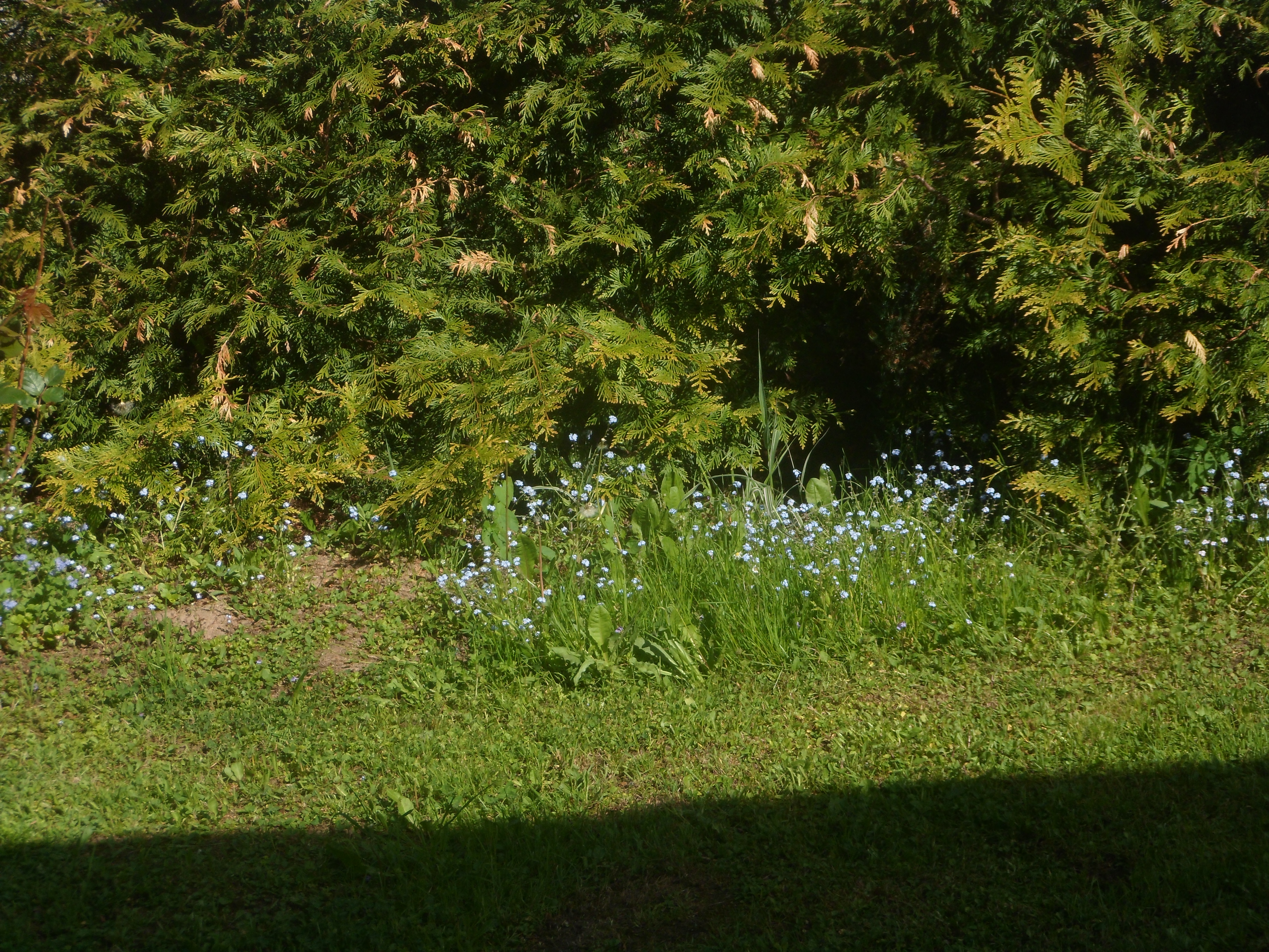 Oto niezapominajki, które "na dziko" wyrosły u mnie na działce pod iglakiem. Chyba zostały one "posiane" przez ptaki, bo wyrosły także na pryzmie kompostowej.