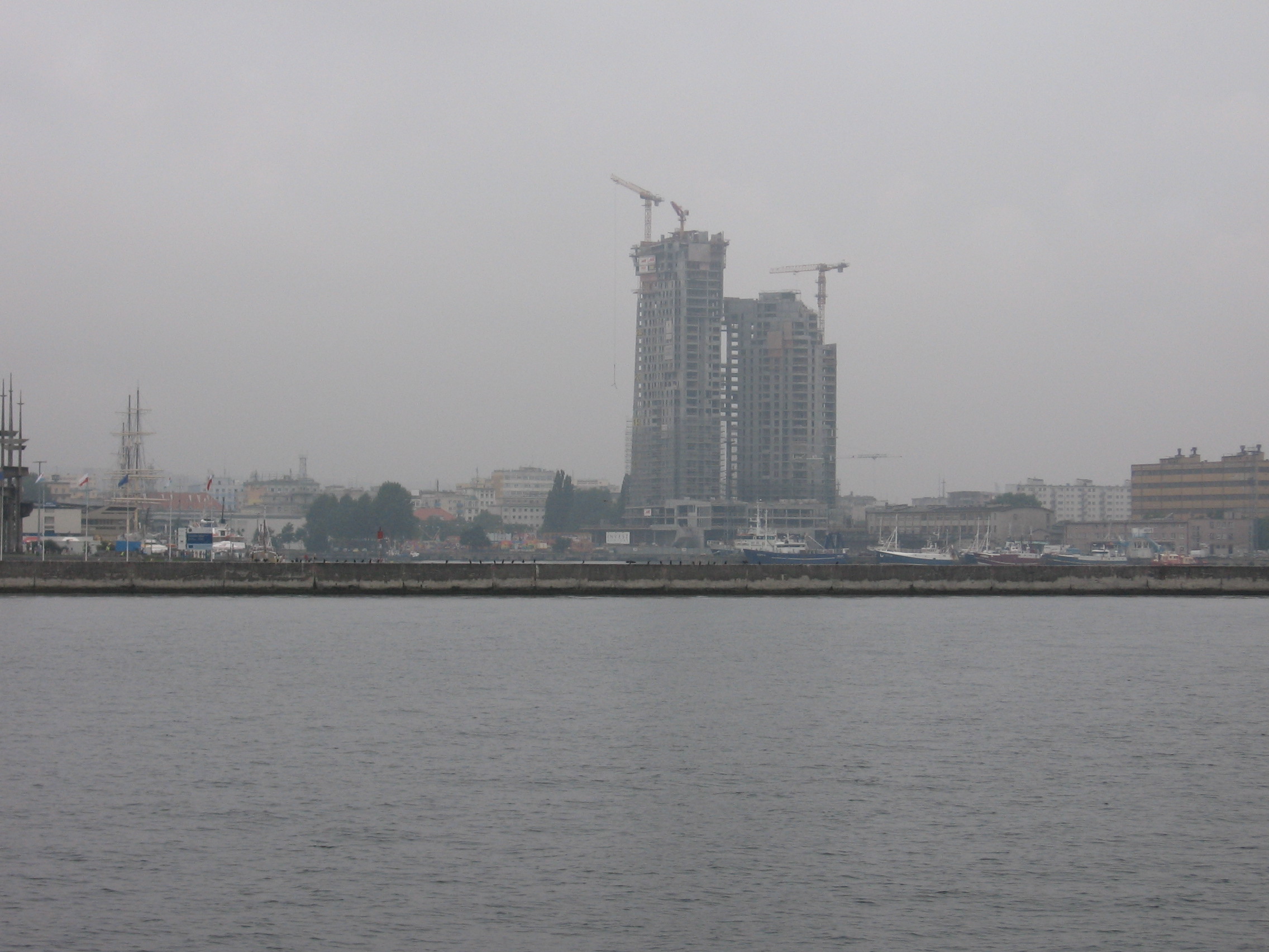 A to widok z morza (statek z Helu do Gdyni 13 sierpnia 2007 roku). Sea Towers jeszcze w budowie.