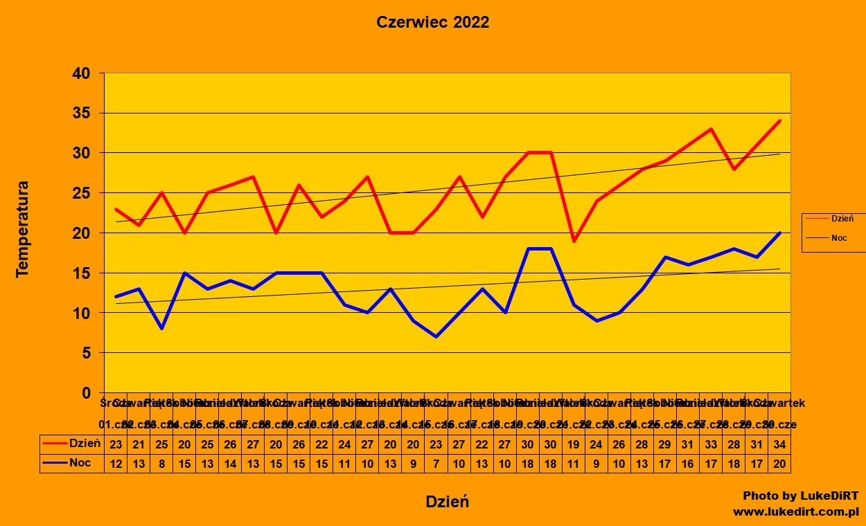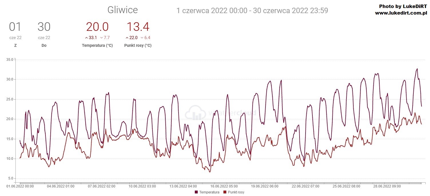 Dla mnie raczej to był jeden z gorszych czerwców, koniec miesiąca też moim zdaniem nie świadczy o nim najlepiej, ale z drugiej strony dobrze się stało, że największy gorąc miał miejsce, gdy rozpoczynały się wakacje ;-) : przed zakończeniem roku szkolnego i rozdaniem świadectw lub przed końcem 1 terminu sesji jestem zdania, że powinna dominować przyjazna pogoda z łagodnymi temp.: 20-25 C w ciągu dnia i 5-10 C nocami. ;-) Wtedy taka gorąca końcówka jak w tym roku byłaby bardzo zasadna, dla podkreślenia kontrastu. ;-) Sobota i niedziela (25.06-26.06.) też jeszcze nie były szczególnie "inwazyjne"- bardziej "niezręcznie" zaczęło się robić od poniedziałku. :-( Mimo że dane oficjalne mogą uważać inaczej, to u mnie każdego dnia temp. urosła do +20 C. ;-) +19.4 C dzieli naprawdę niewiele do zaokrąglenia w górę... ;-)