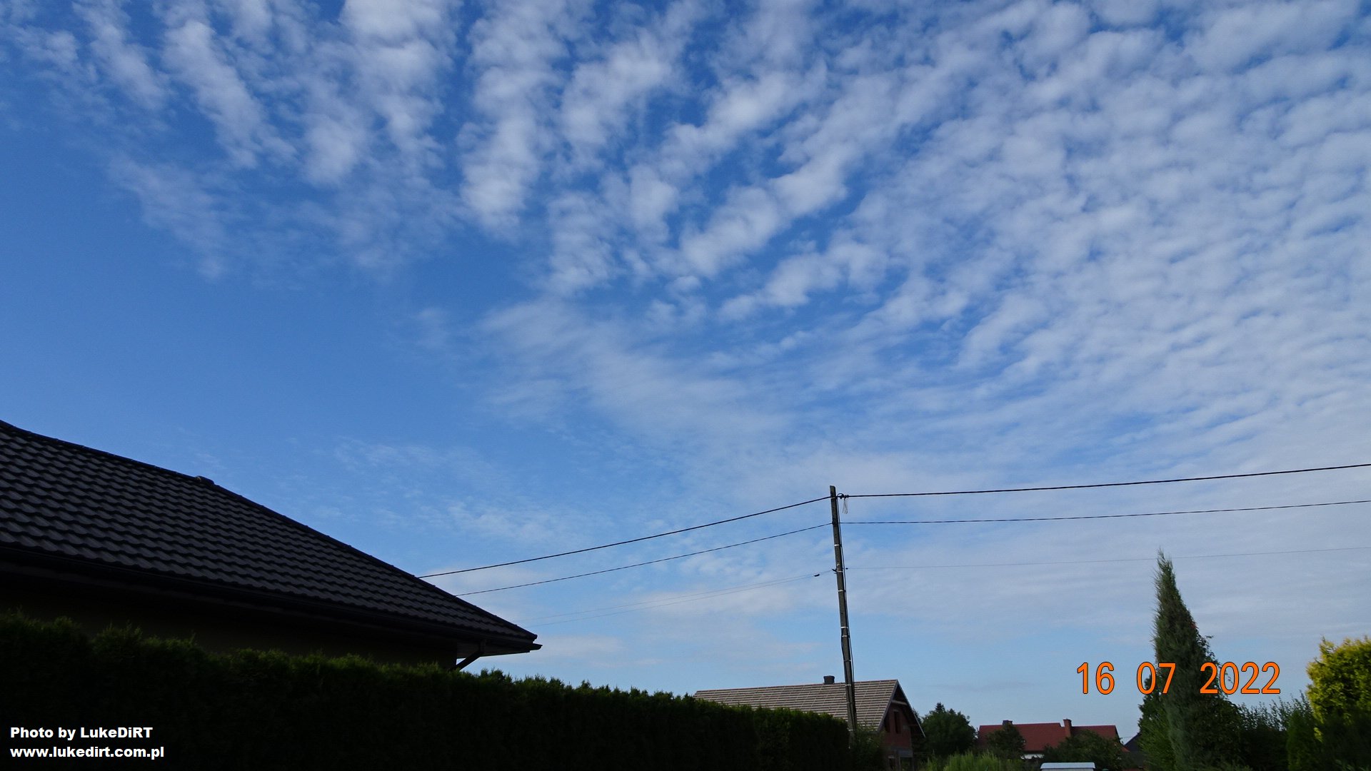 Podobny stan nieba u mnie ma miejsce- dzień który ma potencjał być "ładny", ale za sprawą tych chmur się trochę pogorszy... Chociaż w sumie nie- dzisiaj ma być "brzydki"- skoro możliwe są przelotne opady po południu (przed zachodem słońca).