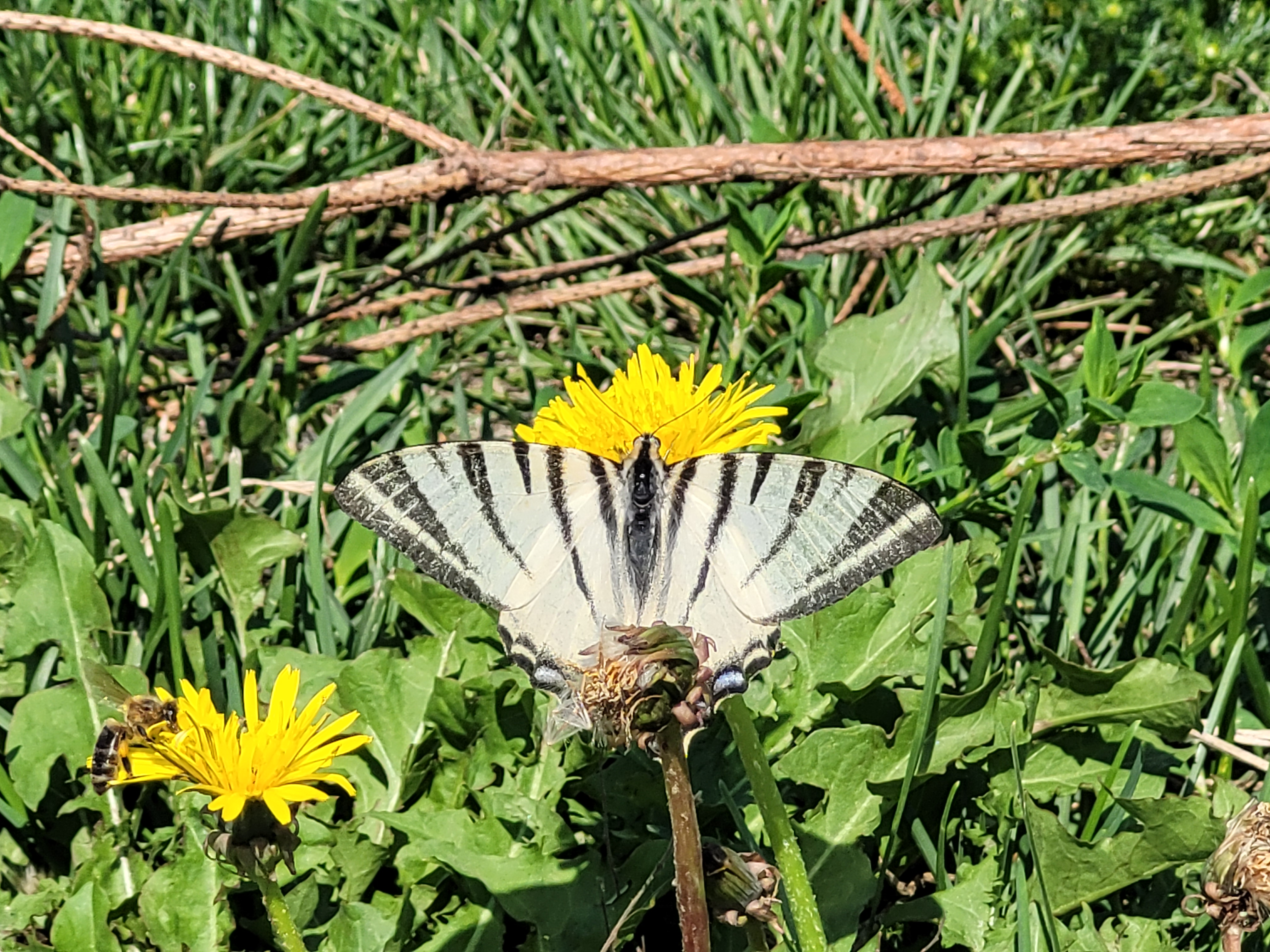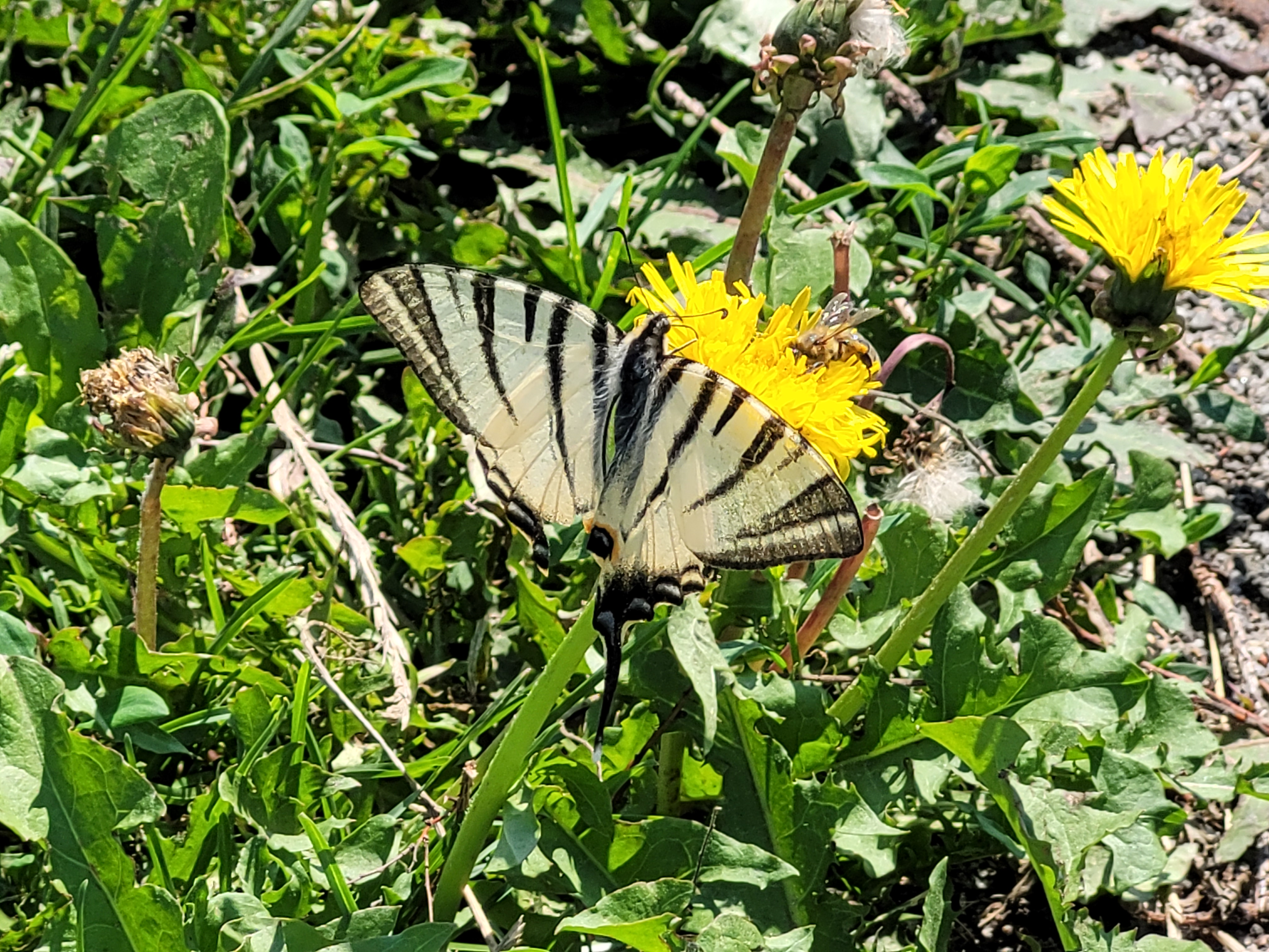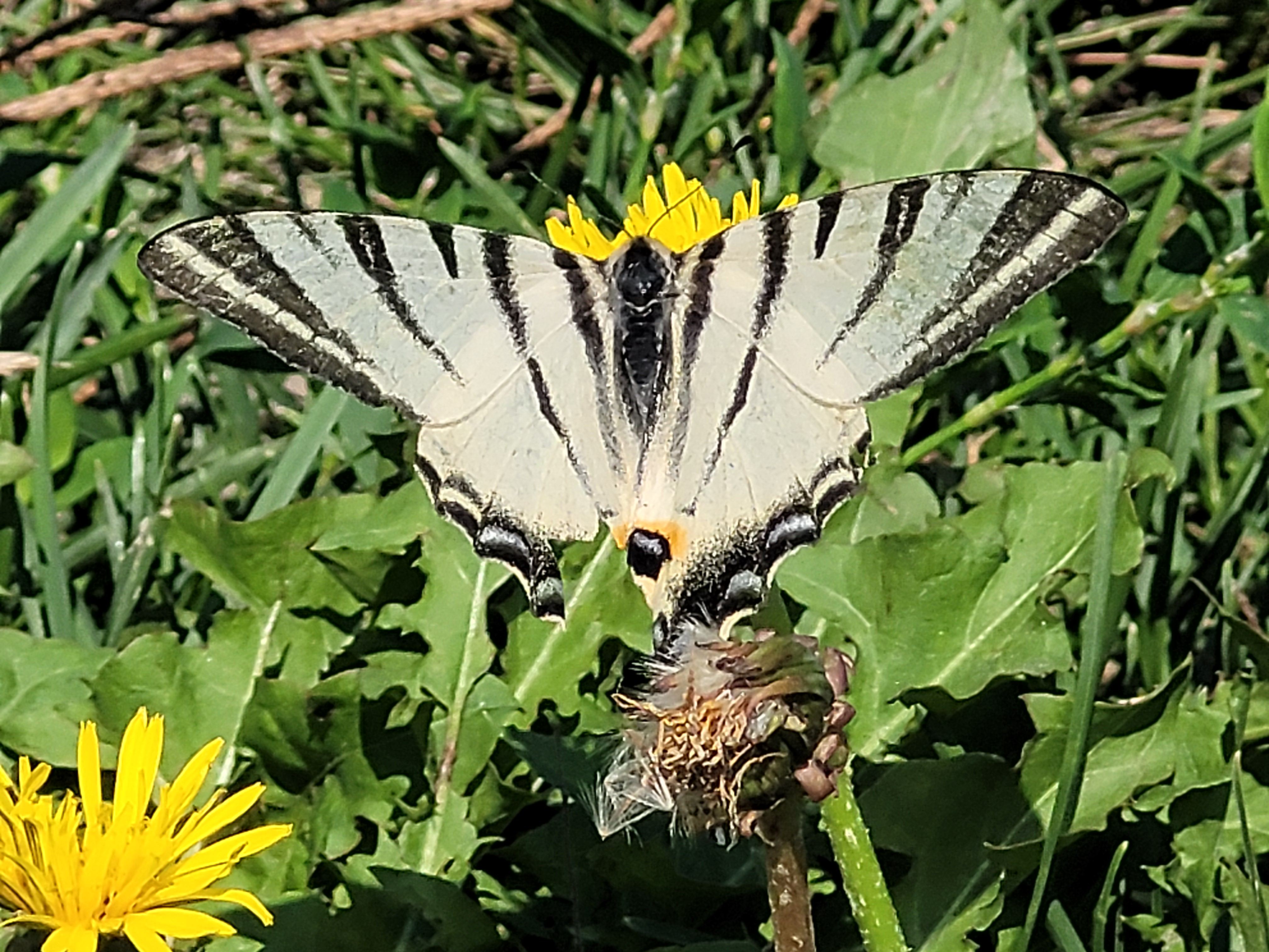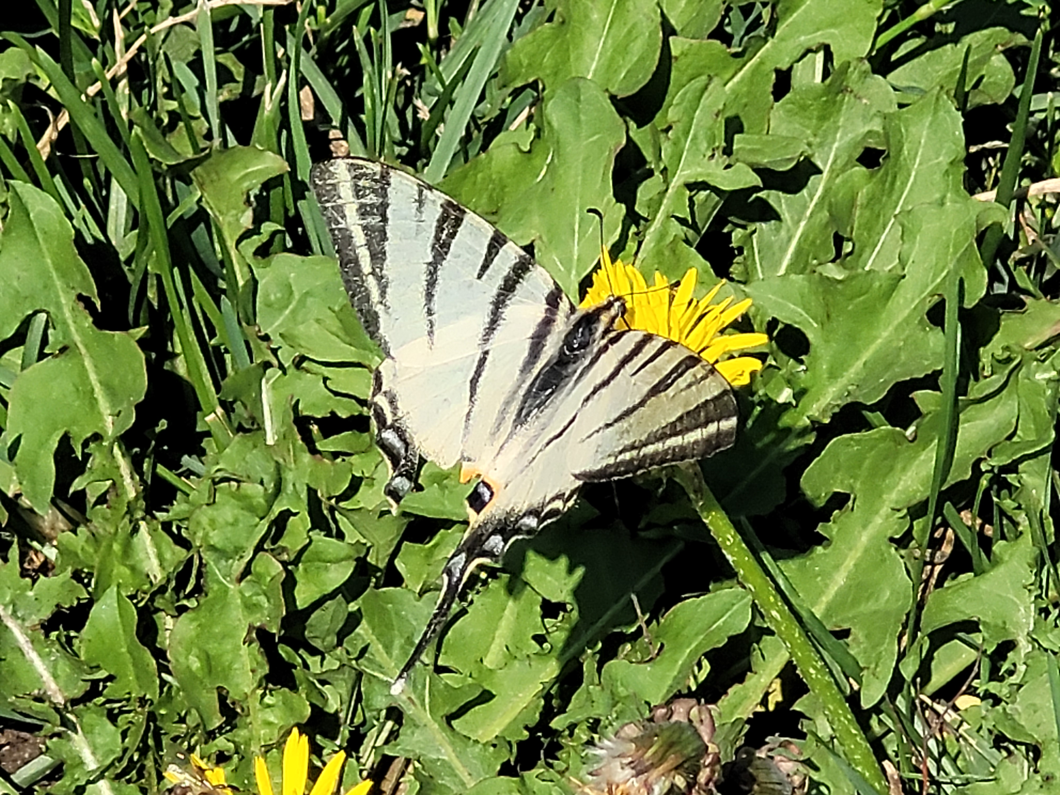 Dziś podczas rowerowej wycieczki miałem szczęście natknąć się na wyjątkowo rzadkiego, podlegającego ochronie pazia żeglarza (Iphiclides podalirius). Do tej pory widziałem przedstawiciela tego gatunku tylko raz w życiu. Tymczasem w ten słoneczny i ciepły dzień podczas przejazdu przez wieś Mystków moją uwagę przykuł lecący dość duży i dziwnie wydłużony motyl. Kiedy znalazłem się bliżej, zauważyłem charakterystyczne wypustki skrzydeł i uznałem, że to musi być właśnie żeglarz :) Zatrzymałem się i przez chwilę śledziłem motyla (prawdopodobnie samicę) aż usiadł na pobliskiej łące. Motyl tak uważnie zajął się spijaniem nektaru, że pozwolił dosyć blisko do siebie podejść.