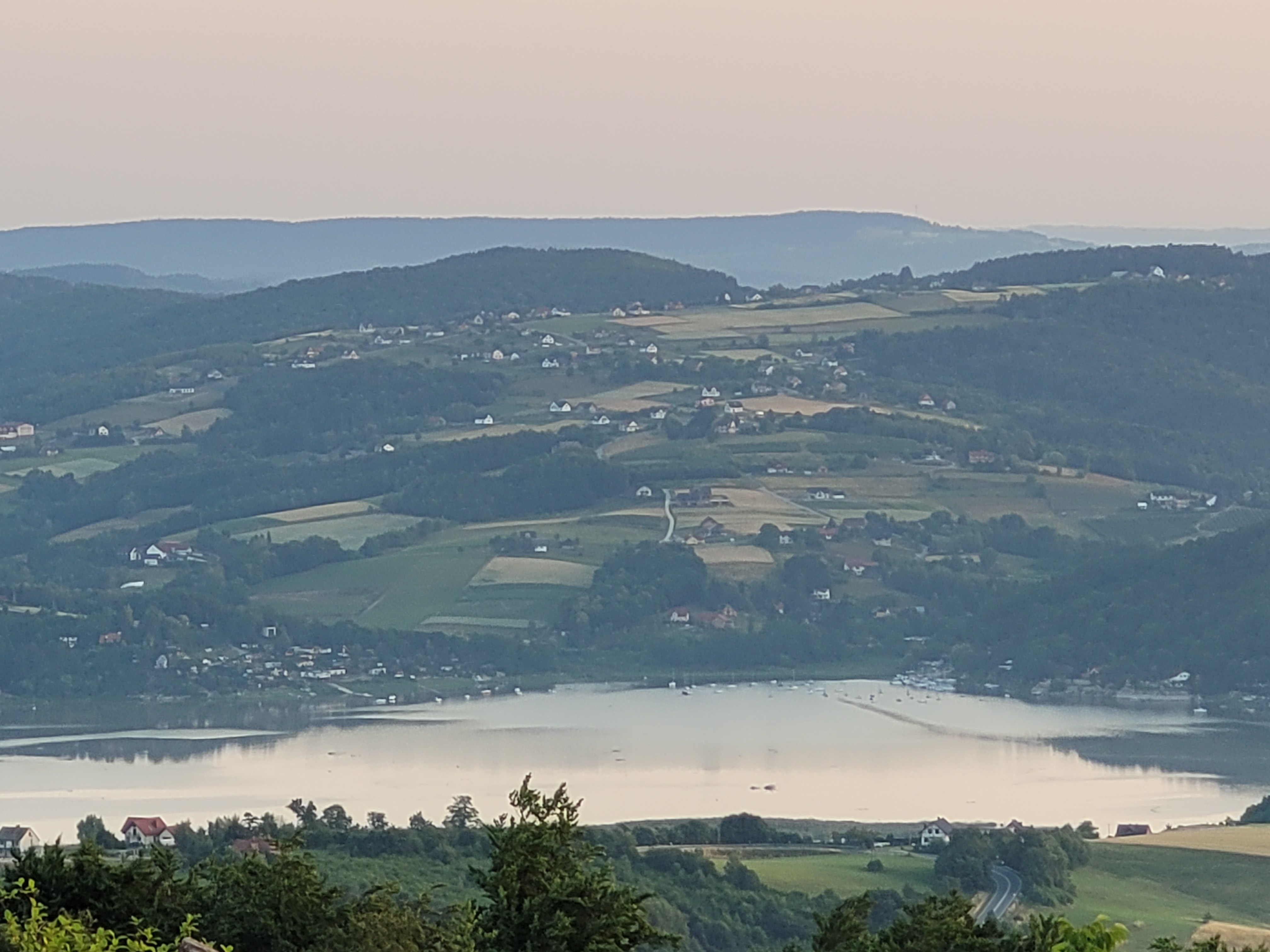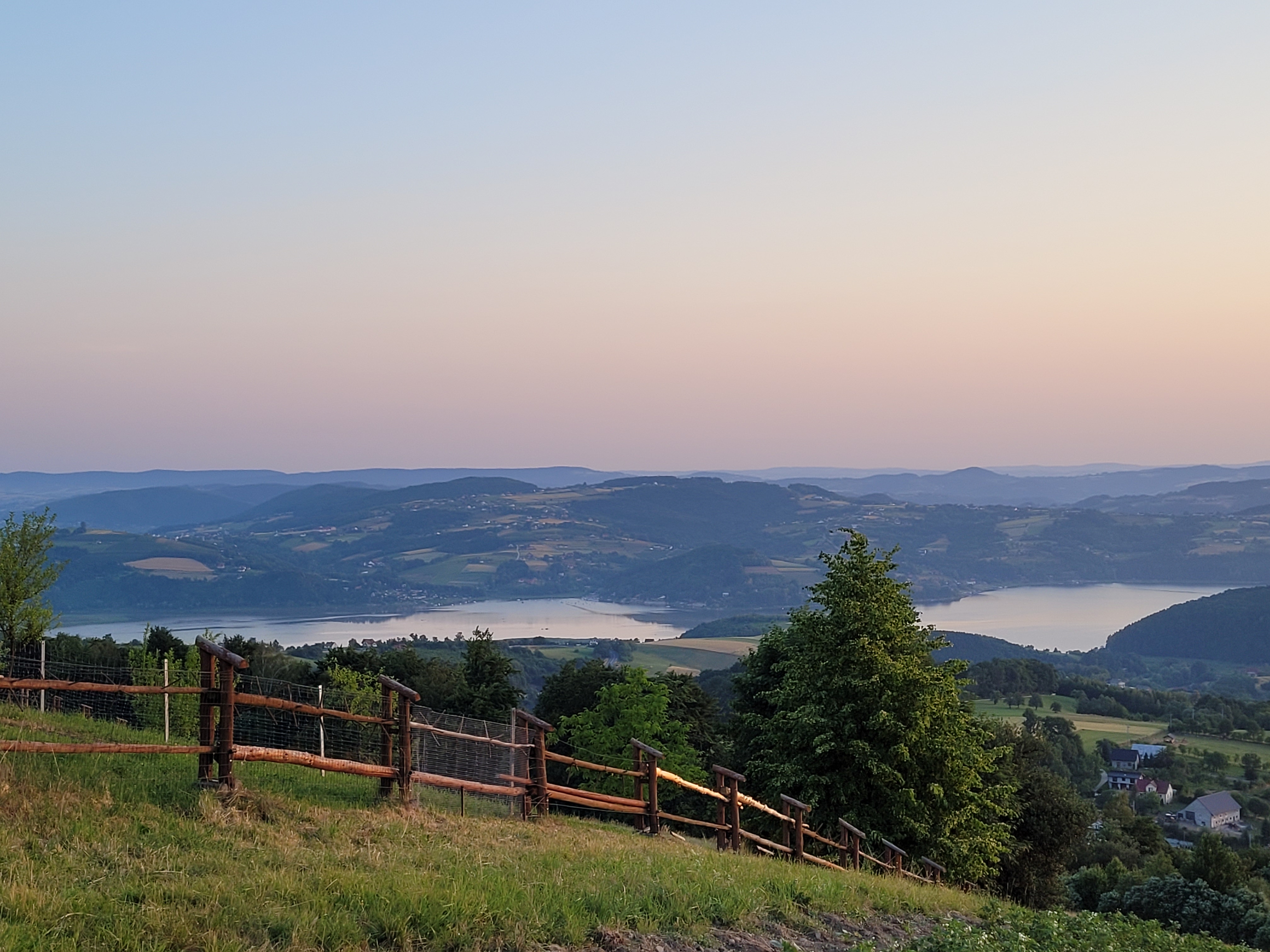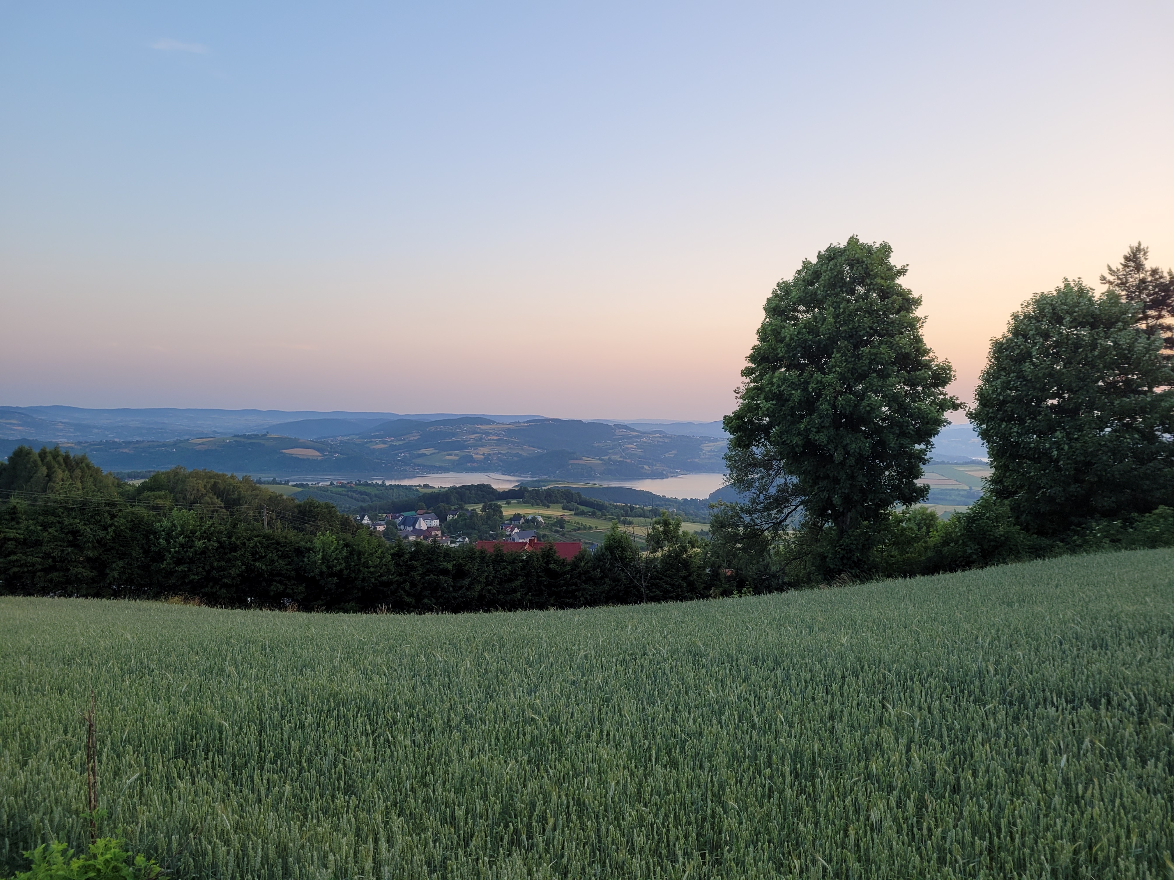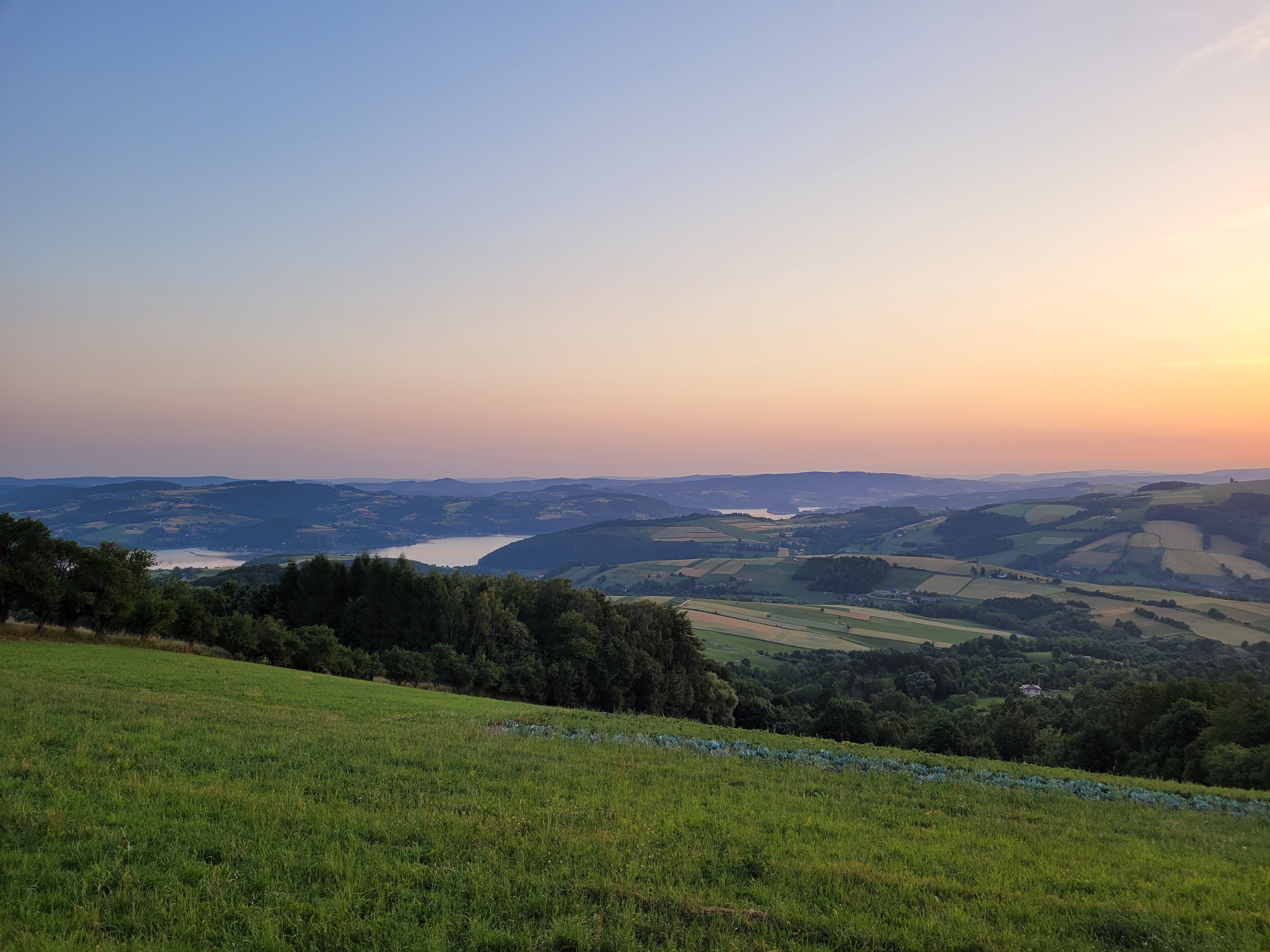Jak widzicie, teren w tym miejscu jest bardzo urozmaicony i z każdej perspektywy można było uchwycić tę porę dnia jakby na inny sposób. Nieopodal pierwszy blask dnia trafiał też na wody Jeziora Rożnowskiego.