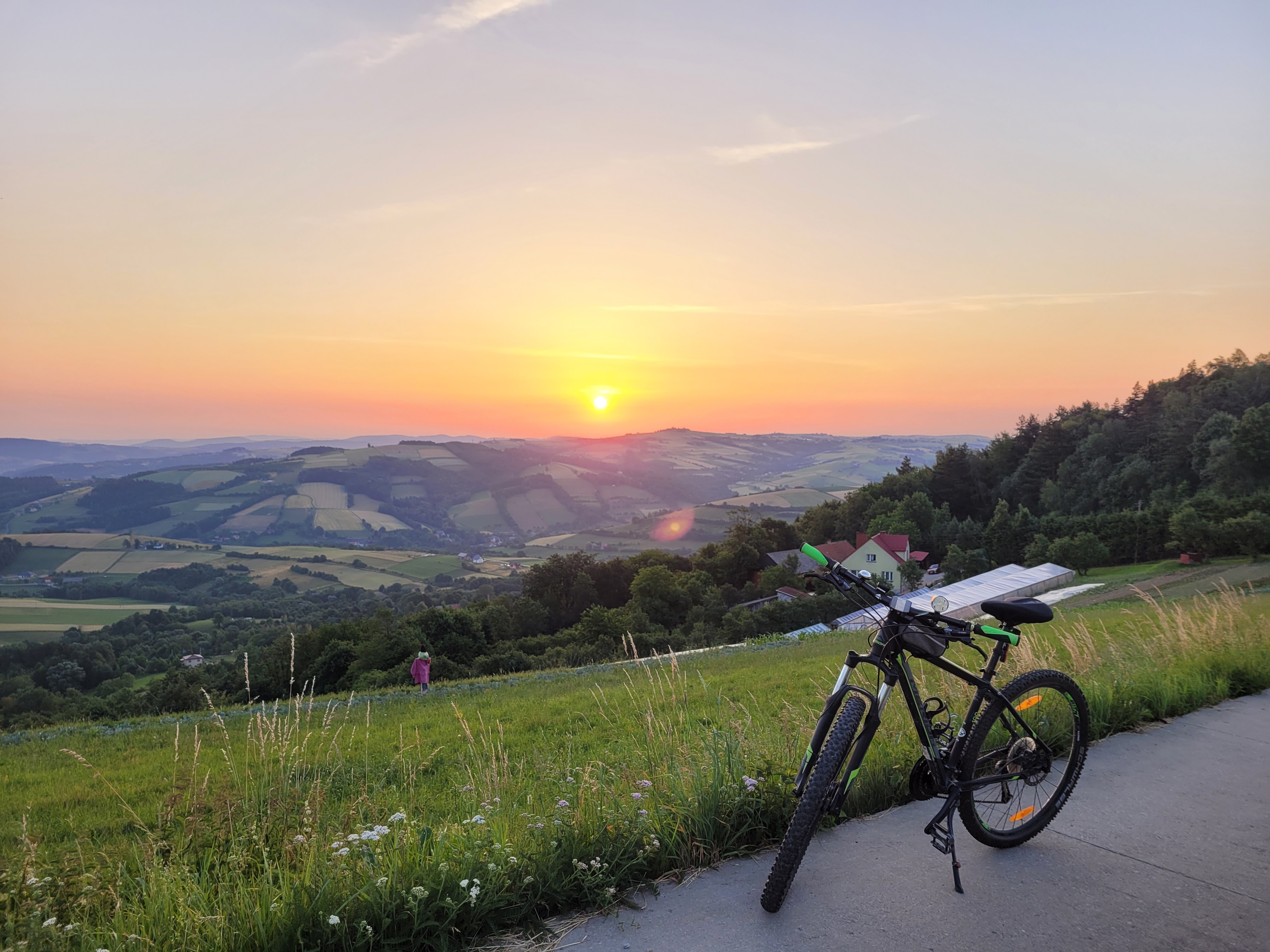 Kiedy w czasie dnia jazda na rowerze jest mocno utrudniona z racji temperatur, należy znaleźć alternatywne pory do takich wycieczek Doskonale nadaje się do tego pora wschodu Słońca, toteż korzystając z tego, że już od jakiegoś czasu miałem zamiar powitania któregoś dnia w terenie, najlepiej w porze najdłuższych dni i najwcześniejszych wschodów Słońca w roku, dziś (1 lipca 2022) już o godzinie 3:30 wyruszyłem na rowerze w kierunku wspaniałej widokowej miejscówki