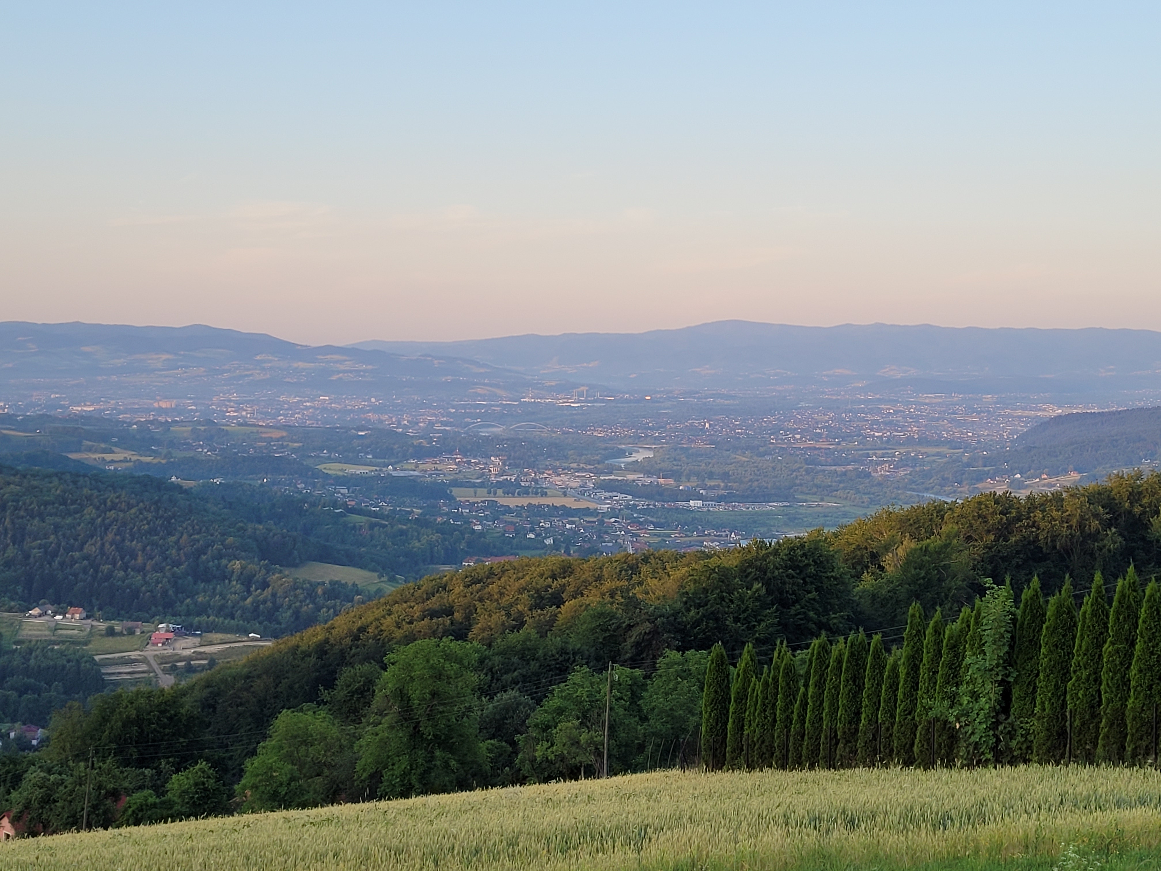Tak z kolei przedstawiał się widok w drugą stronę - na budzący się do życia Nowy Sącz.