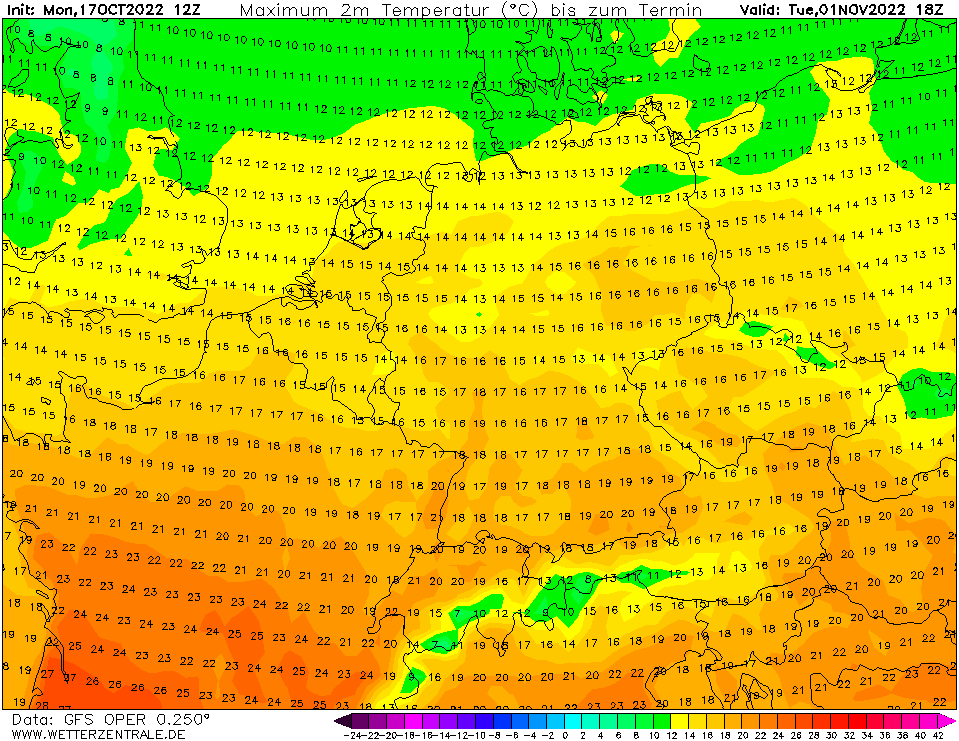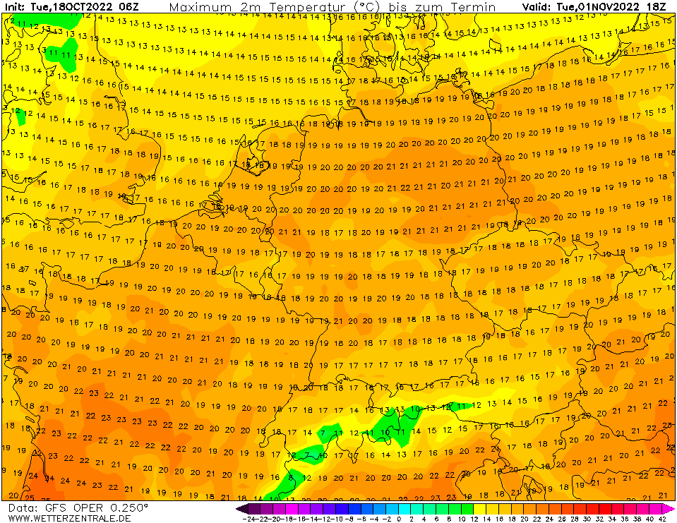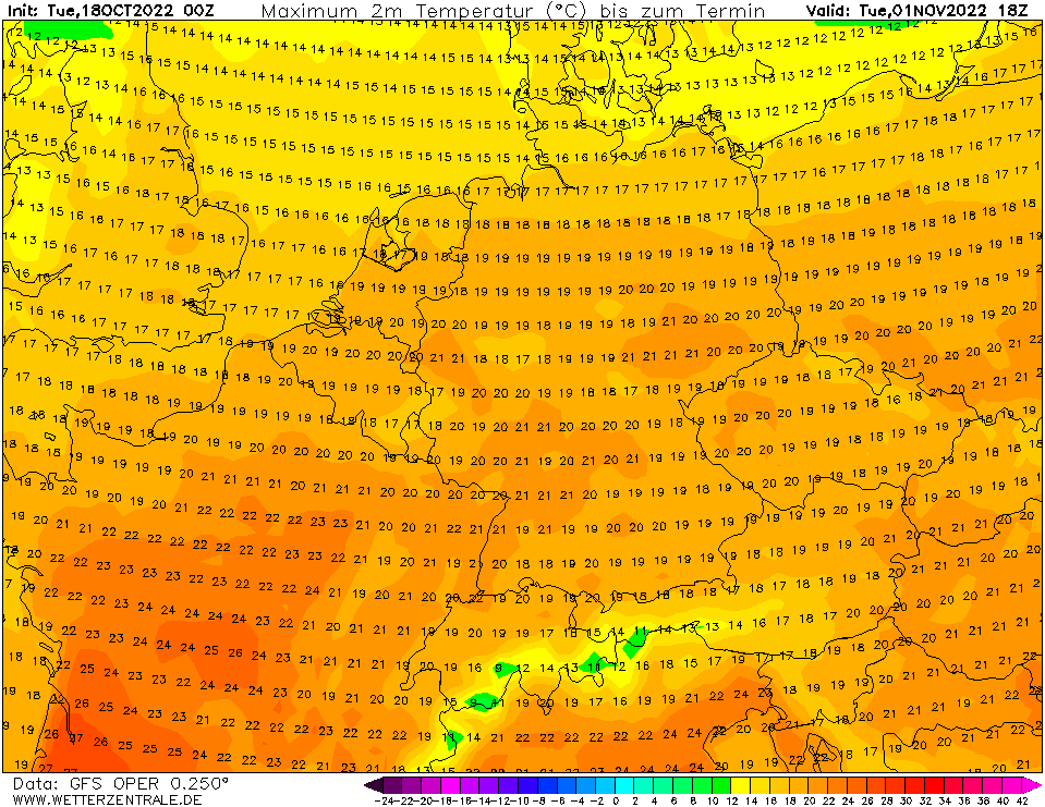 Łagodna i umiarkowanie/względnie ciepła pogoda (jak na obecny okres) będzie raczej miała się dobrze przez najbliższe 2 tygodnie, ale dzisiejsze rozdania modelu GFS z północy i z ranka zaczynają przesadzać trochę z temp. na początku listopada (chociaż w sumie "listopad właściwy" zaczyna się zwykle gdzieś od Święta Niepodległości)... :-? Wersje z południa czy z wieczoru wczorajszego dnia to już inna sprawa- te są w porządku. ;-) Mam nadzieję, że od listopada w takich "płomiennych" propozycjach będą ujawniać się chmury stratus w ciągu dnia, które o kilka C zaniżą temp. (wtedy się bez wątpienia ich obecność przyda). ;-) Wartości pod "dwudziestkę" na termometrze nie musi być, wystarczy po 10-15 C w najcieplejszym momencie dnia. ;-) W porze chłodnej jednak wolę trwałe umiarkowane ciepło (alternatywnie ciągły umiarkowany chłód) niż skoki od "gorąca" do zimnic. ;-)