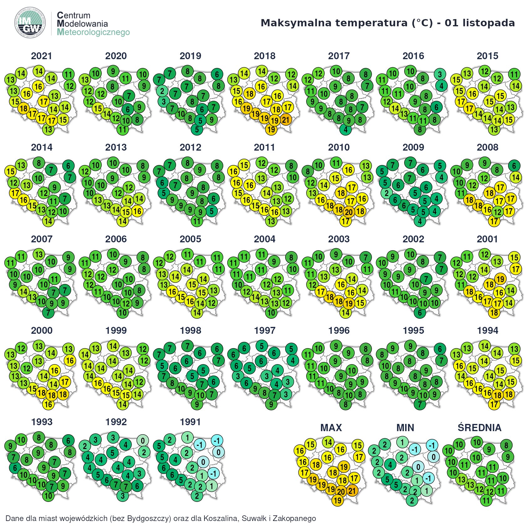 Jak widać, tegoroczny dzień Wszystkich Świętych niczym się nie wyróżnił, a prognozy mówiące o 18-19 stopniach można było włożyć między bajki. Nie wspominając o tym, że jeszcze w sobotę zapowiadane było 20 stopni, zaś tydzień temu prognozy widziały coś takiego