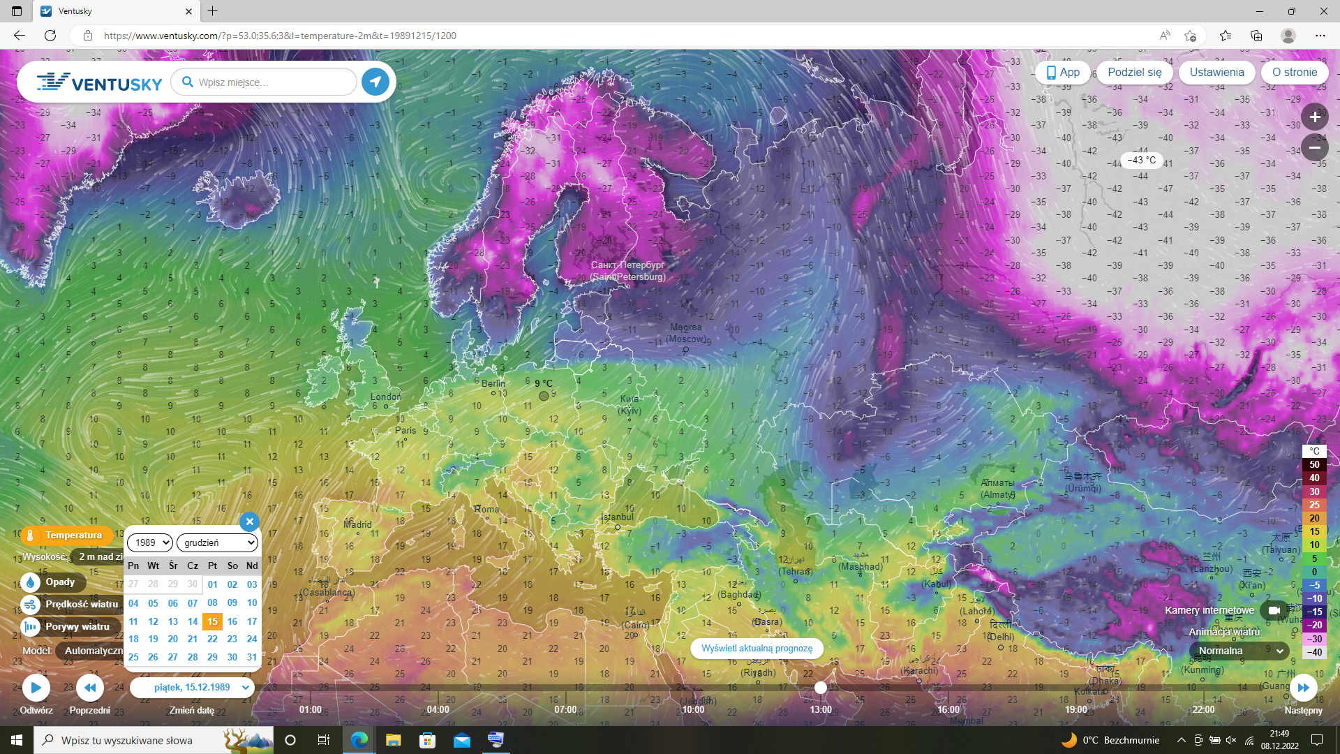 Połowa grudnia 1989, jak widać mimo rozpędzającej się strefówki w Skandynawii zdołał się utrzymać całkiem pokaźny zagon chłodu. W dniu 15 grudnia 1989 mróz ten przejściowo napłynął nad nasz kraj, oszczędzając jedynie południowe regiony. W następnych dniach Atlantyk przypieczętował swoje zwycięstwo, całkowicie wyganiając mróz z kontynentu europejskiego :)