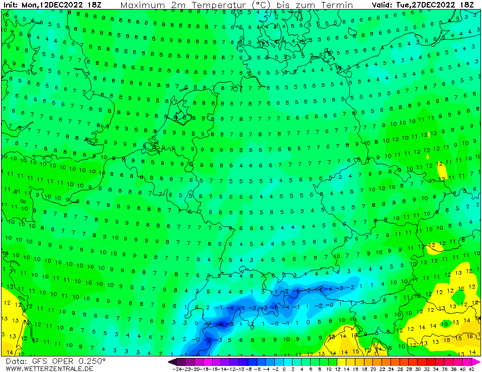 Może się skończy tak, że przed Świętami pojawi się odwilż, ale jej specyfika będzie polegać na tym, że w ramach jej przebiegu pokrywa jeszcze bardziej urośnie od intensywnych opadów śniegu albo spadnie deszcz marznący, który skutecznie powinien utrudnić topnienie. ;-) W każdym razie akurat trzymam bardzo kciuki za ten scenariusz, by po 20 grudnia temp. nie przekraczała 0 C (zwłaszcza zbytnio- akurat wtedy im więcej na plus, tym gorzej). :-( W zamian jednak wolałbym by opady zimowe ustały... :-(