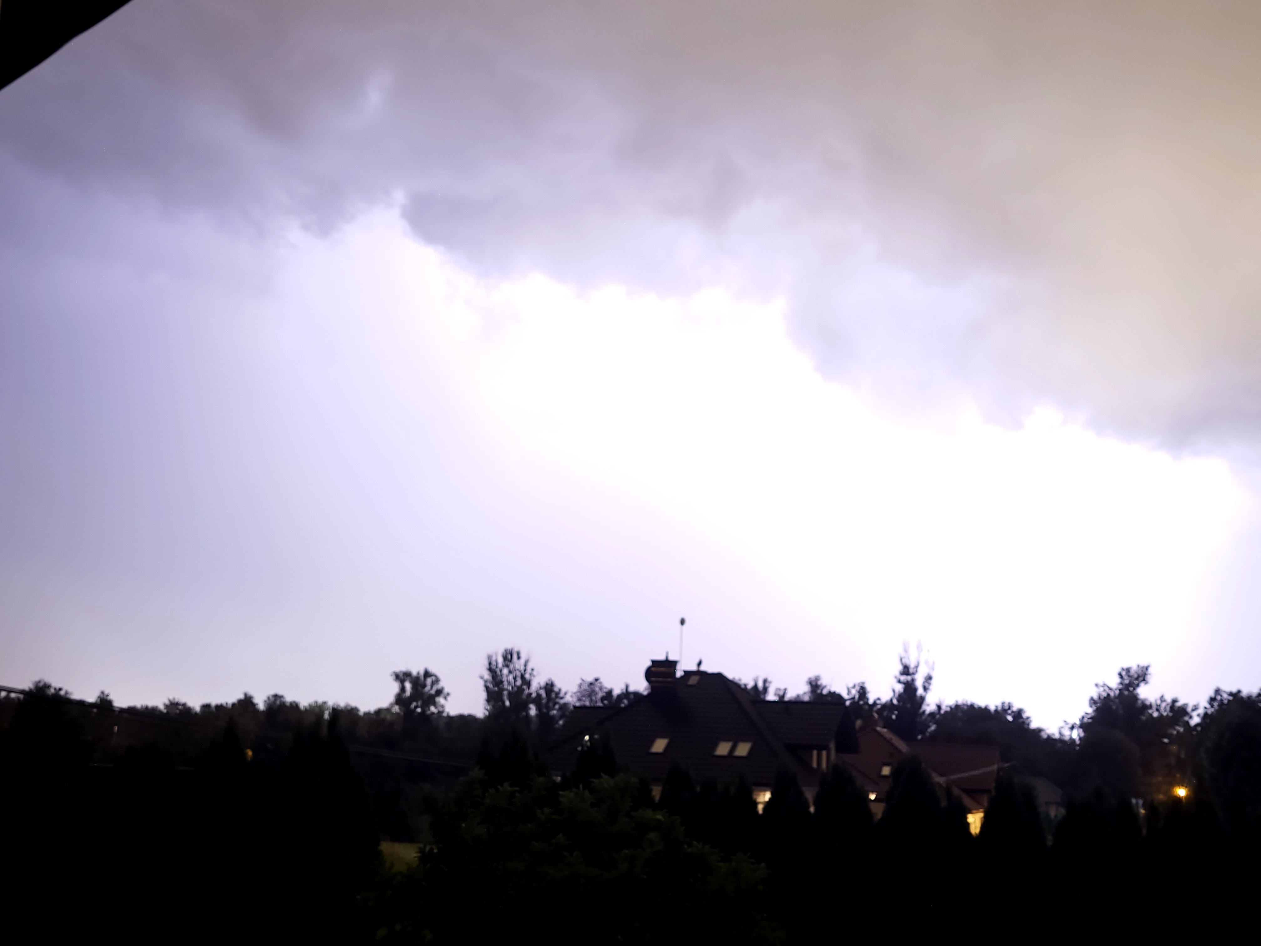 Choć już o 20:00 siła burzy była wyczuwalna, to o 20:40 zerwał się silny wiatr połączony z ulewą wręcz wpychającą mnie do środka, kiedy na chwilę otworzyłem okno.