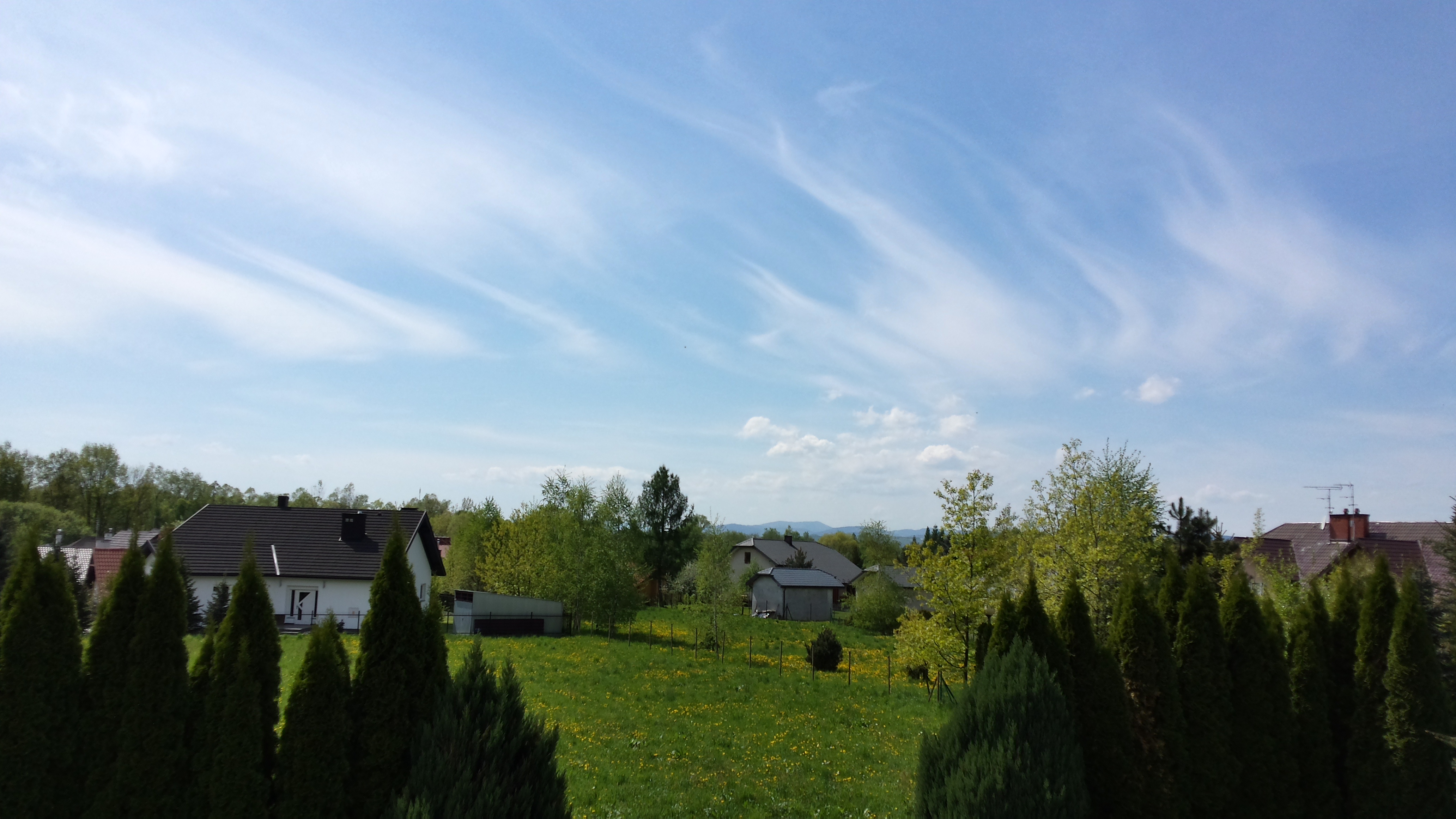 Dla mnie ten miesiąc był naprawdę dobry. Pierwsze dwie dekady były do bólu przeciętne, ale to nie znaczy że złe. Majówka taka sobie (2 maja beznadziejny, za to Święto Konstytucji bardzo ładne), co widać na poniższych zdjęciach, a później aż do 18 maja dominacja typowo majowych temperatur 18-23 stopnie (tylko dwa razy było chłodniej). Padało owszem – często, ale niewiele i krótko. Usłonecznienie było wyrabiane sprawiedliwie, codziennie było trochę słońca, a 8, 12 i 16 maja pełna lampa przy termicznej wiośnie, coś co bardzo lubię Przymrozków nie było, a 19 i 20 maja mieliśmy króciutki gorący epizod, który w drugiej połowie przyjmuję już chętnie (aby bez przesady ). 20 maja doświadczyłem najładniejszej w 2015 roku burzy, którą opisałem tu: http://www.lukedirt.com.pl/viewtopic.php?t=476