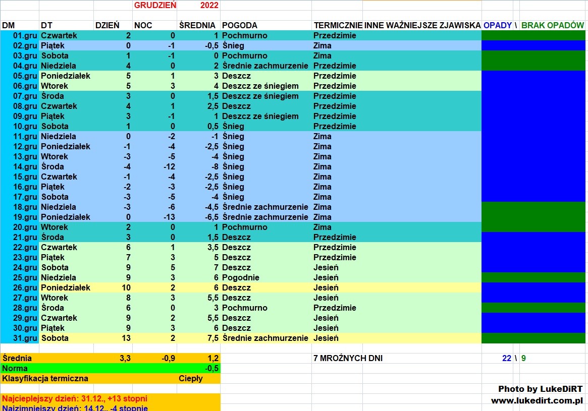 U mnie grudzień wyszedł poniżej normy nawet normy 1960-1990. Średnia grudnia to -1,415*C.