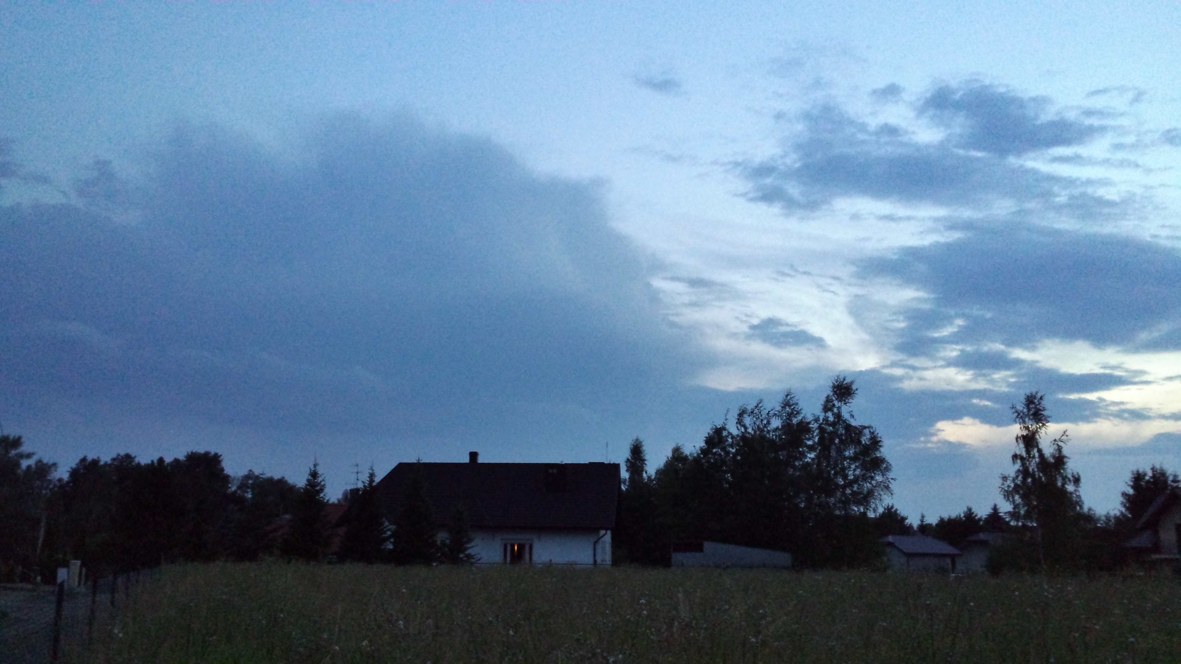Nie mogłem zrobić sobie dobrych ustawień aparatu i nie mam zdjęcia jak na tle jeszcze nie całkiem czarnego nieba wierzchołek cumulonimbusa wręcz promieniował wyładowaniami. Dało się usłyszeć pierwsze grzmoty. Wyszedłem na balkon i w wręcz idyllicznej atmosferze podziwiałem przepiękne błyskawice strzelające niczym noworoczne fajerwerki w akompaniamencie świerszczy.