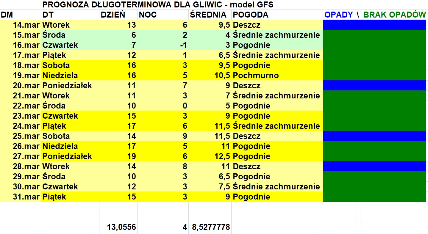 Obawiam się, że trochę za dobrze to wygląda i na obwieszczanie sukcesu polegającego na notowaniu regularnych wysokich temp. jest jeszcze trochę za wcześnie- przeczuwam, że jeszcze pojawią się z 2-3 krótkotrwałe ochłodzenia w tym miesiącu na granicy wystąpienia deszczu ze śniegiem lub śniegu. Od samego początku kwietnia jednak wierzę, że temp. będą równie ustabilizowane i podobnie wysokie- nie wiem tylko czy nie odbije się to niedoborem opadów i wietrzną pogodą (podobnie jak 4 l. temu), ale w sumie w tym miesiącu (a właściwie to głównie w jego pierwszej połowie) wolę tydzień czy nawet 2 tygodnie suchej jak pieprz aury niż genueńczyka przy zupełnie niewiosennych temp.