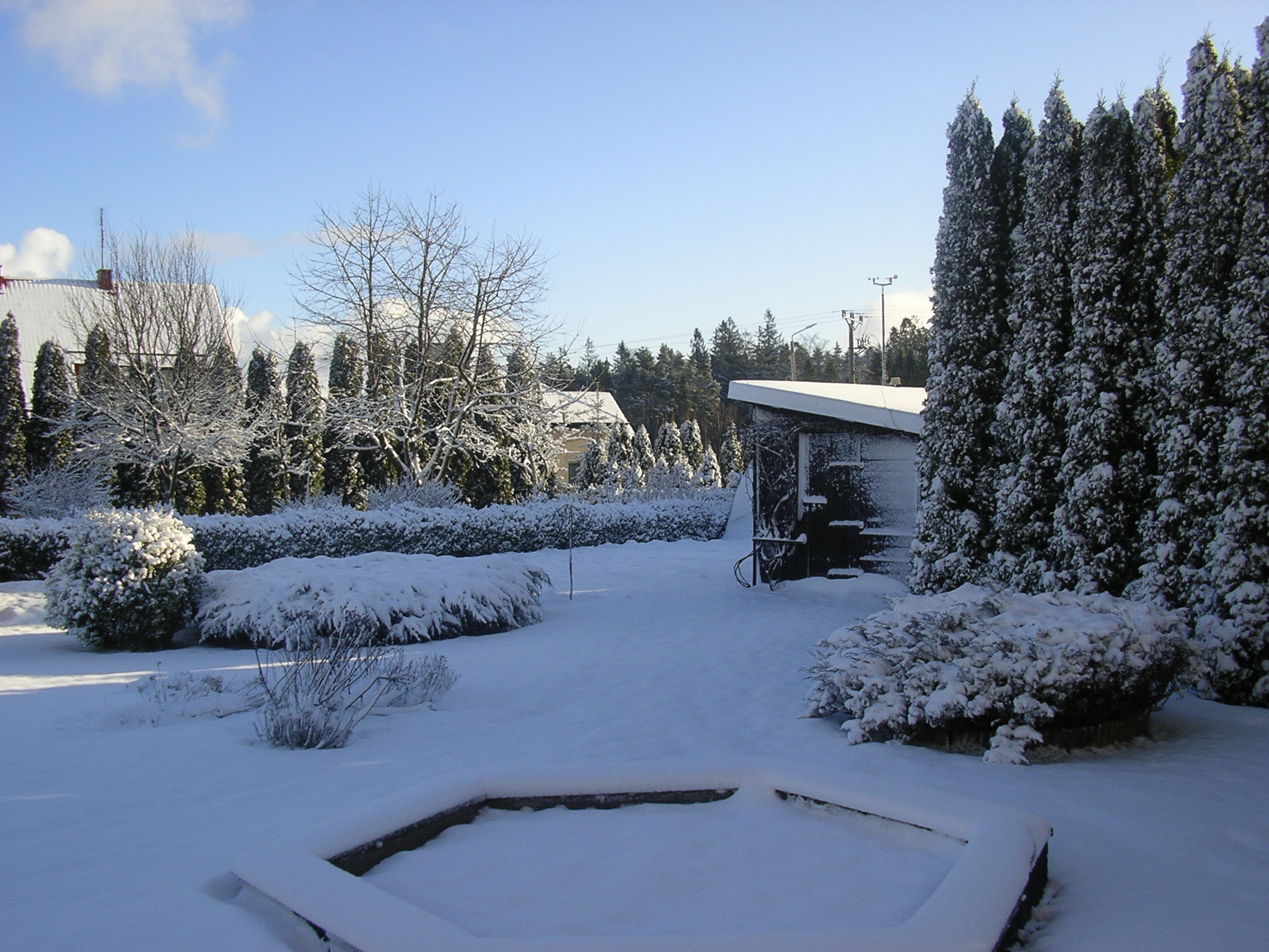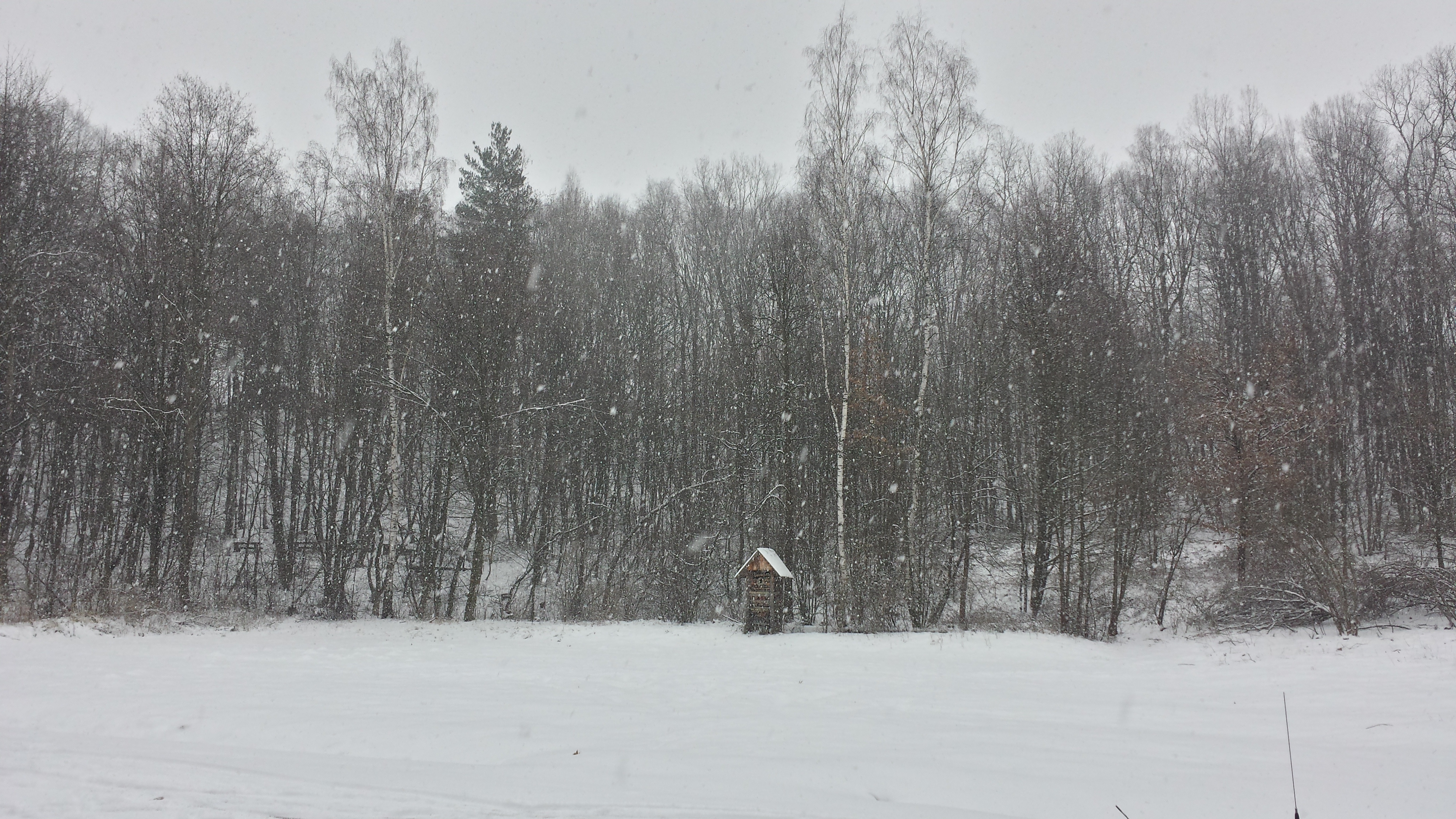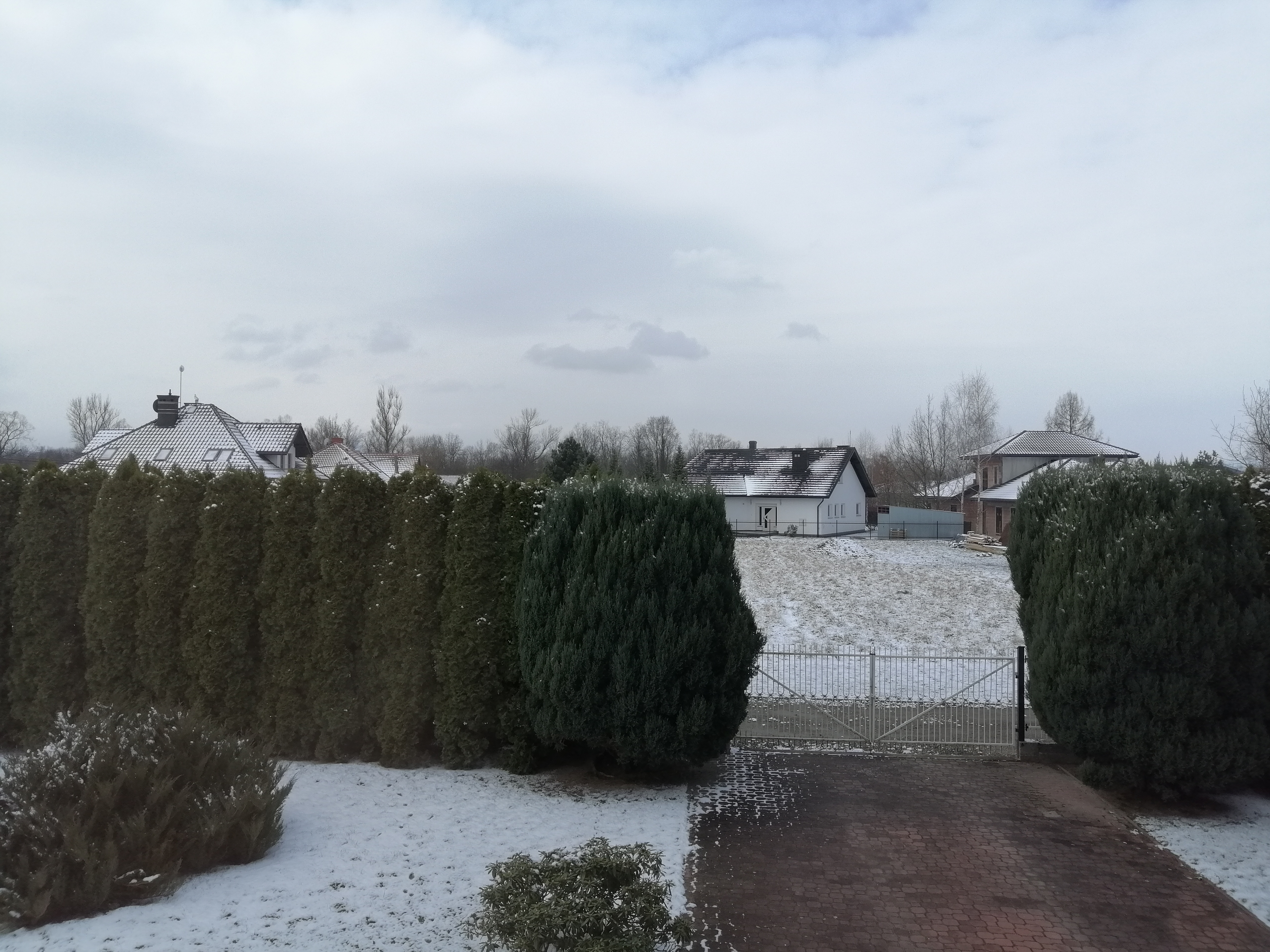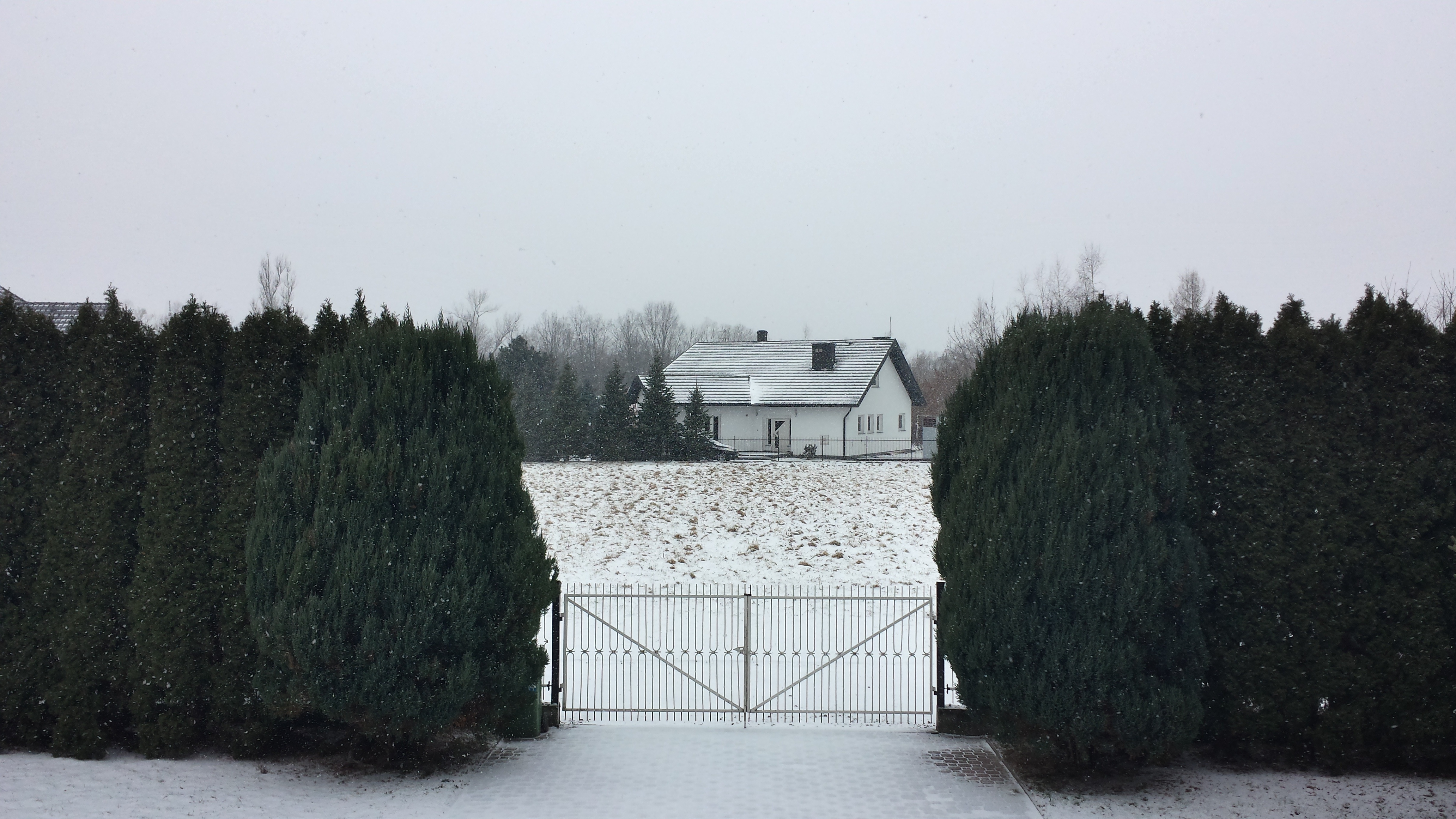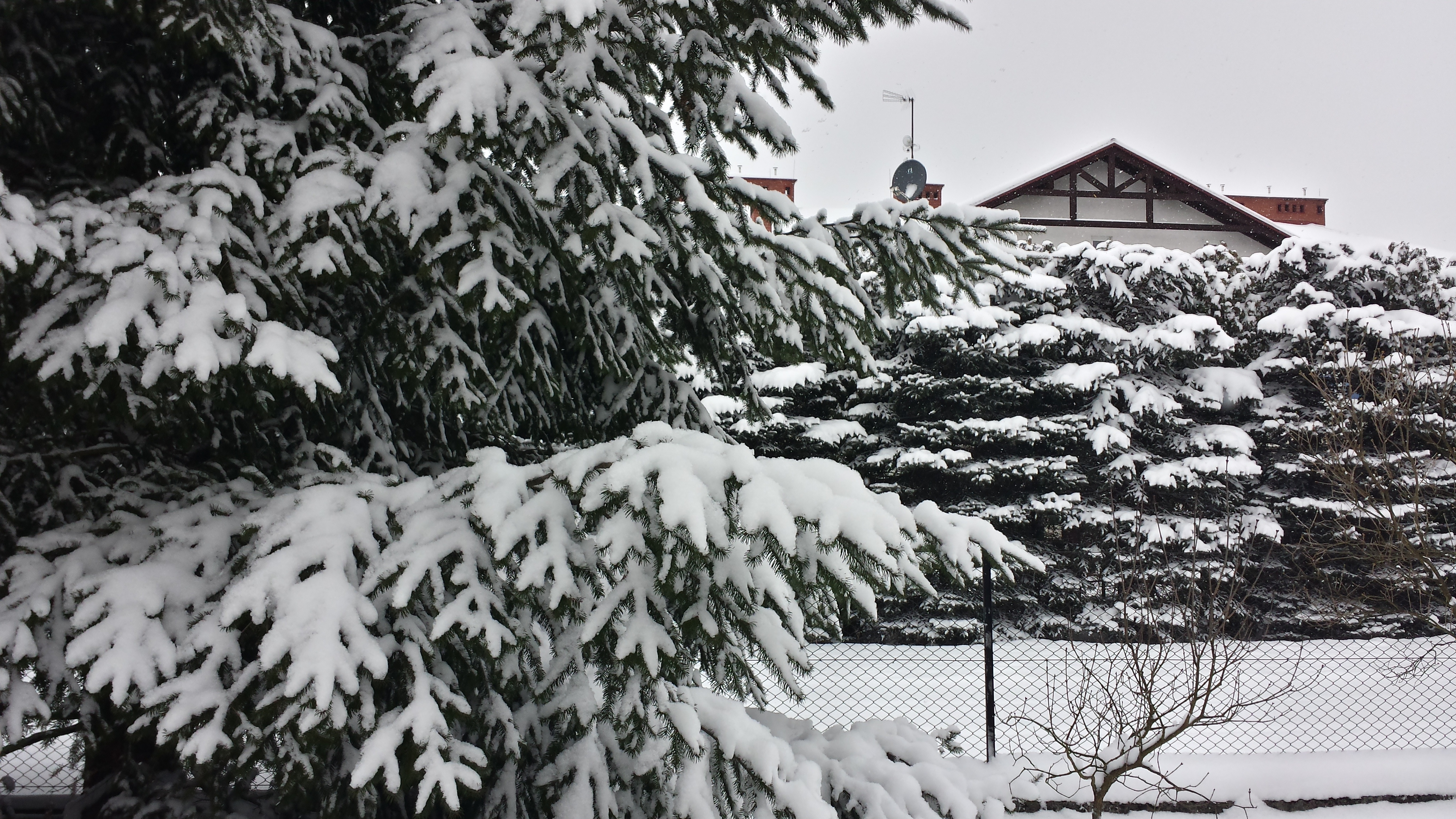Niedziela zaczęła się jednak identycznie jak sobota, jedynie w zleżonej trawie przebijało się trochę bieli. Sytuacja zaczęła się zmieniać nagle około 10 rano, gdy padający śnieg wzmógł się. O tej porze zrobiłem poniższe zdjęcie:
