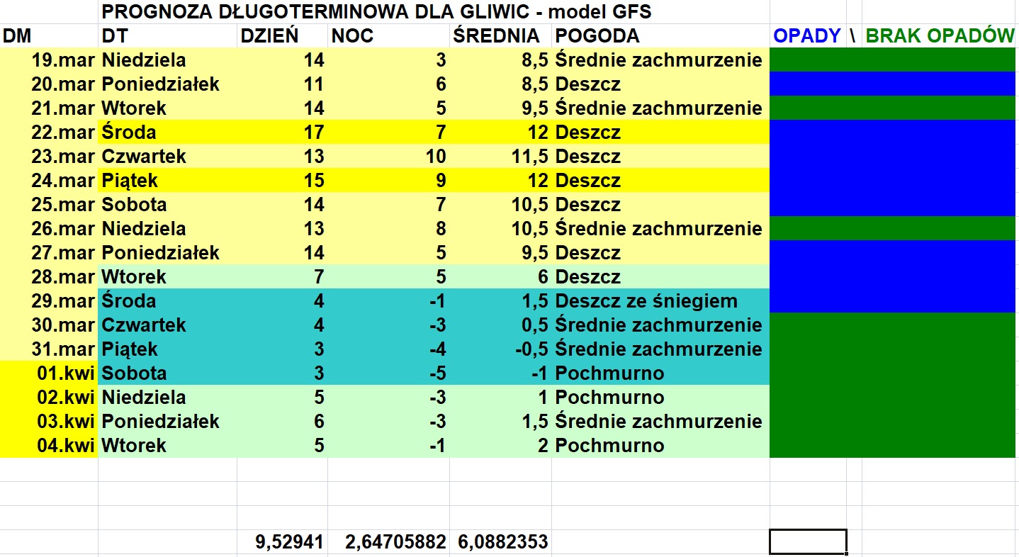 Najważniejsze, że wróciły chmury i opady w dużych ilościach do prognoz. Co do ewentualnego ochlodzenia, to przyjmę je z wielką chęcią w marcu, ale od początku kwietnia wolałbym już nie, niemniej to fusy na razie. Jak już mają tmax schodzić poniżej +5 stopni, to oczywiście niech walnie śniegiem, ale im dalej w wiosnę, tym mniej mam na to ochotę, wolę do listopada poczekać, a tak to do przynajmniej 20.10 niech nawet tmin nie schodzą poniżej 5 stopni