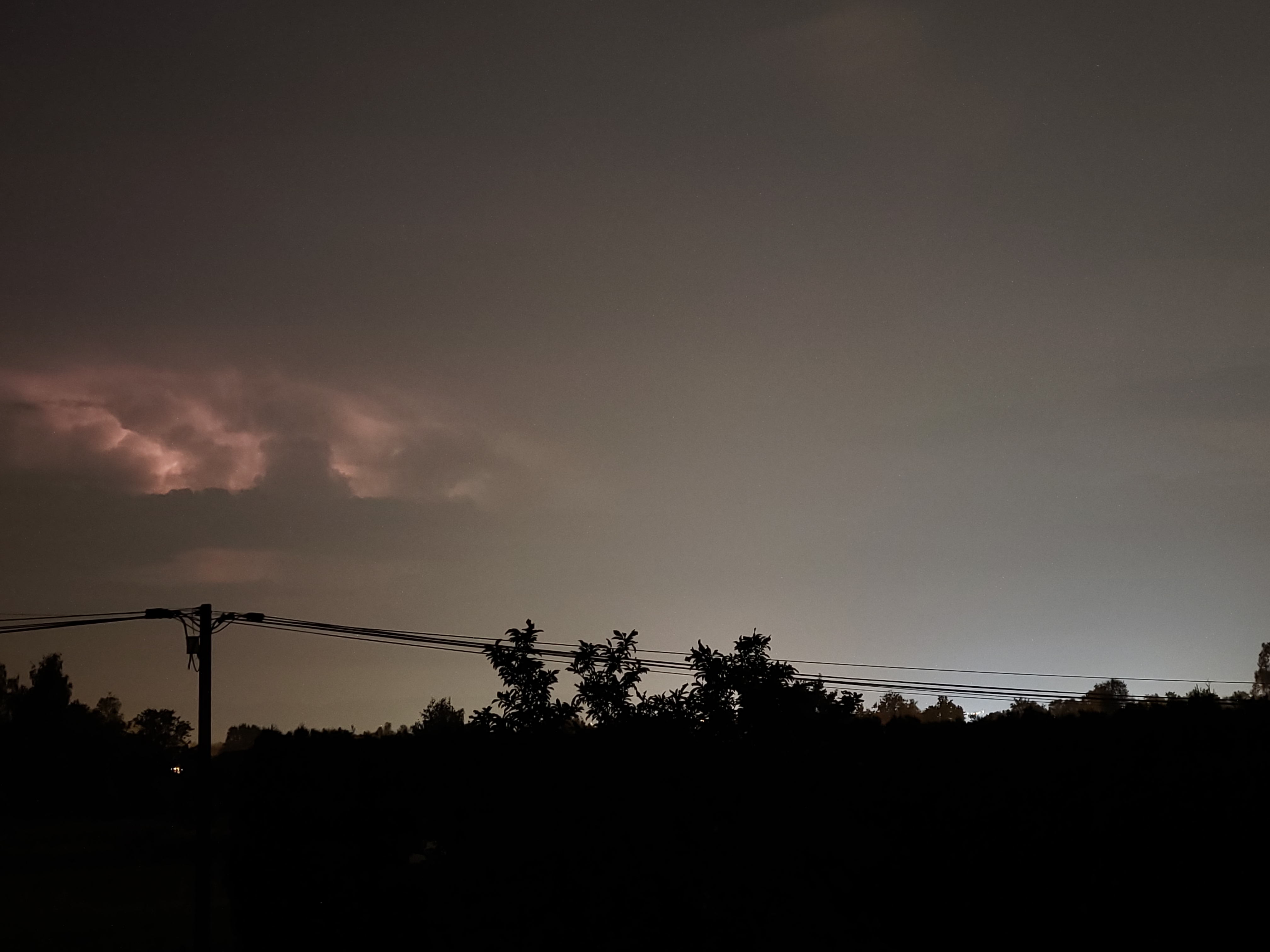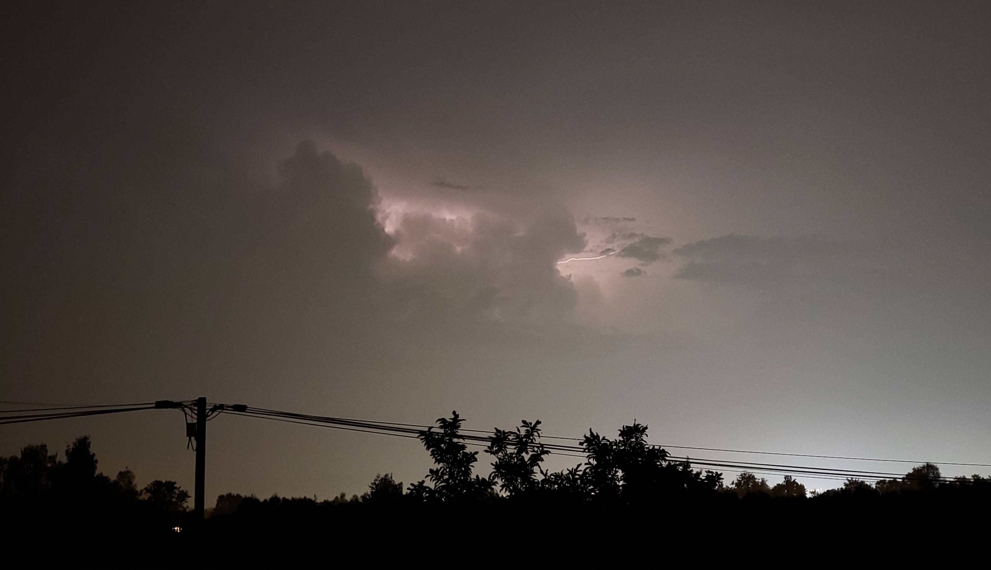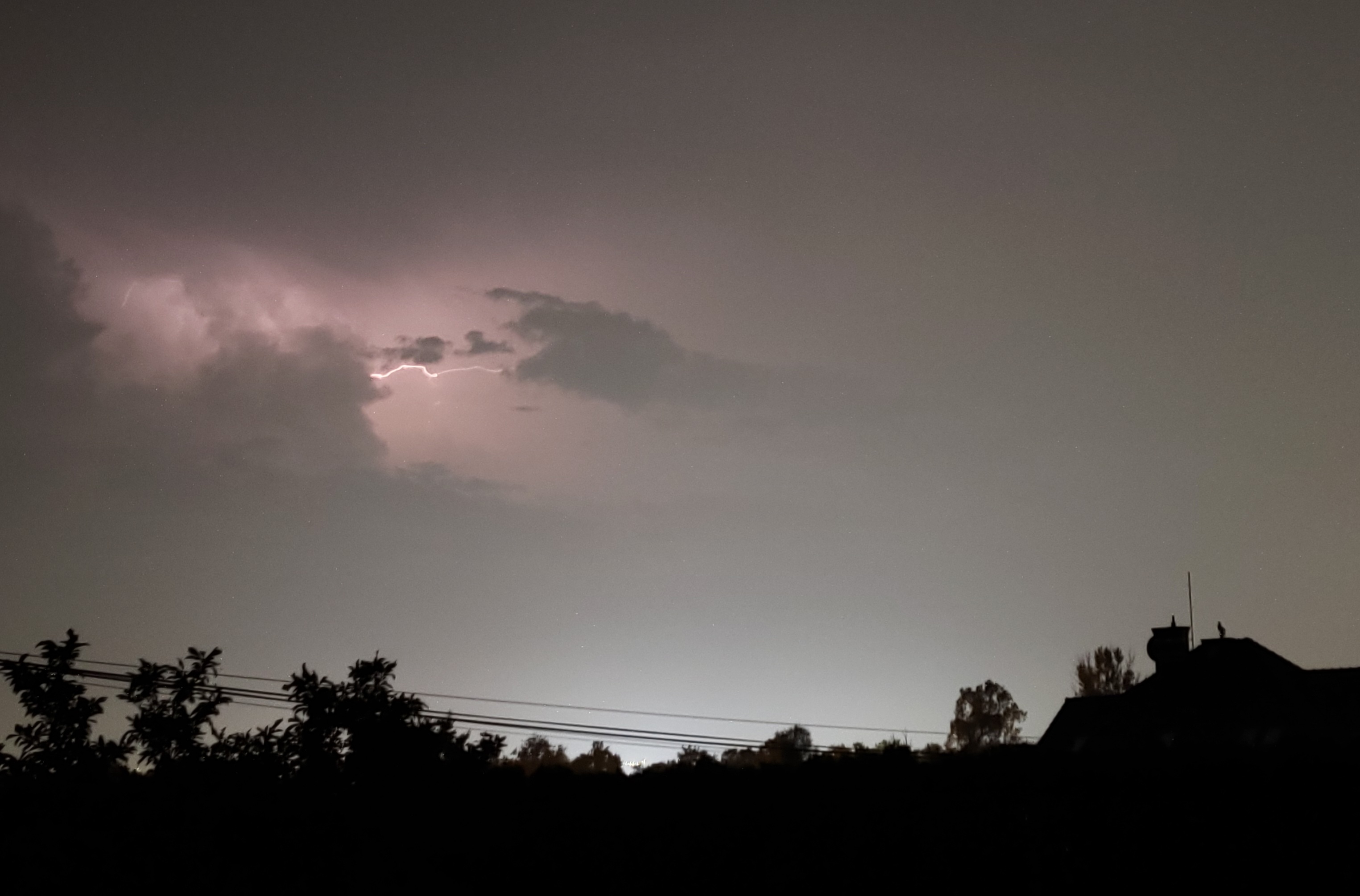 Mimo to, wyładowania były doskonale widoczne także z mojej lokalizacji. W większości połyskiwały błyskawice międzychmurowe, ale znalazło się także kilka piorunów, widocznych na niektórych zdjęciach. Jeden z nich (nie ma na zdjęciu, zmieniałem wtedy ustawienia) trafiły wyjątkowo blisko, czym stanowczo wyróżnił się spośród wszystkich dziś zaobserwowanych. Generalnie jednak była to burza spokojna i bardzo cicha. Najwięcej w niej było słychać... pasikoników