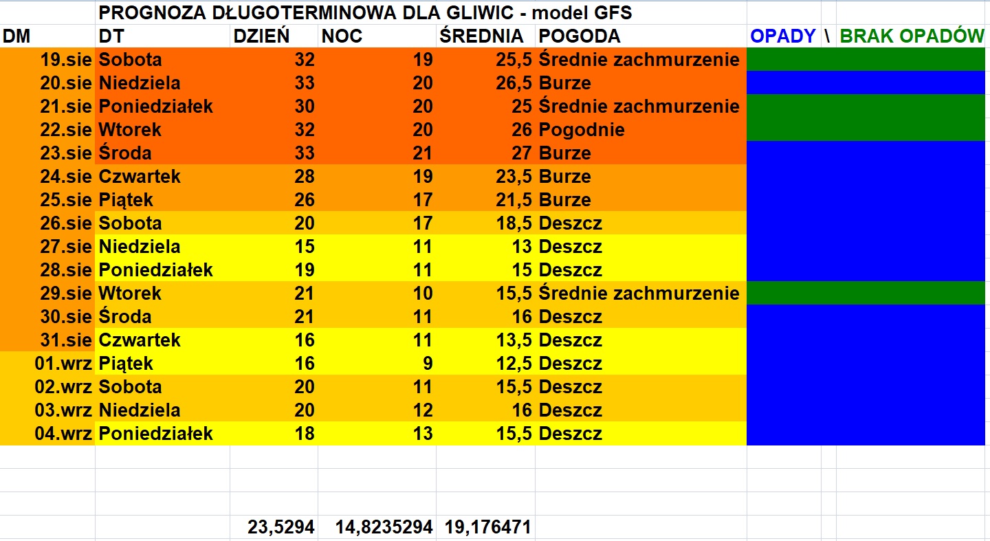 Prognoza długoterminowa dla Górnego Śląska (18.08.2023)