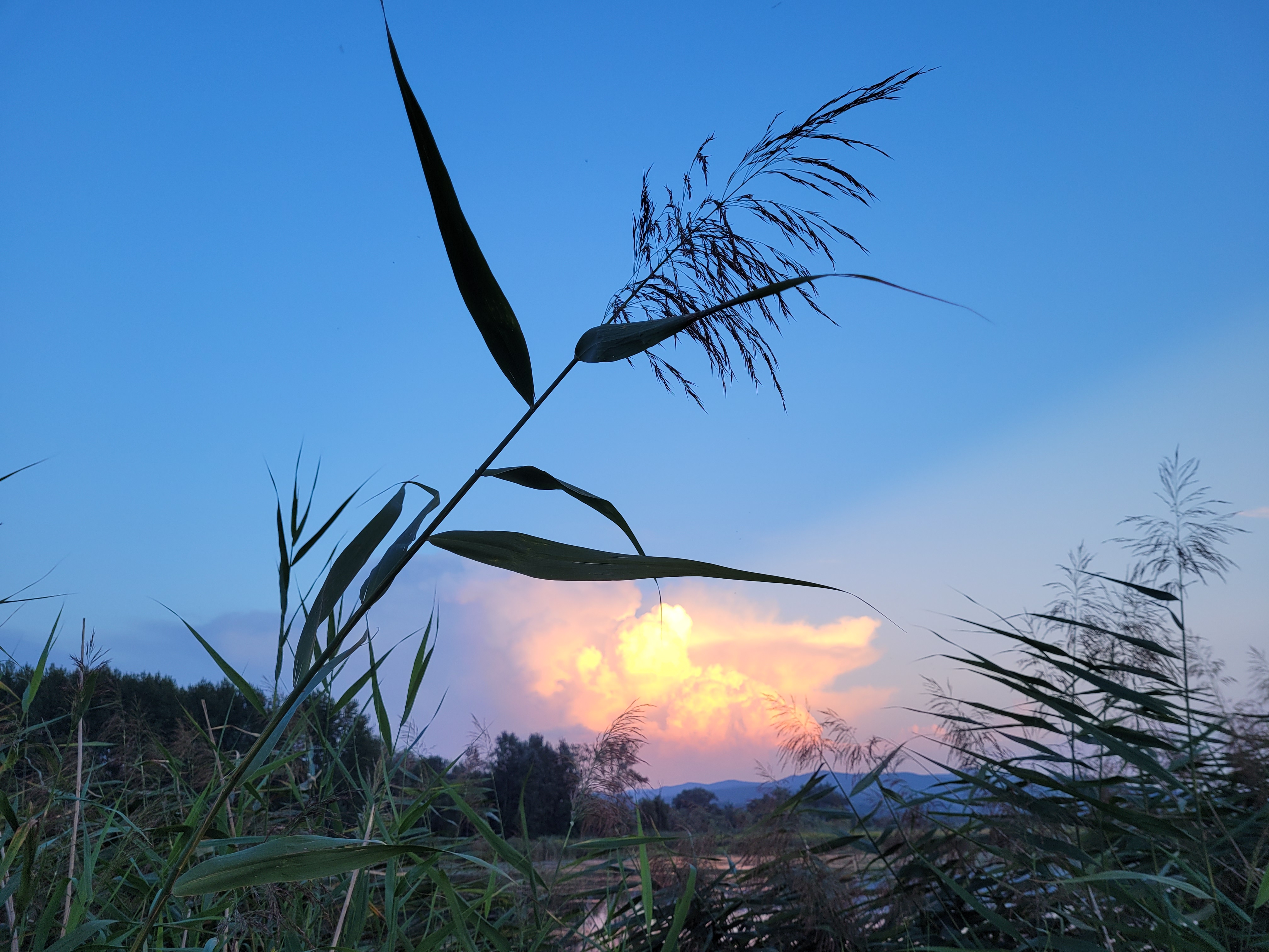 Z Krakowem burze obeszły się tamtej nocy dosyć oszczędnie - w największym stopniu oberwał Tarnów i obszar na linii Mielec-Rzeszów-Przemyśl. Burza objęła swoim zasięgiem prawie całe województwo podkarpackie (tylko powiat lubaczowski jej nie miał). Do mnie doszła burza, która przechodziła na południe od Krakowa, od strony Bielska-Białej (choć to nie to samo zjawisko, które narobiło tam szkód), ale dopiero o 2 w nocy. Późno, ale symptomy dynamicznej nocy pojawiły się już wieczorem. To widok na zachód wieczorem 22 sierpnia, kiedy Słońce chowało się za kowadłem. Piękny to był widok - po jednej stronie cumulonimbus przestawiony powyżej, a po drugiej widok na daleką burzę.
